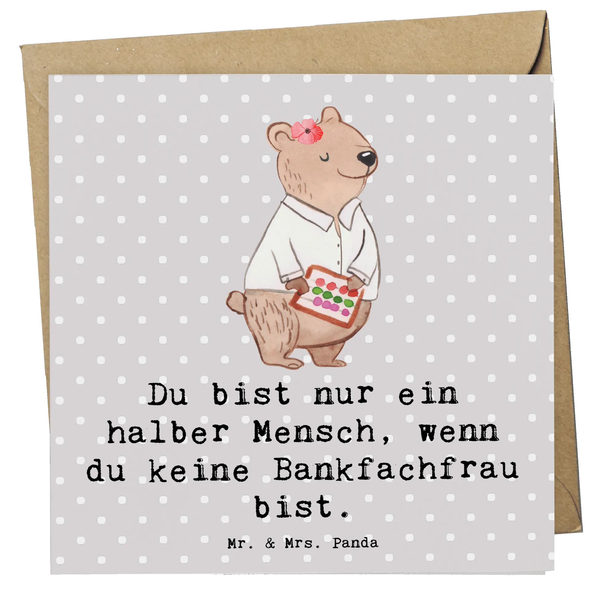 Die Deluxe Karte mit dem liebevollen Motiv "Bankfachfrau mit Herz" von Mr. & Mrs. Panda ist das ideale Geschenk für alle, die den Beruf der Bankfachfrau schätzen. Diese exquisite Grußkarte, hergestellt aus hochwertigem 300 Gramm Karton, kombiniert edles Design mit einem herzlichen Spruch: "Du bist nur ein halber Mensch, wenn du keine Bankfachfrau bist." Und genau das macht sie besonders!