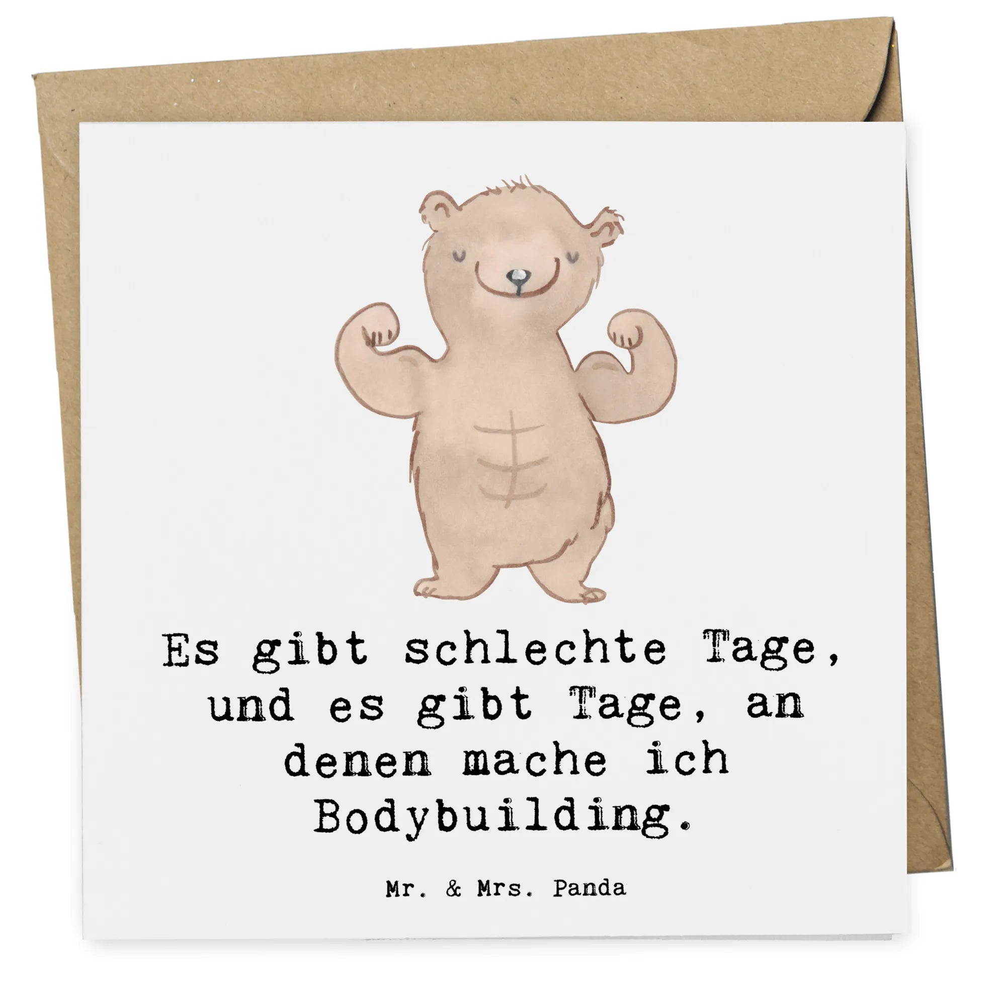 Die Deluxe Karte mit dem süßen Motiv "Bär Bodybuilding Tage" von Mr. & Mrs. Panda ist das perfekte Geschenk für Sportbegeisterte aller Art. Sie zeigt stolz einen muskulösen Bären, der mit einem motivierenden Spruch zum Schmunzeln anregt: "Es gibt schlechte Tage, und es gibt Tage, an denen mache ich Bodybuilding."