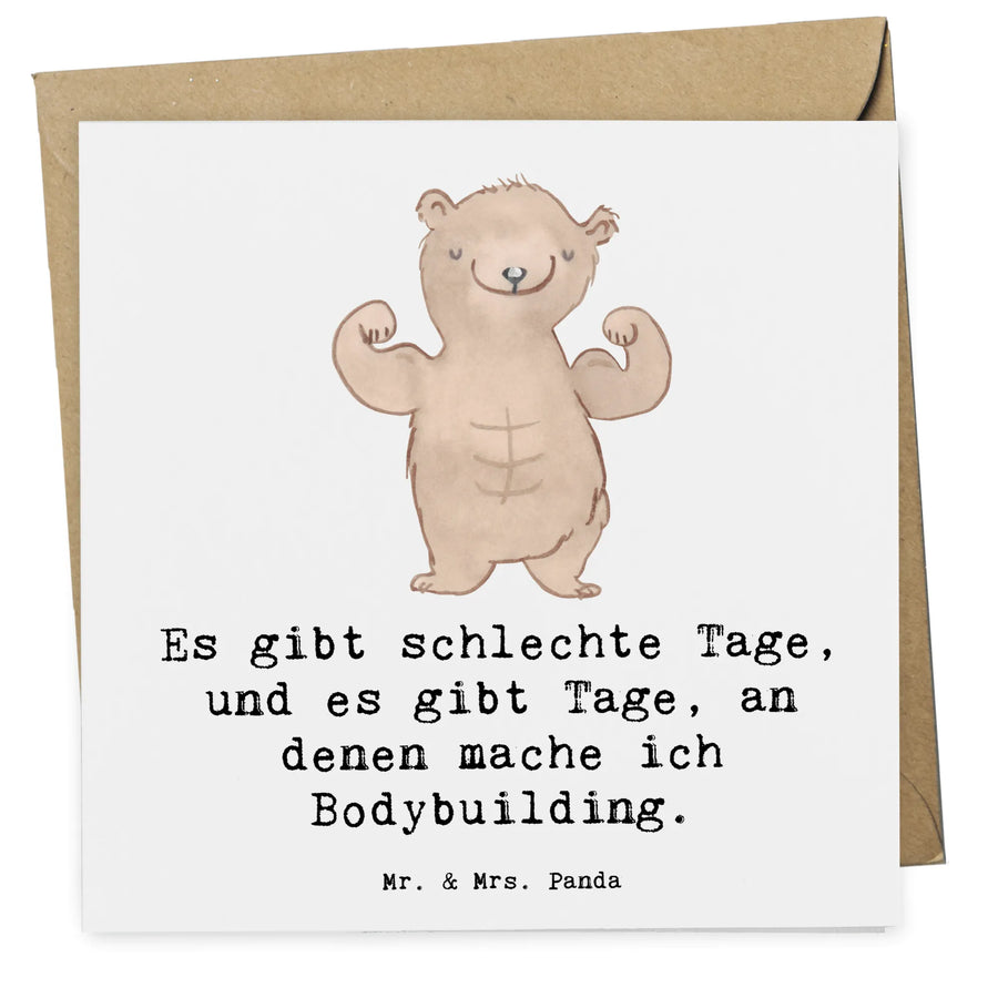 Auf der Vorderseite der Karte prangt ein süßer Bär, der stolz seine Muskeln zeigt, begleitet von dem motivierenden Spruch: "Es gibt schlechte Tage, und es gibt Tage, an denen mache ich Bodybuilding." Diese Worte sind perfekt geeignet, um Freunden, Familienmitgliedern oder Kollegen zu zeigen, dass du an sie denkst und ihre Leidenschaft für Fitness und Sport schätzt.