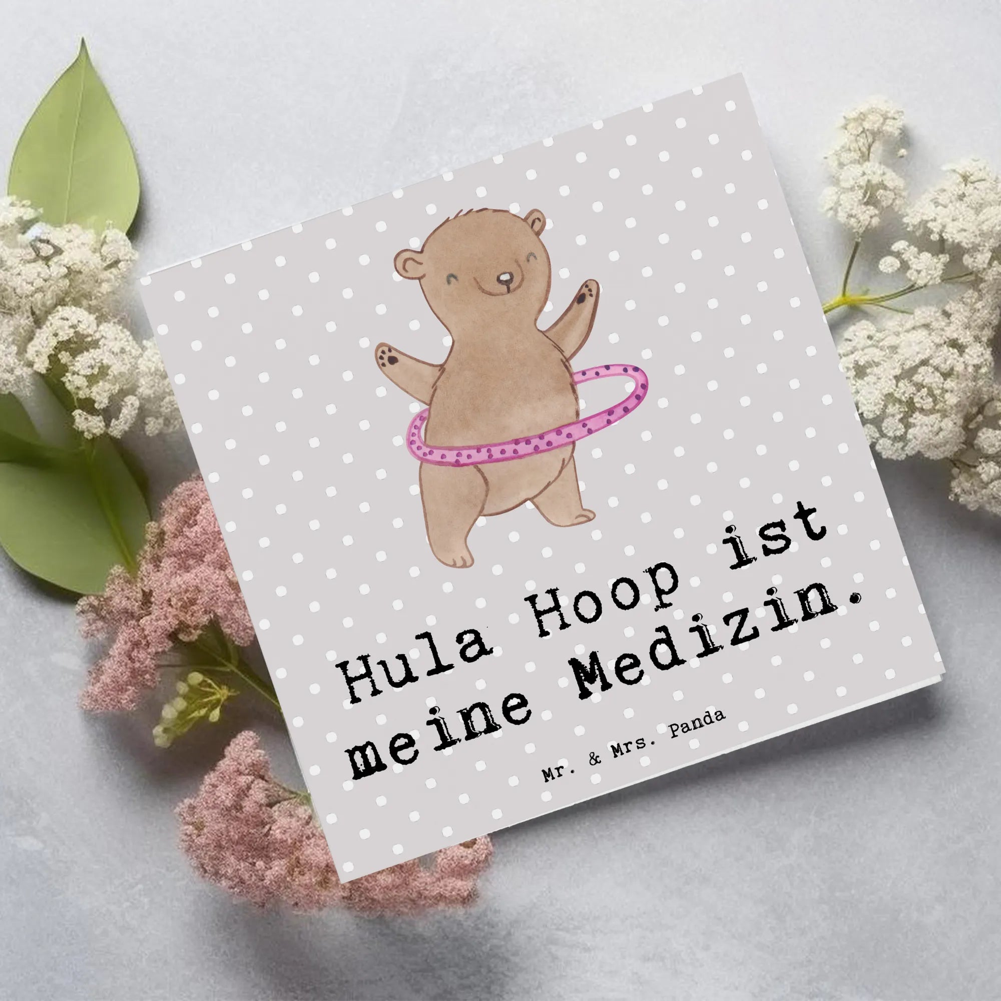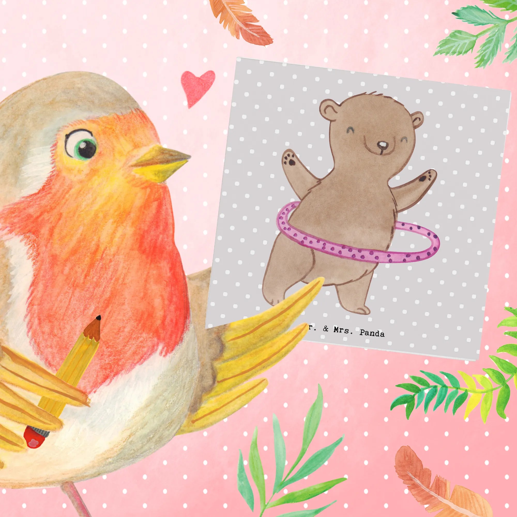 Die Karte gehört zur Kollektion "Hobby & Sport" von Mr. & Mrs. Panda, die über 200 handgemalte Motive umfasst. Ideal ist diese Karte für Sportler, Fitnessfreunde oder alle, die den Hula Hoop für sich entdeckt haben und ihn leidenschaftlich nutzen.