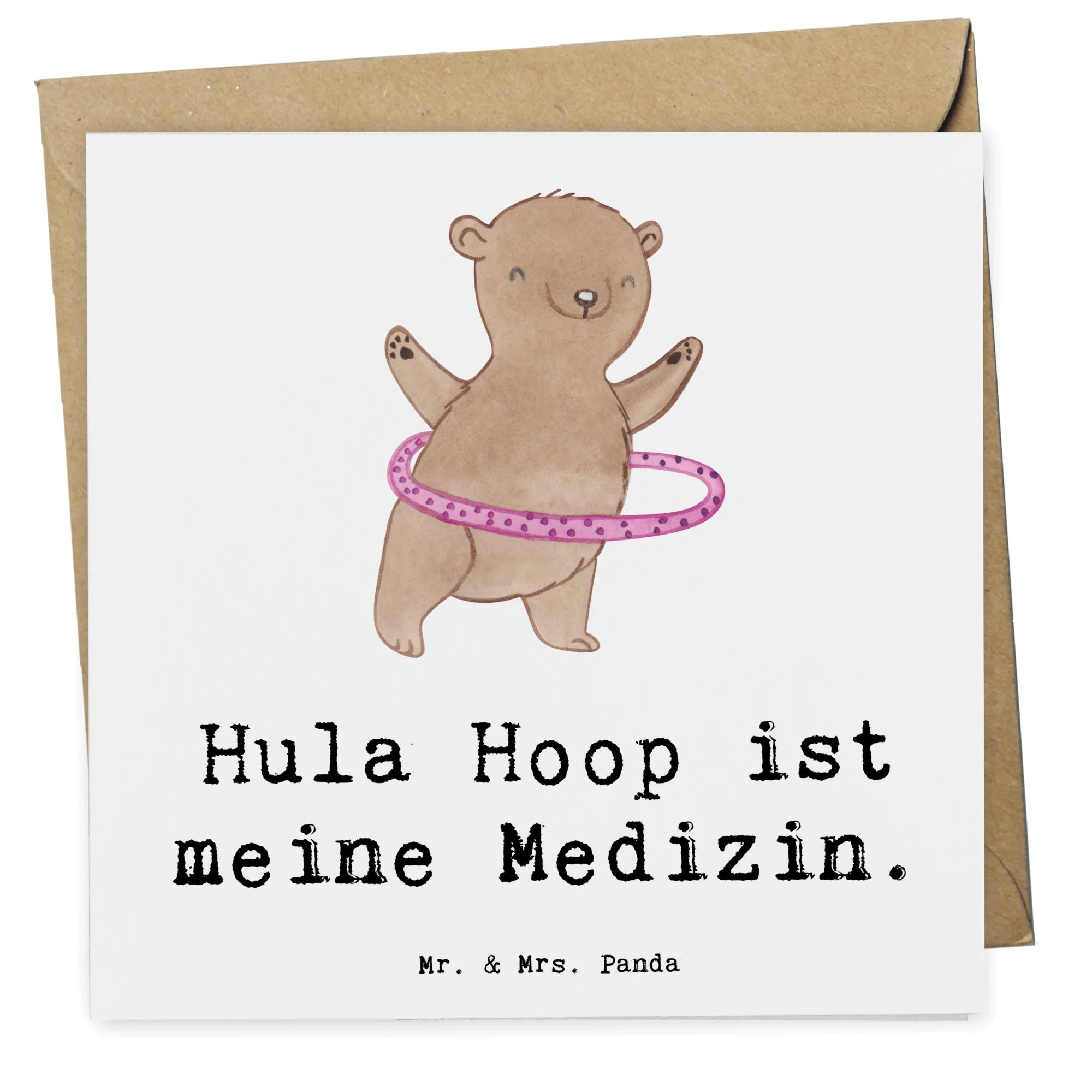 Diese hochwertige Klappkarte aus der Hobby & Sport Kollektion von Mr. & Mrs. Panda zeigt einen fröhlichen Bären, der schwungvoll den Hula Hoop tanzt, ergänzt durch den liebevollen Spruch „Hula Hoop ist meine Medizin.“ Ein Motiv, das sofort gute Laune macht und besonders gut zu Fitnessbegeisterten, Hobby-Sportlern und Trainingsgruppen passt.
