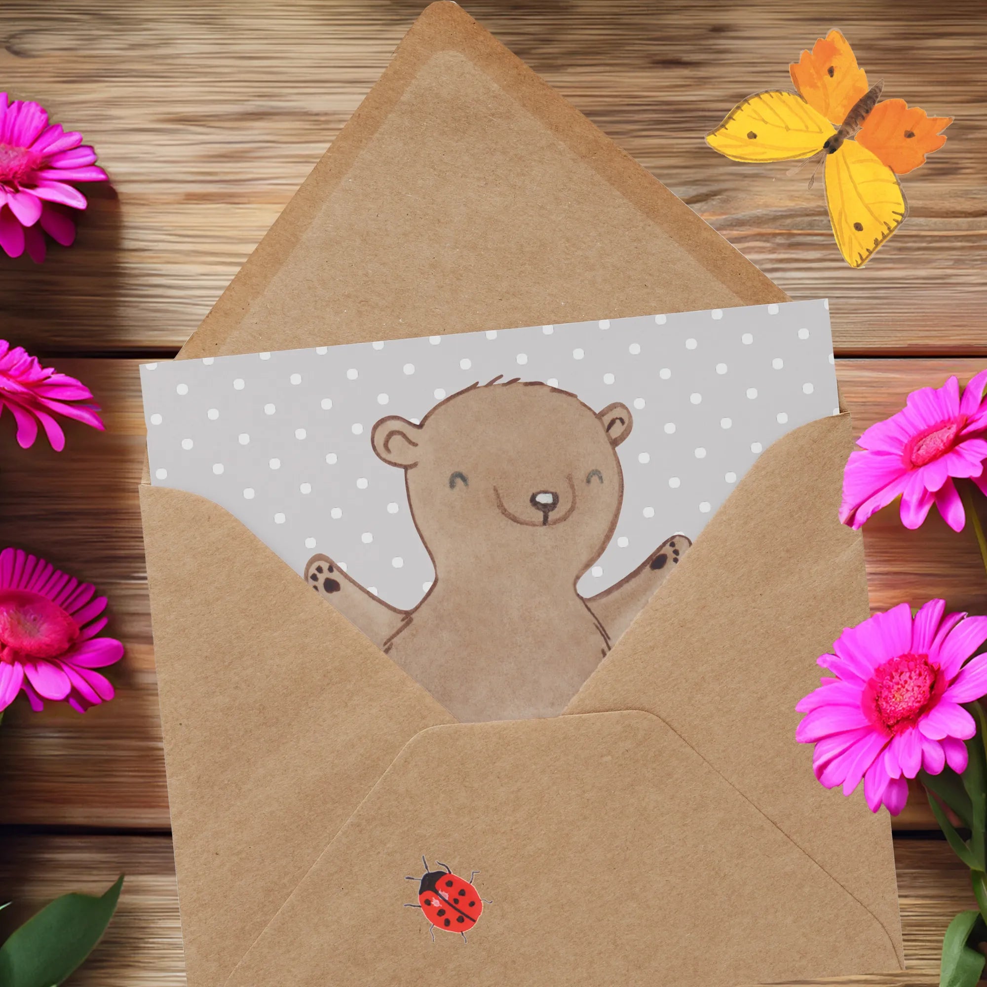 Diese hochwertige Klappkarte aus 300 Gramm starkem Karton überzeugt durch ihre edel matten Innenseiten, die perfekt beschriftet werden können. Die glänzende Vorderseite sorgt dafür, dass die liebevoll gestalteten Illustrationen der Bären direkt ins Auge fallen.