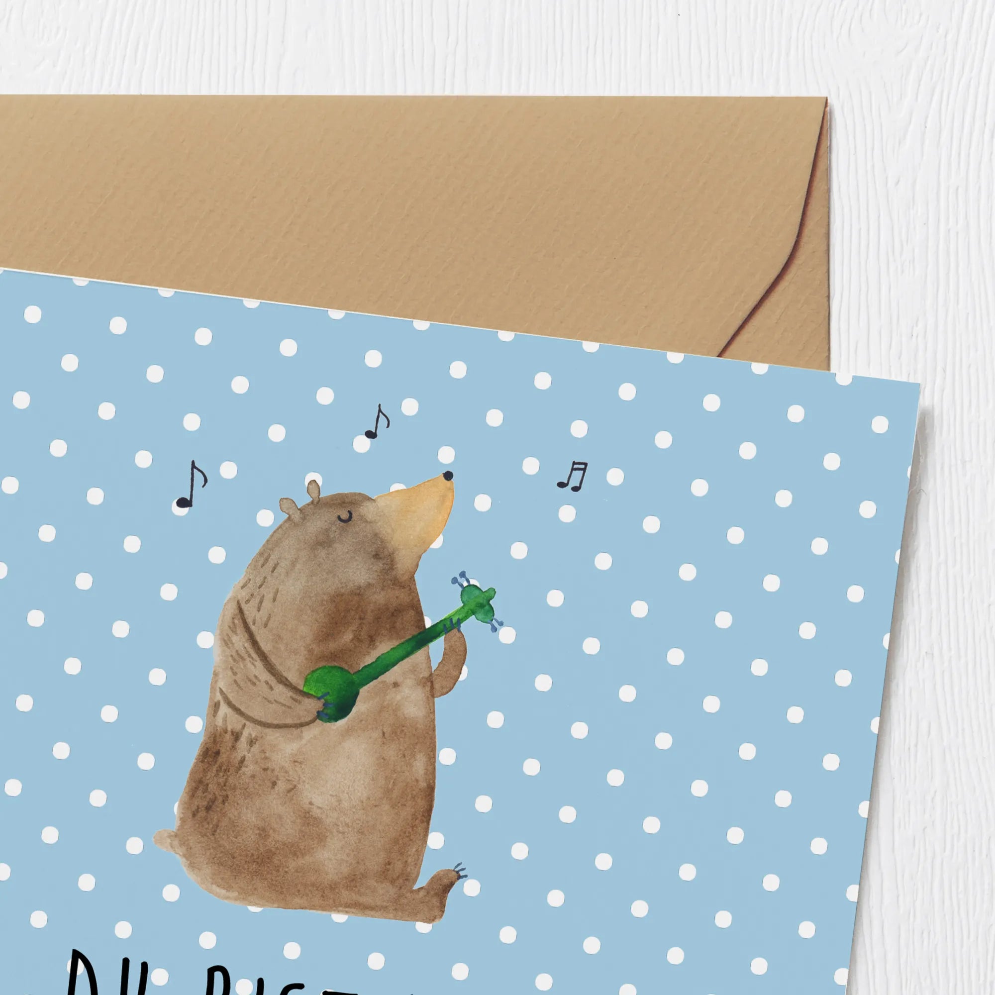 Deluxe Karte Bär Lied - mit Spruch - Blau Pastell