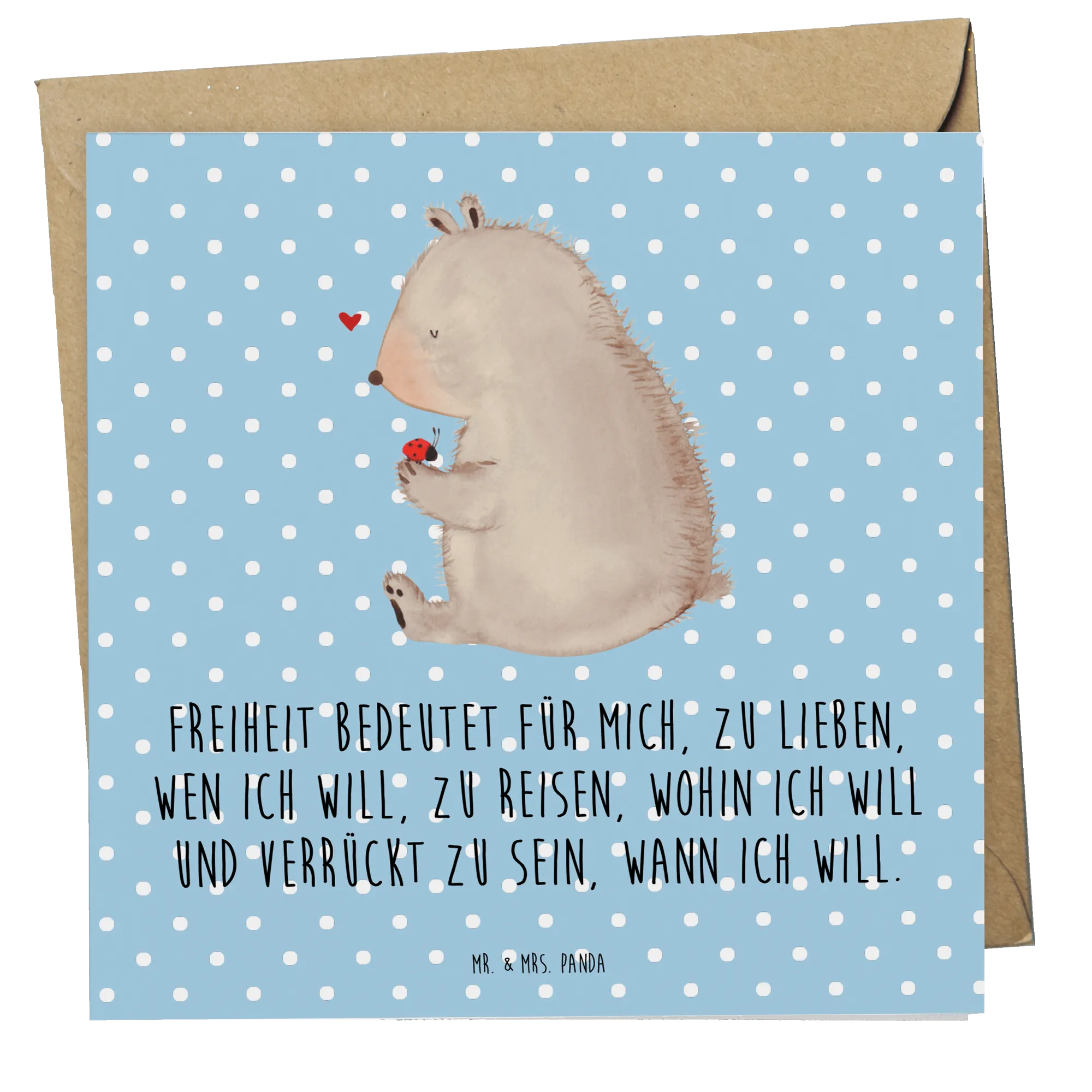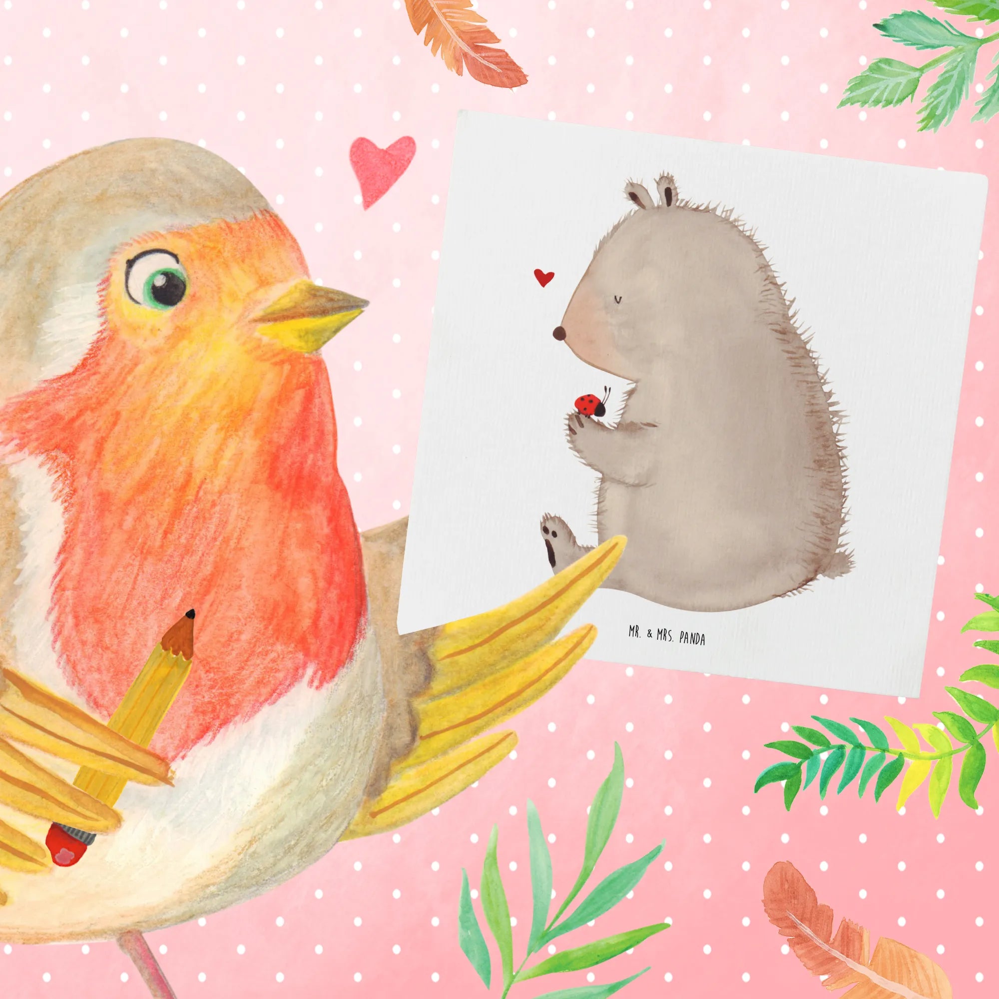 Bärchen-Liebe und süße Abenteuer – die Deluxe Karte Bär mit Marienkäfer von Mr. & Mrs. Panda ist nicht nur eine Grußkarte, sondern ein kleines Kunstwerk voller Lebensfreude! Diese wunderschöne quadratische Karte misst 140 mm x 140 mm und besteht aus hochwertigem 300 Gramm Karton. Wenn du jemandem eine Freude machen möchtest, dann ist diese Karte die perfekte Wahl.