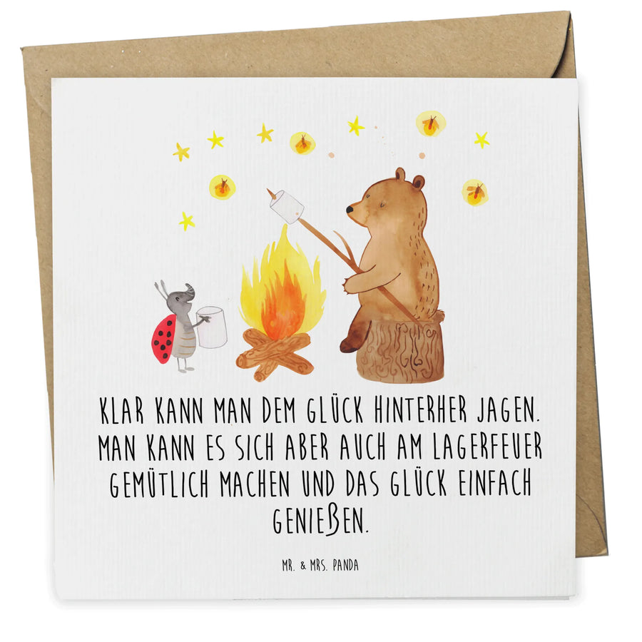 Deluxe Karte Bär & Marienkäfer Lagerfeuer - mit Spruch - Weiß