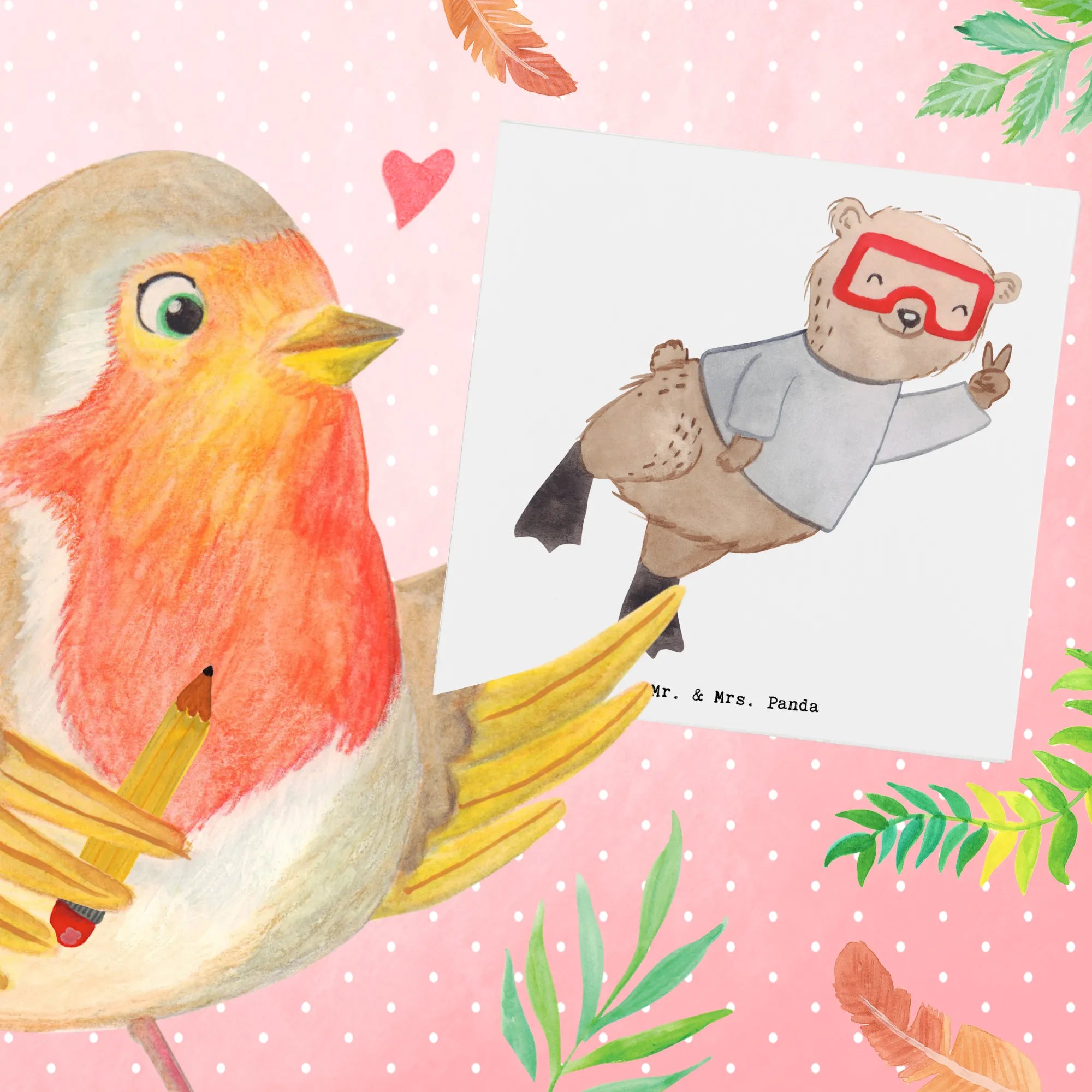 Die Kollektion "Hobby & Sport" von Mr. & Mrs. Panda bietet mehr als 200 handgemalte Motive, und das "Bär Tauchen Tage" Design ist ein Highlight für alle Sportbegeisterten und Hobby-Fans. Egal, ob du einem Taucher, Schnorchler oder einfach einem begeisterten Hobbysportler eine Freude machen möchtest – diese Karte ist eine ideale Wahl! Mit einem charmanten Motiv und einem lustigen Spruch wird sie nie in Vergessenheit geraten. Schenke Freude und zeige deine Wertschätzung auf eine besondere Art und Weise mit dieser einzigartigen Karte!