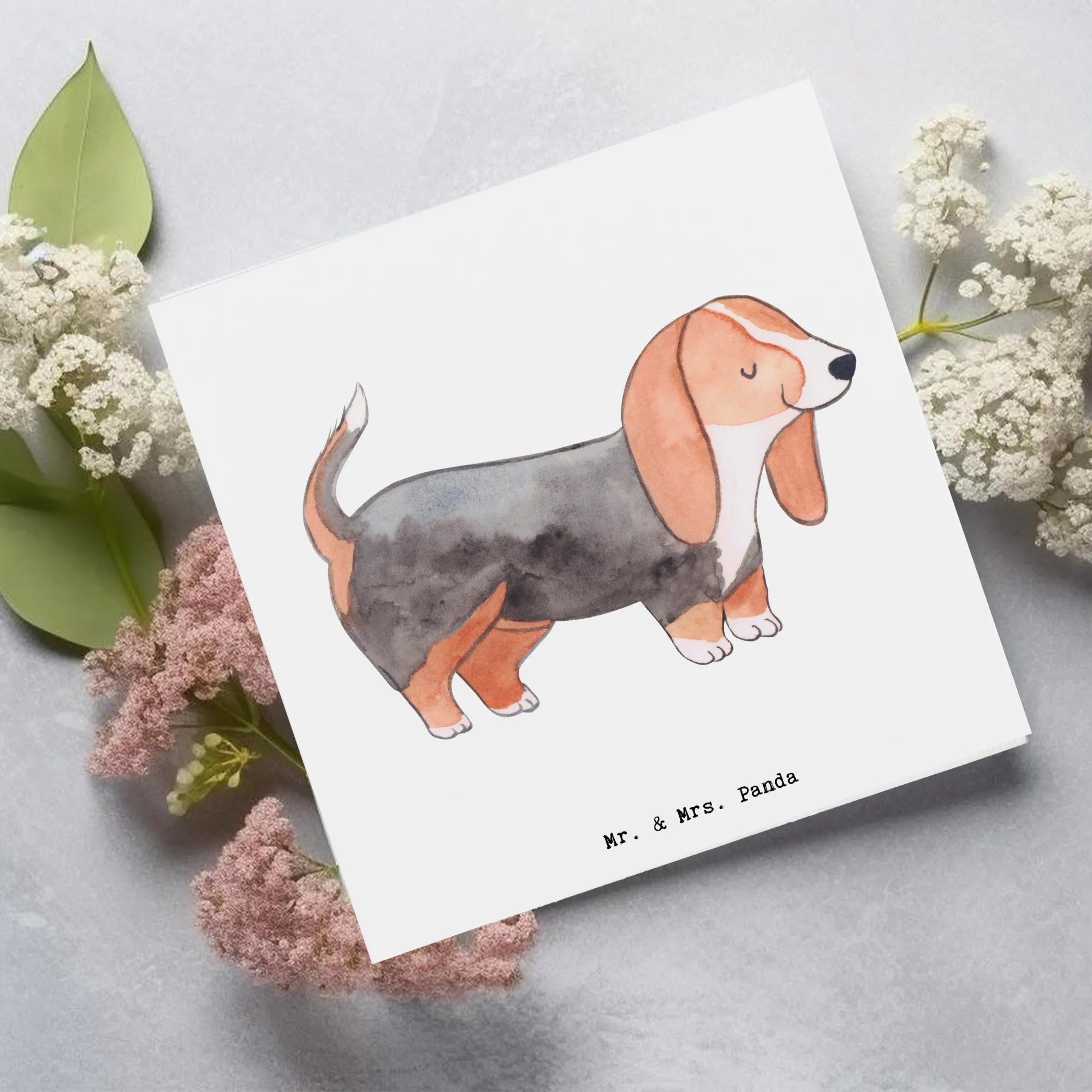 Verwöhne Deine Freunde oder Familie mit dieser wunderschönen Deluxe Karte und zeige ihnen, wie viel sie Dir bedeuten. Die Kombination aus einer liebevollen Illustration und einem einfühlsamen Spruch schafft eine wunderbare Verbindung und bleibt lange in Erinnerung. Mach diesen speziellen Moment unvergesslich mit der Basset Hound Glückwunschkarte von Mr. & Mrs. Panda und teile die Liebe zu diesen wunderbaren Tieren auf ganz besondere Weise.
