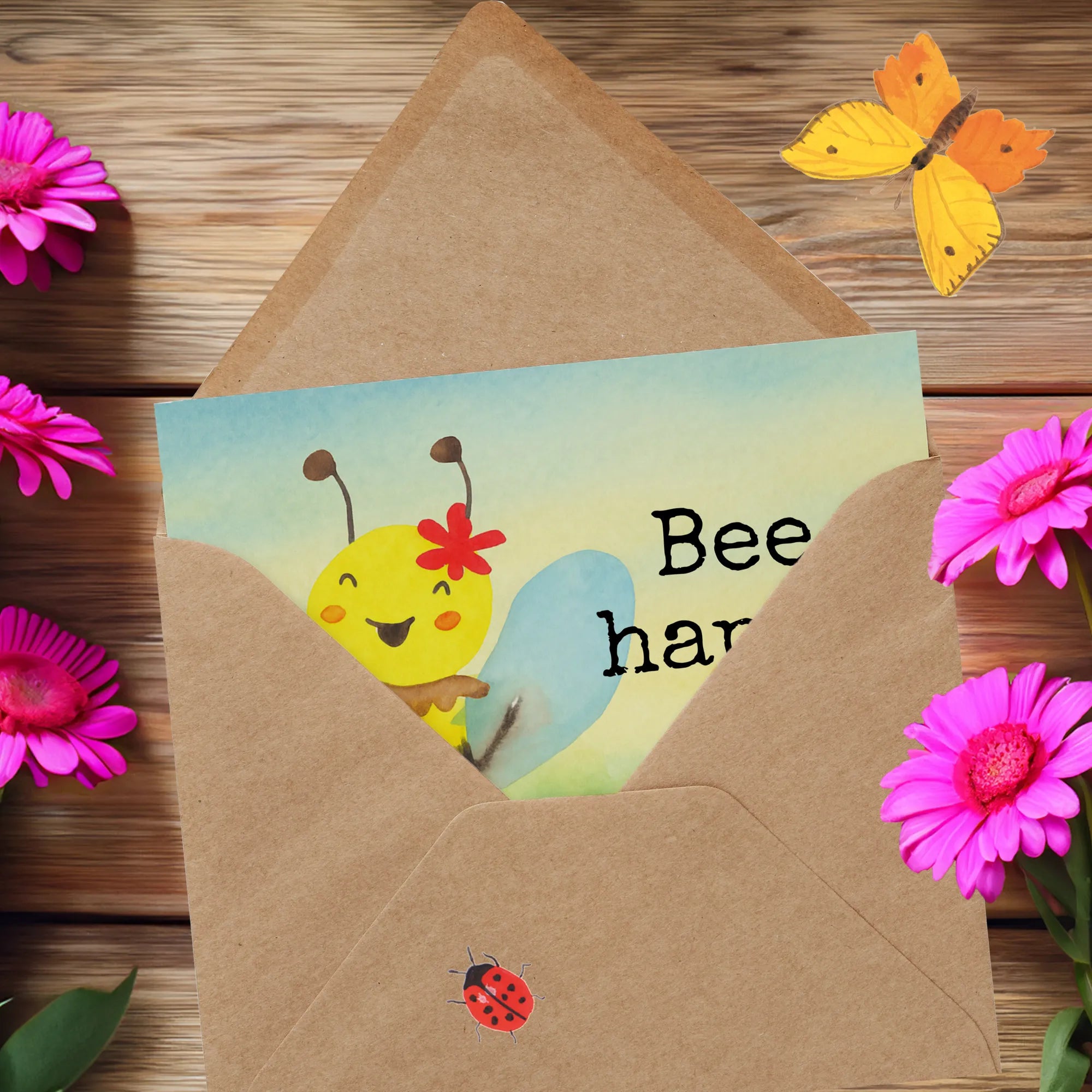 Biene Happy ist nicht nur irgendeine Biene, sondern ein Symbol für Lebensfreude. Mit einem fröhlichen Summen erkundet sie die Welt, während sie stolz eine bunte Blume auf ihrem Kopf trägt. Ihr Motto "Bee happy" inspiriert uns, das Leben leicht zu nehmen und in jedem Augenblick das Positive zu sehen. Wenn wir ihren fröhlichen Geist annehmen, wird der Alltag zu einem Abenteuer voller schöner Entdeckungen und unvergesslicher Momente. Lass die Energie von Biene Happy in dein Leben strömen und finde deinen eigenen Grund zu lächeln.