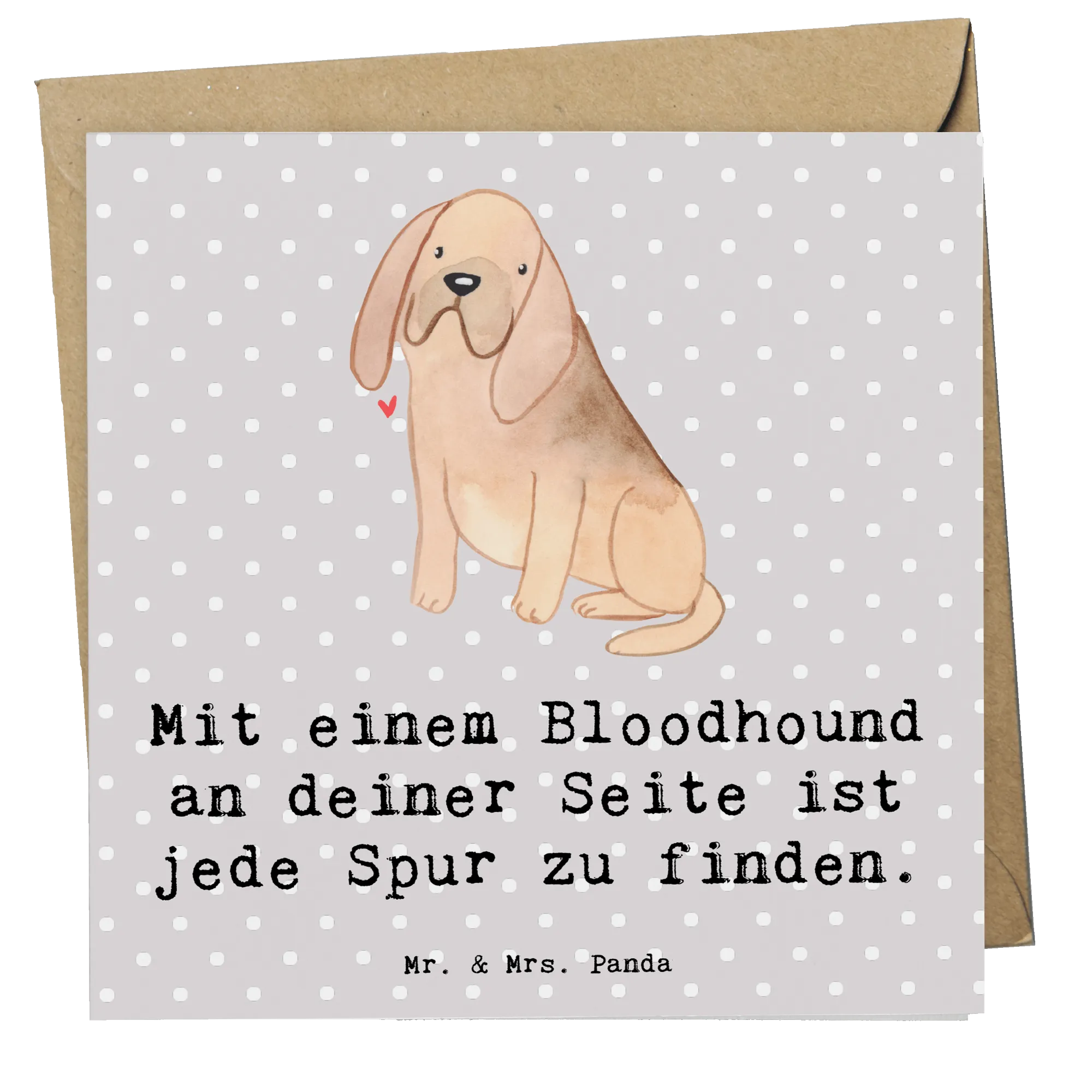 Egal, ob zum Geburtstag, zur Hochzeit oder einfach nur, um einem lieben Menschen eine Freude zu machen – mit dieser Karte bist du auf der sicheren Seite! Der Spruch 'Mit einem Bloodhound an deiner Seite ist jede Spur zu finden.' sorgt für ein Schmunzeln und macht die Karte zu einem idealen Gruß für alle, die die Hunderasse Bloodhound lieben. Die Innenseite der Karte ist blanko, sodass du ganz persönlich und individuell deine Grüße und Glückwünsche ausdrücken kannst.
