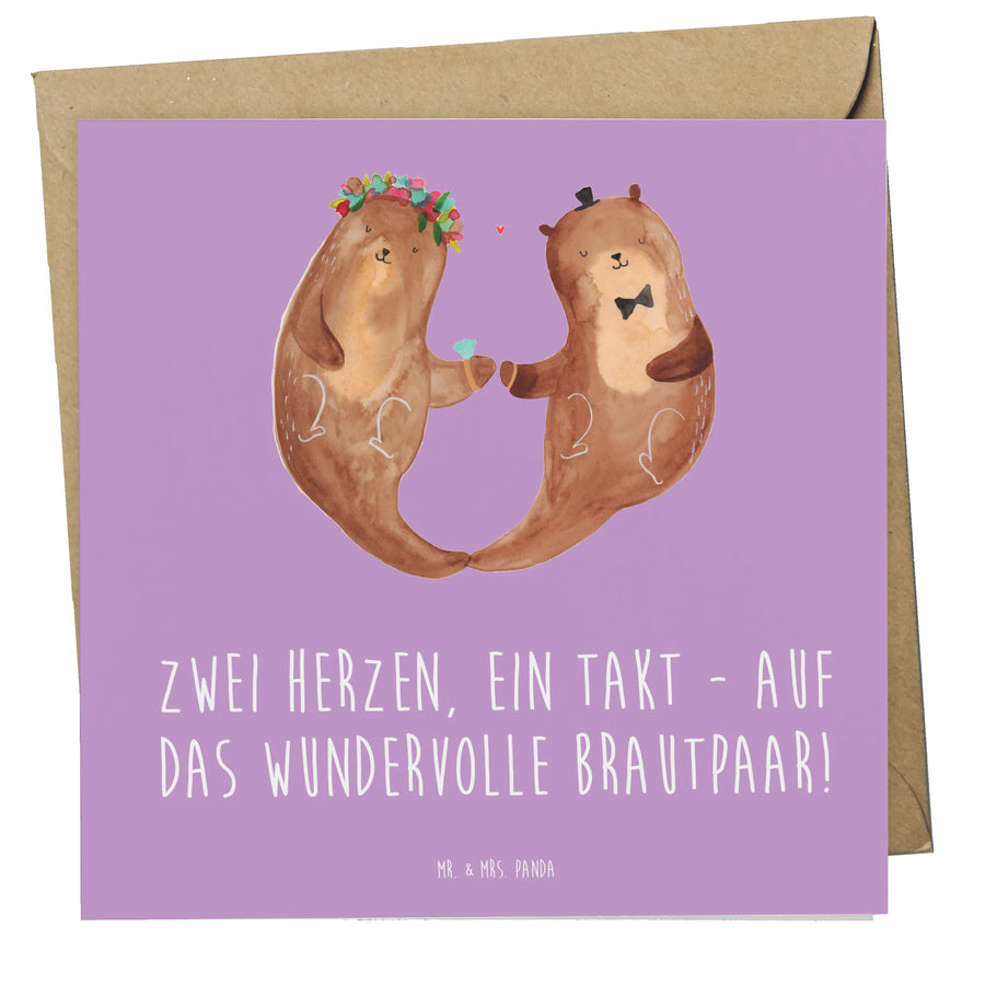 Unsere quadratische Hochzeitskarte aus der Hochzeit-Kollektion von Mr. & Mrs. Panda verbindet Romantik mit liebevollem Design. Vor dem zarten Lavendeltraum-Hintergrund strahlen unsere beiden Pandas im Hochzeits-Look – begleitet vom Spruch „Zwei Herzen, ein Takt - auf das wundervolle Brautpaar!“. Ein Motiv, das Freude, Zartheit und Stil ausstrahlt.