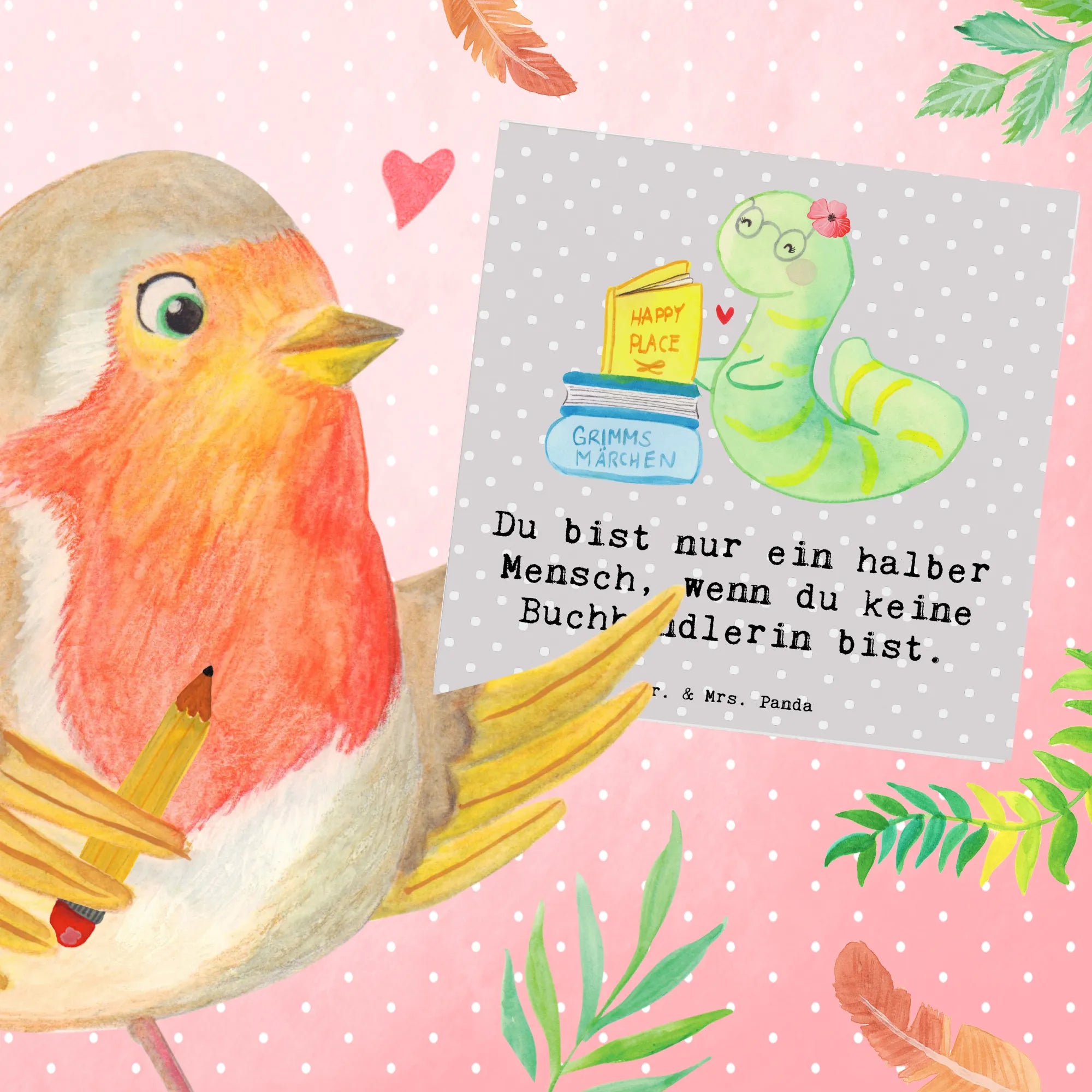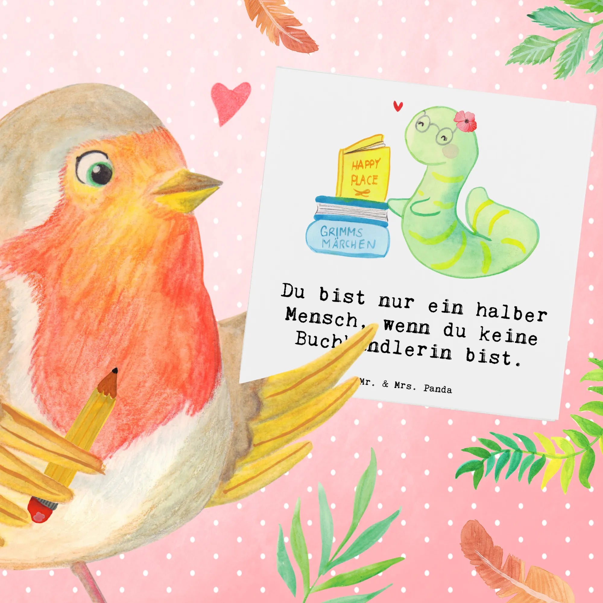Stell dir vor, wie deine Freundin, Kollegin oder Arbeitskollegin strahlt, wenn sie diese Karte öffnet und den süßen Buchhändler-Spruch "Du bist nur ein halber Mensch, wenn du keine Buchhändlerin bist" entdeckt. Dieses Motiv zaubert ein Lächeln ins Gesicht jeder Buchliebhaberin und ist eine Hommage an all die Buchwurm-Momente, die diese leidenschaftlichen Bücherfreunde so lieben. Verziert mit handgezeichneten Aquarellen von Mrs. Panda, strahlt die Karte Wärme und Kreativität aus – perfekt für alle, die ihren Beruf mit Herz und Leidenschaft ausüben.