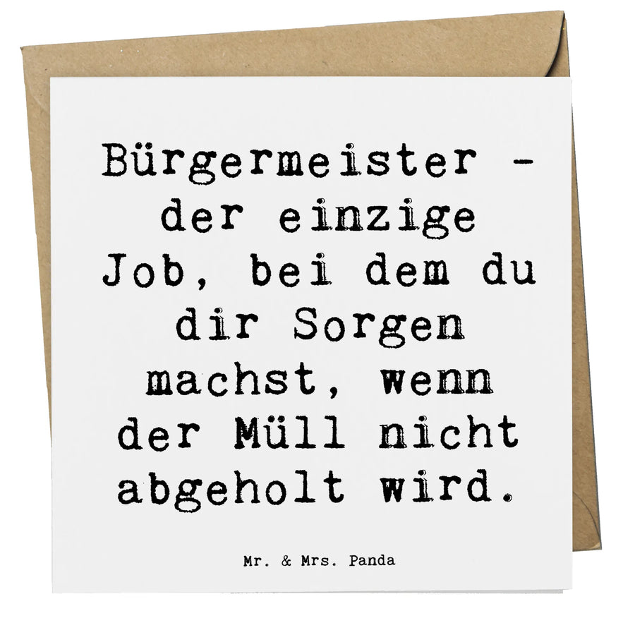 Die Deluxe Karte Bürgermeister von Mr. & Mrs. Panda ist die perfekte Wahl, wenn Du nach einem besonderen Geschenk suchst. Mit dem süßen und lustigen Spruch "Bürgermeister - der einzige Job, bei dem du dir Sorgen machst, wenn der Müll nicht abgeholt wird." bringt diese Karte definitiv ein Schmunzeln in den Alltag. Sie ist ideal für alle, die in der öffentlichen Verwaltung arbeiten oder einfach nur eine Wertschätzung für den Beruf des Bürgermeisters zeigen möchten.