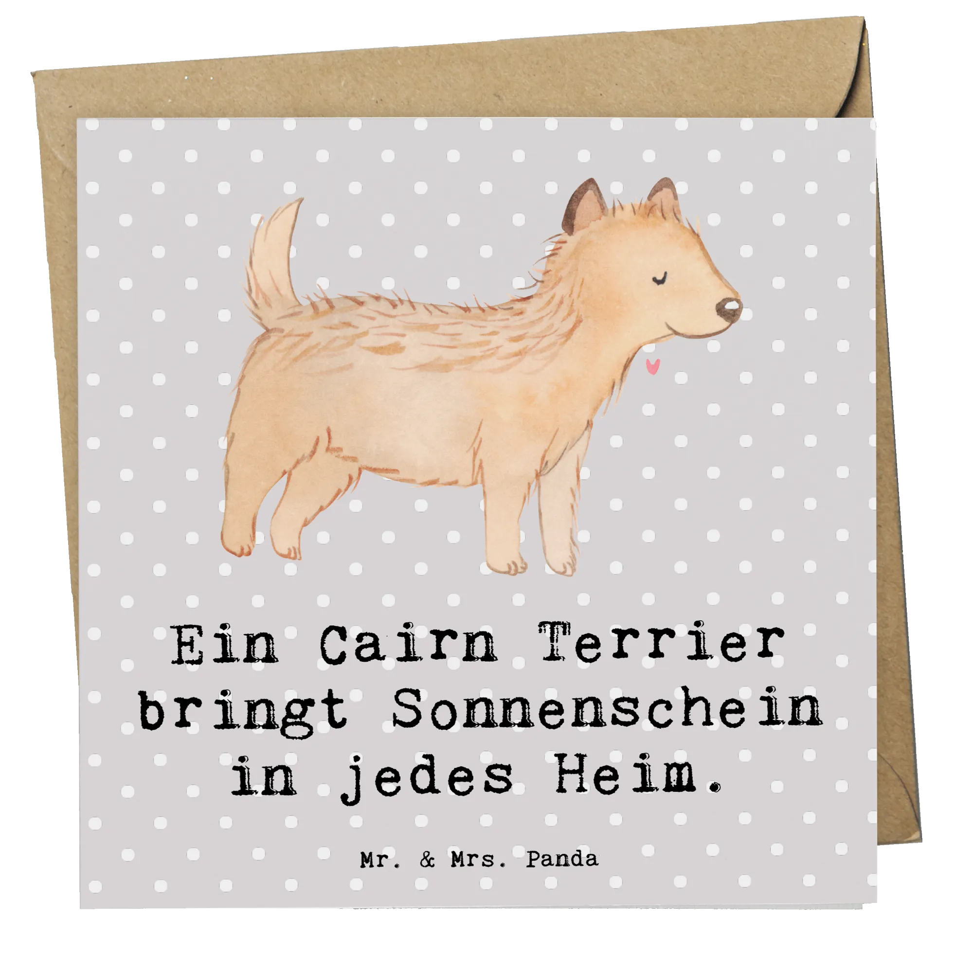 Die Vorderseite dieser Karte ist mit einem charmanten Motiv des Cairn Terriers bedruckt, begleitet von dem liebevollen Spruch: "Ein Cairn Terrier bringt Sonnenschein in jedes Heim." Diese Botschaft sorgt nicht nur für Freude beim Empfänger, sondern bringt auch ein Stückchen Sonnenschein in Deinen Alltag!
