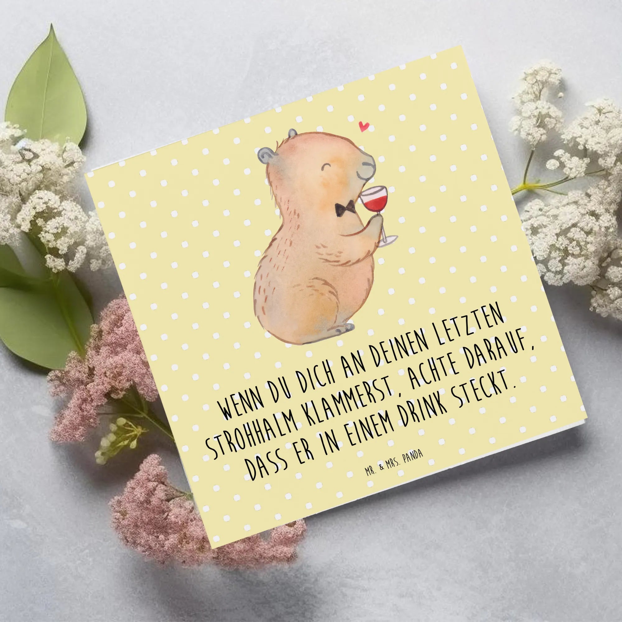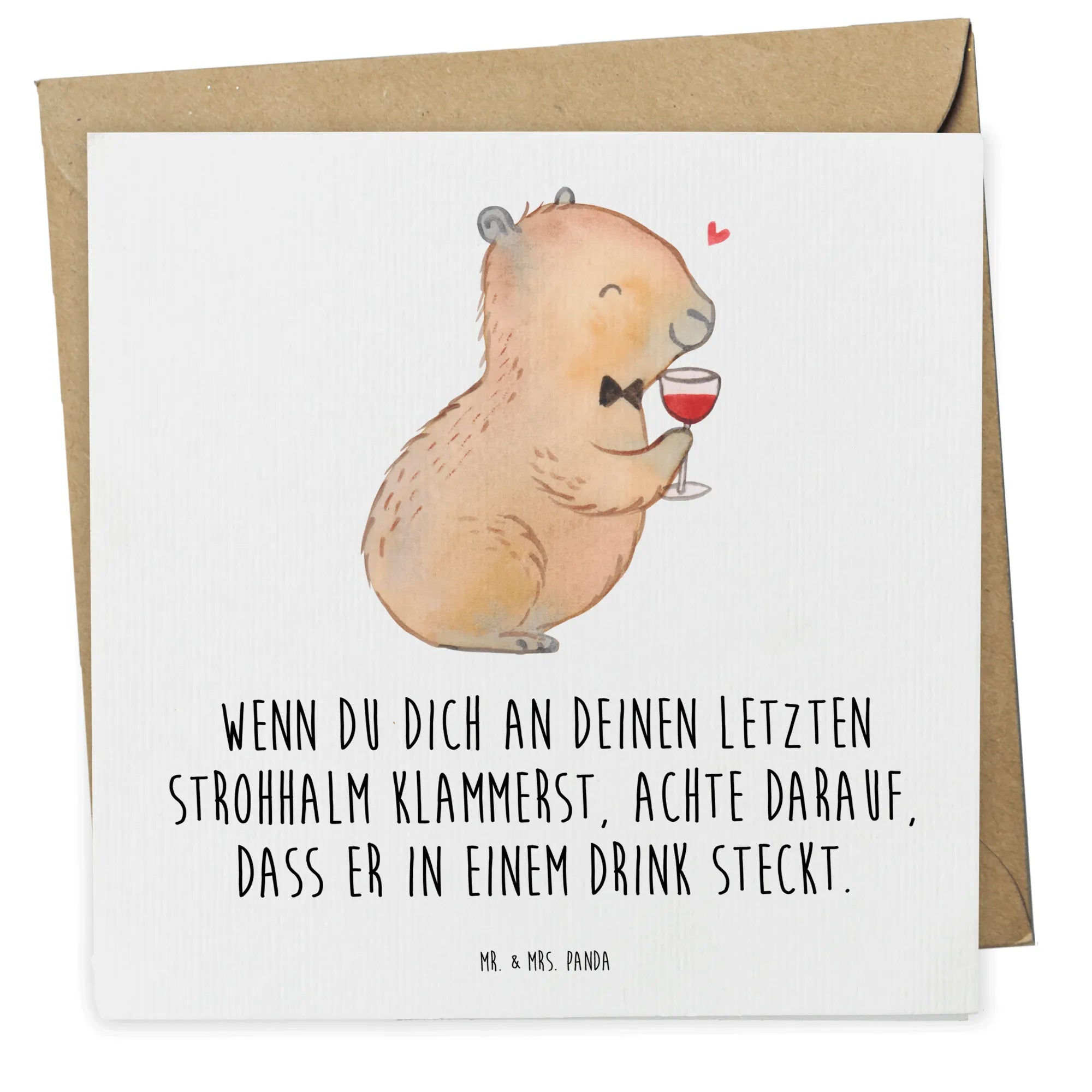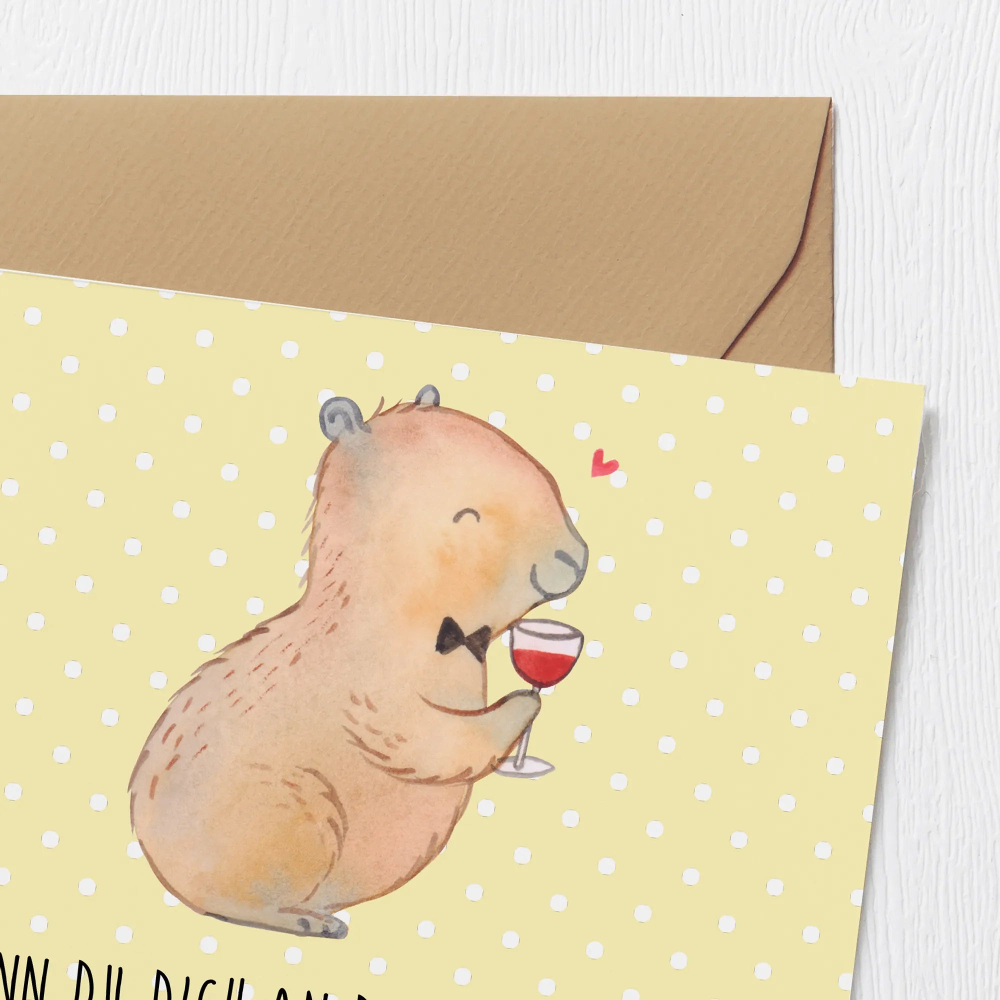Entdecke die Deluxe Karte mit dem bezaubernden Motiv des Wein trinkenden Capybara aus der einzigartigen Small World Kollektion von Mr. & Mrs. Panda.