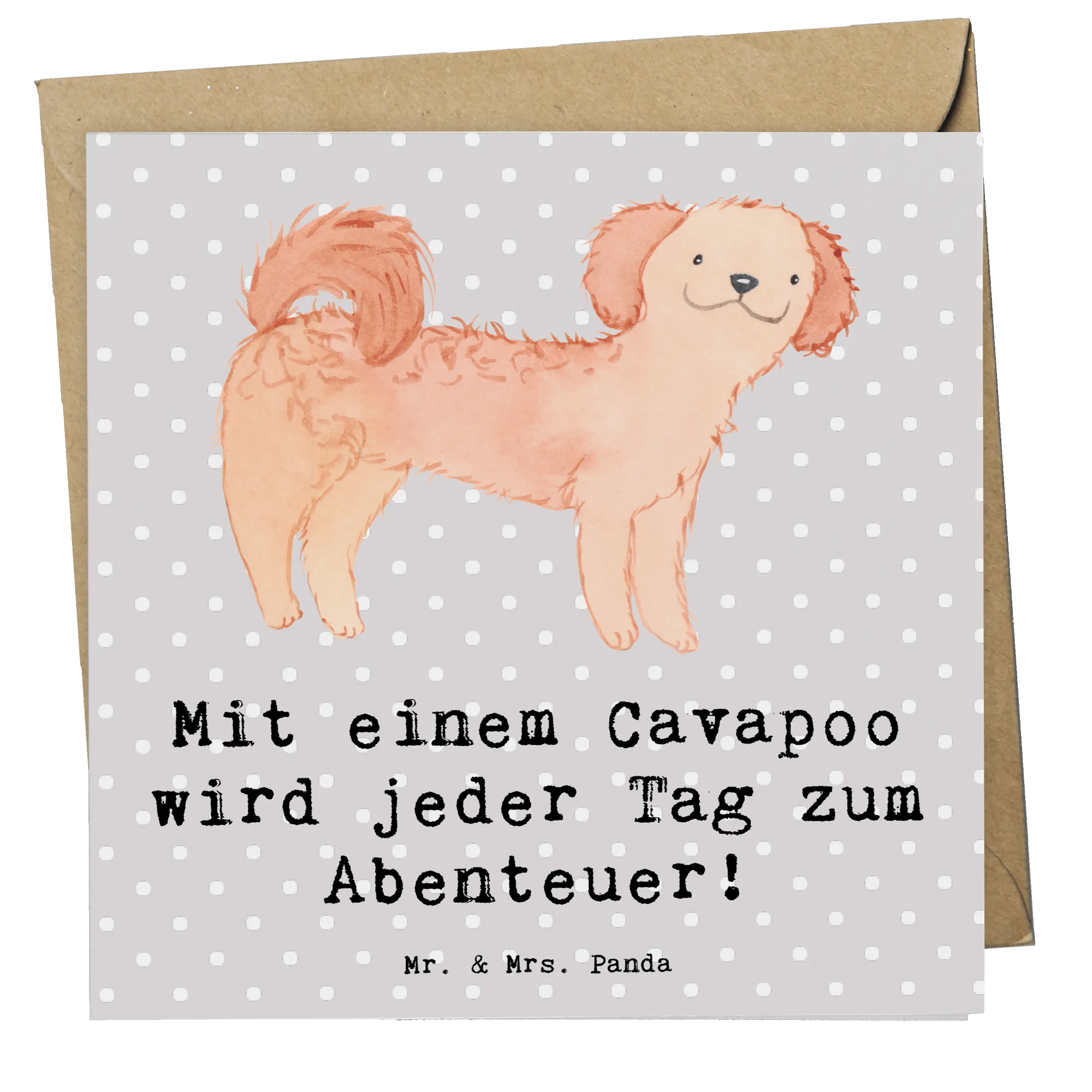Ob zur Hochzeit, zum Geburtstag oder einfach um jemandem eine Freude zu machen – diese Karte ist vielseitig einsetzbar. Der Spruch 'Mit einem Cavapoo wird jeder Tag zum Abenteuer!' auf der Vorderseite bringt jeden zum Schmunzeln und eignet sich hervorragend, um deine persönlichen Glückwünsche zu übermitteln.