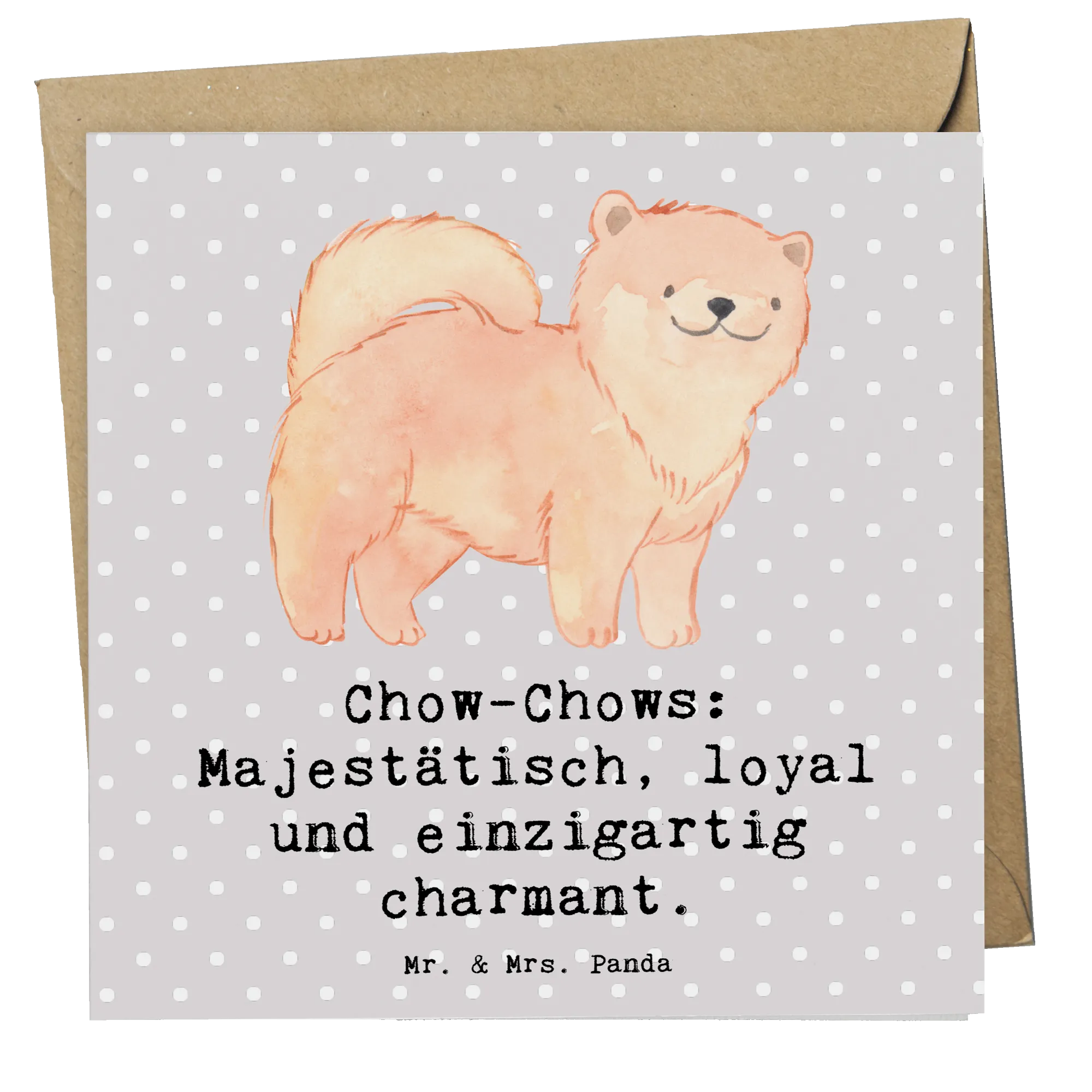 Die Deluxe Karte mit dem zauberhaften Chow-Chow Motiv aus der Hunderassen Kollektion von Mr. & Mrs. Panda ist der perfekte Weg, um Deine besten Wünsche auf eine liebevolle und persönliche Art und Weise zu überbringen. Diese hochwertige quadratische Karte misst 140 mm x 140 mm und besteht aus 300 Gramm starkem, edlem Karton, der ihr einen besonderen Glanz verleiht. Die Vorderseite der Karte zeigt das niedliche Chow-Chow Motiv, gepaart mit dem Slogan "Chow-Chows: Majestätisch, loyal und einzigartig charmant." Diese Kombination macht sie nicht nur zu einer wunderbaren Glückwunschkarte, sondern auch zu einem kleinen Kunstwerk, das jedem Hundefan ein Lächeln ins Gesicht zaubern wird.
