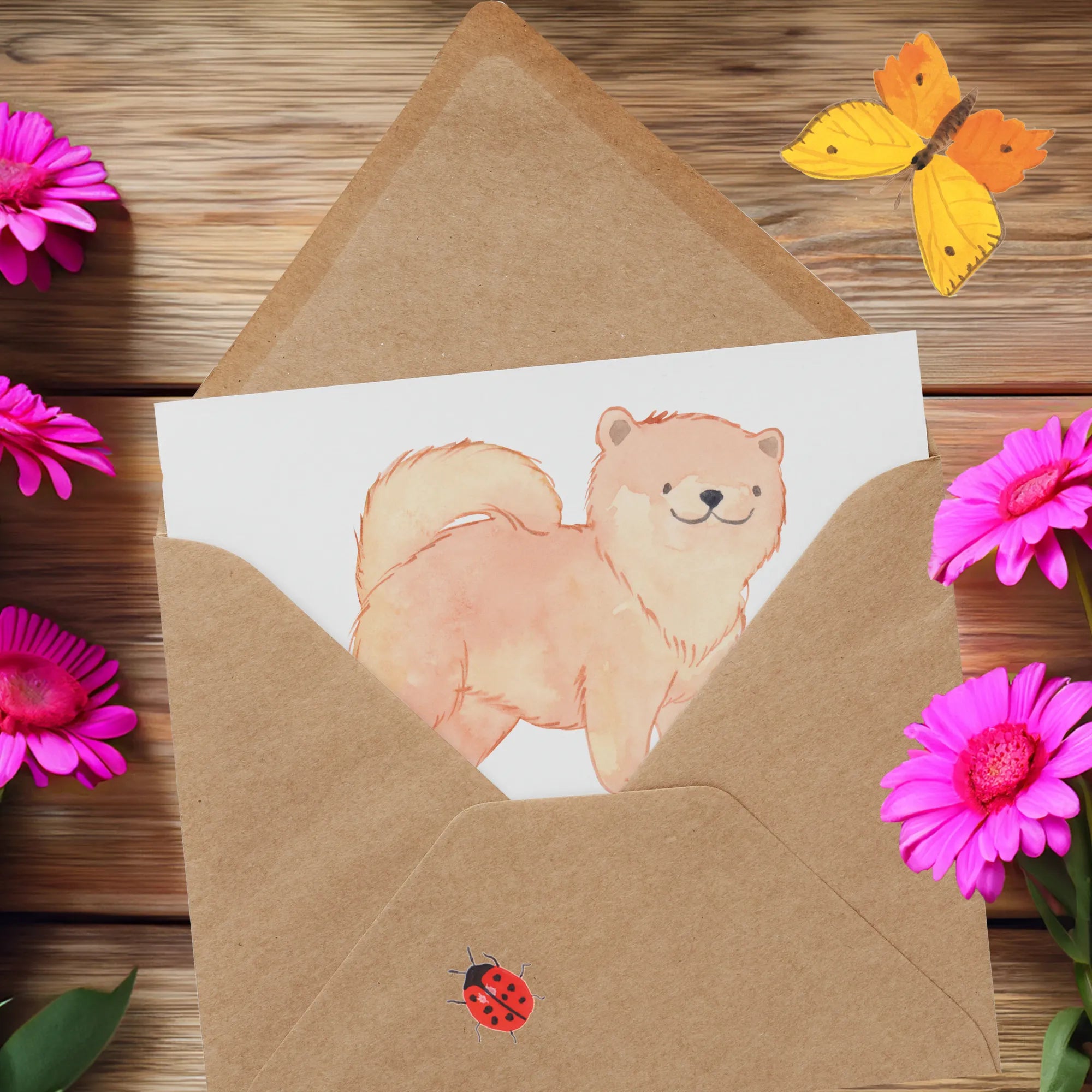 Die Deluxe Karte mit dem zauberhaften Chow-Chow-Motiv aus der Hunderassen-Kollektion von Mr. & Mrs. Panda ist der perfekte Begleiter für alle Hundeliebhaber und Freunde von eleganten Grüßen. Diese wunderschöne, quadratische Karte (140 mm x 140 mm) begeistert durch ihr hochwertiges Material aus 300 Gramm schwerem Karton, das eine edle Optik und Haptik bietet.
