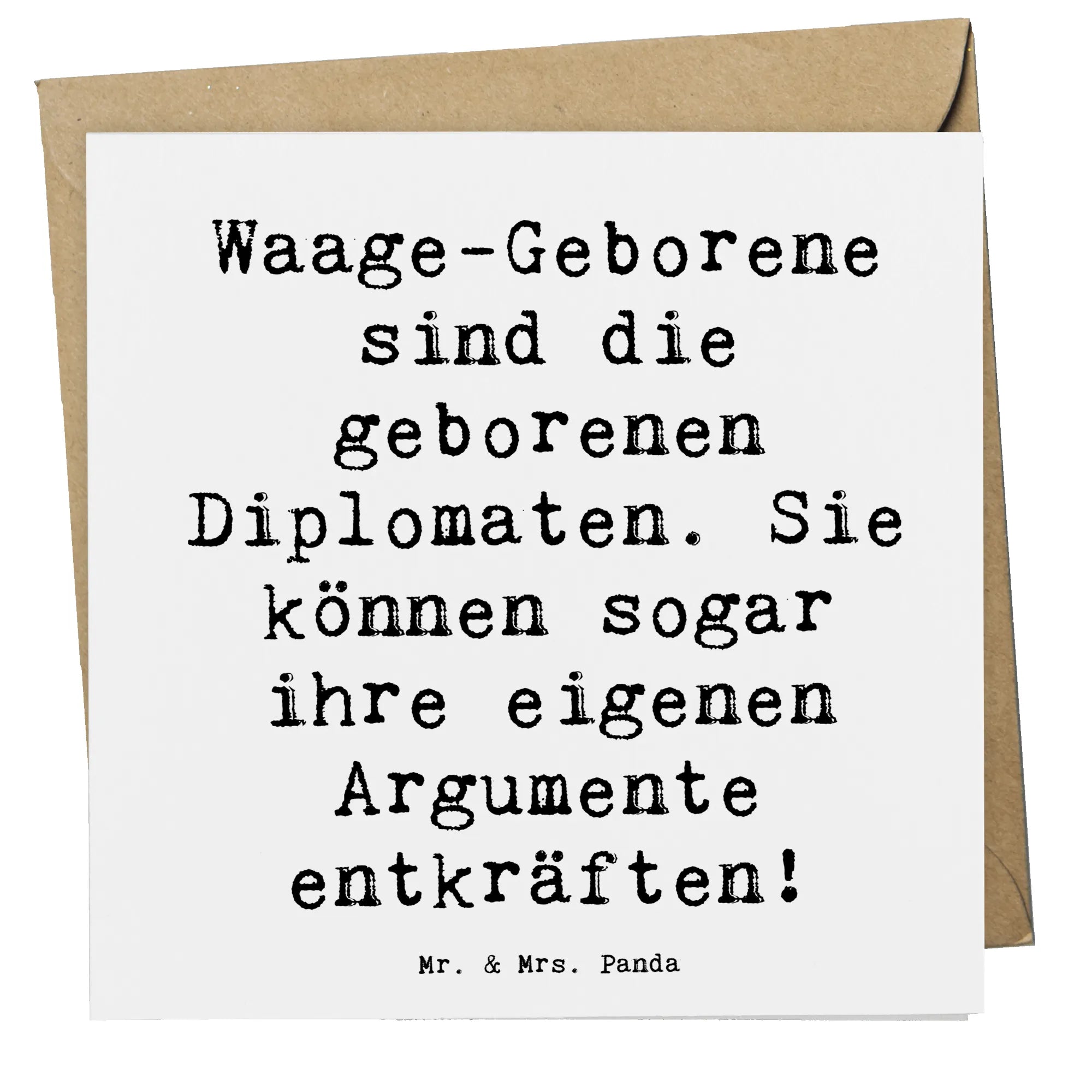 Das süße Motiv der Waage zeigt sich auf der Vorderseite und wird durch den charmanten Spruch "Waage-Geborene sind die geborenen Diplomaten. Sie können sogar ihre eigenen Argumente entkräften!" ergänzt. Die Innenseite ist blanko, damit Du Deine persönlichen Gedanken und Glückwünsche auf liebevolle Weise festhalten kannst.