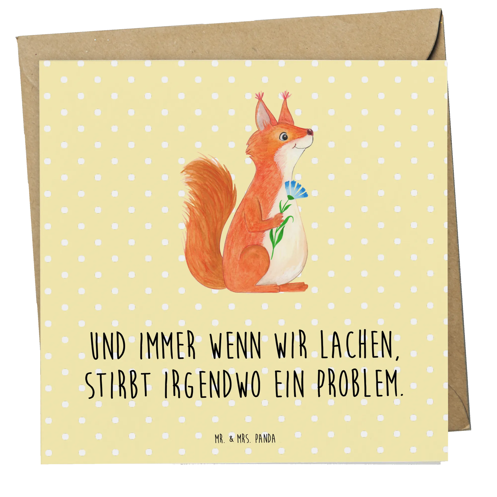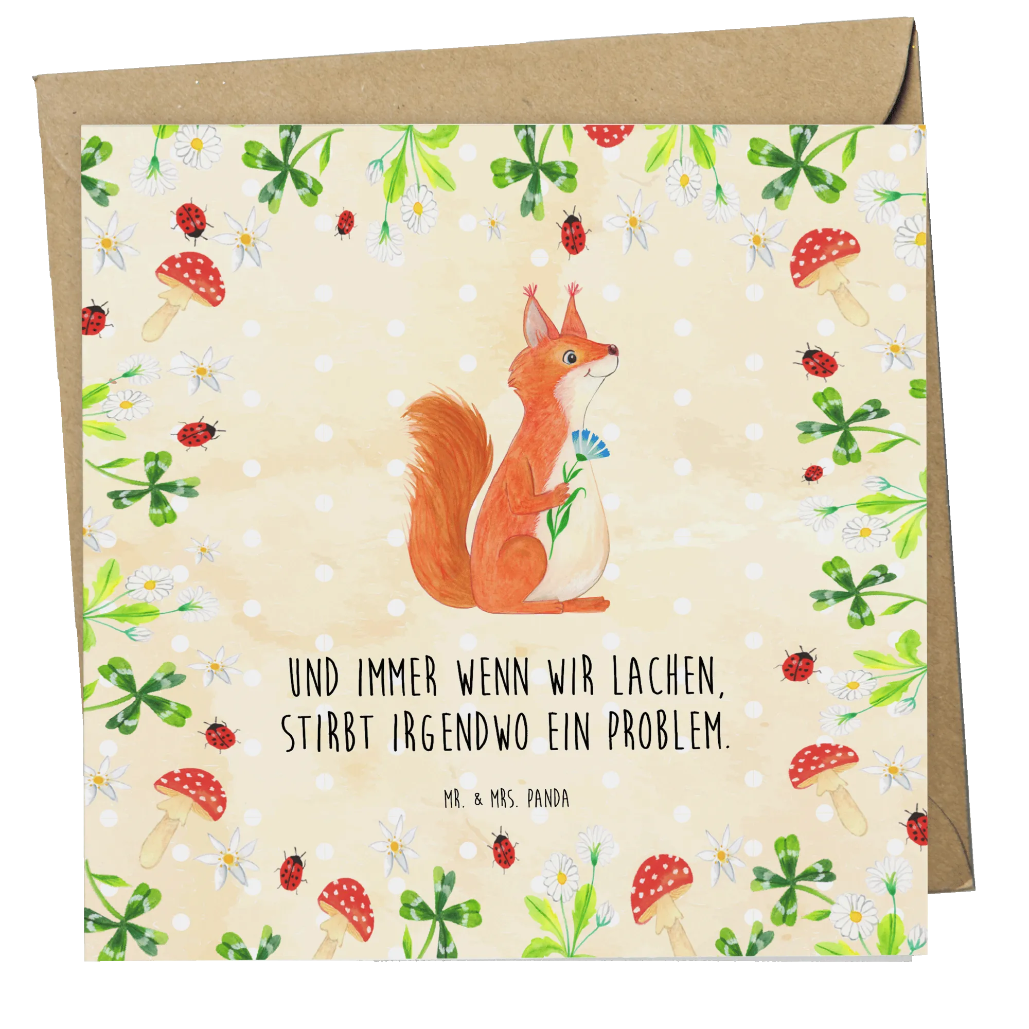 Du bist auf der Suche nach einer ganz besonderen Grußkarte? Die Deluxe Karte Eichhörnchen Blume aus der Small World Kollektion von Mr. & Mrs. Panda ist genau das richtige für dich! Diese wunderschöne und besonders hochwertige quadratische Karte zaubert jedem ein Lächeln ins Gesicht! Das niedliche Eichhörnchen, das voller Freude eine Blume in der Hand hält, ist ein echter Hingucker.