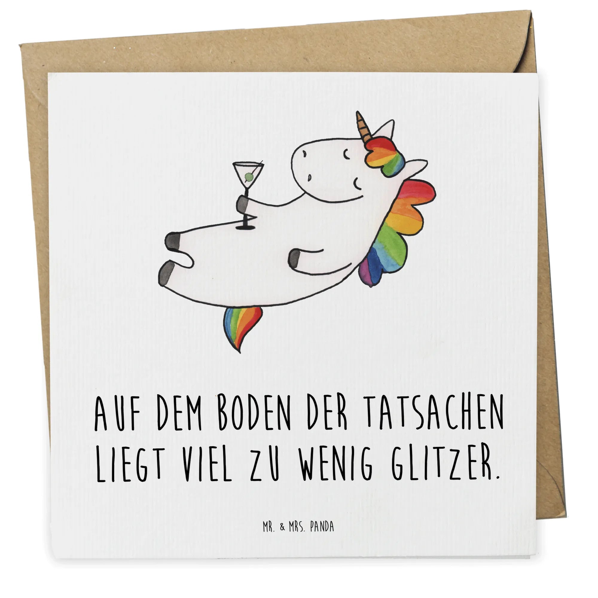 Die Deluxe Karte „Einhorn Cocktail“ von Mr. & Mrs. Panda ist das perfekte Geschenk für alle Einhorn-Liebhaberinnen und Freundinnen, die gern lachen, feiern und das Leben mit etwas Glitzer nehmen. Auf der Vorderseite hält ein zufriedenes Einhorn ein Cocktailglas – ein Motiv, das sofort gute Laune verbreitet. Der eingedruckte Spruch lautet: „Auf dem Boden der Tatsachen liegt viel zu wenig Glitzer.“ und sorgt für ein Augenzwinkern bei jeder Empfängerin.