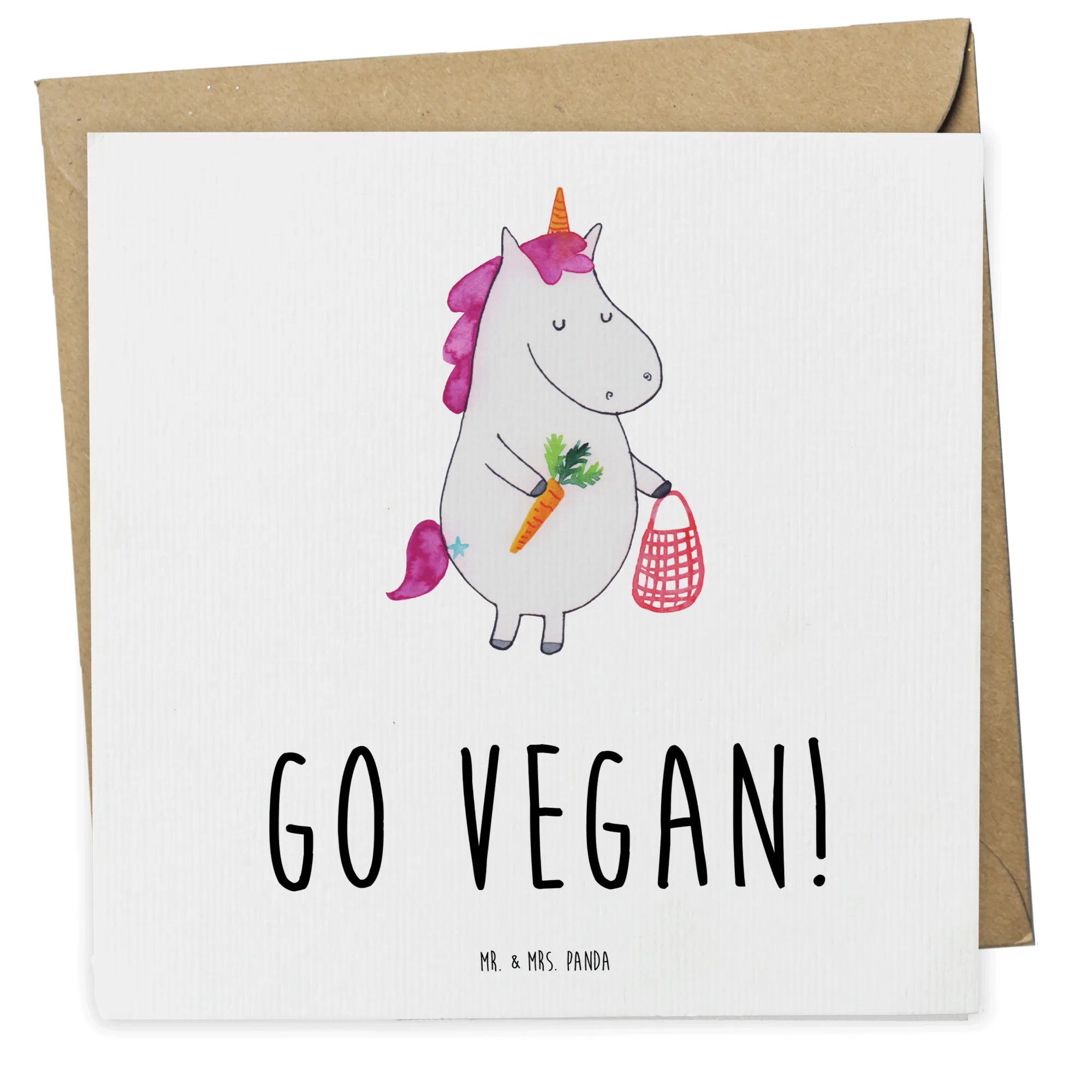 Kollektion: Die Einhorn-Kollektion von Mr. & Mrs. Panda – liebevoll von Mrs. Panda handgezeichnet. Jedes Motiv bringt Freude und lässt Herzen höher schlagen. Mit dem Slogan 'GO VEGAN!' wird die Karte zur perfekten Message für einen gesunden und glücklichen Lebensstil. 😊