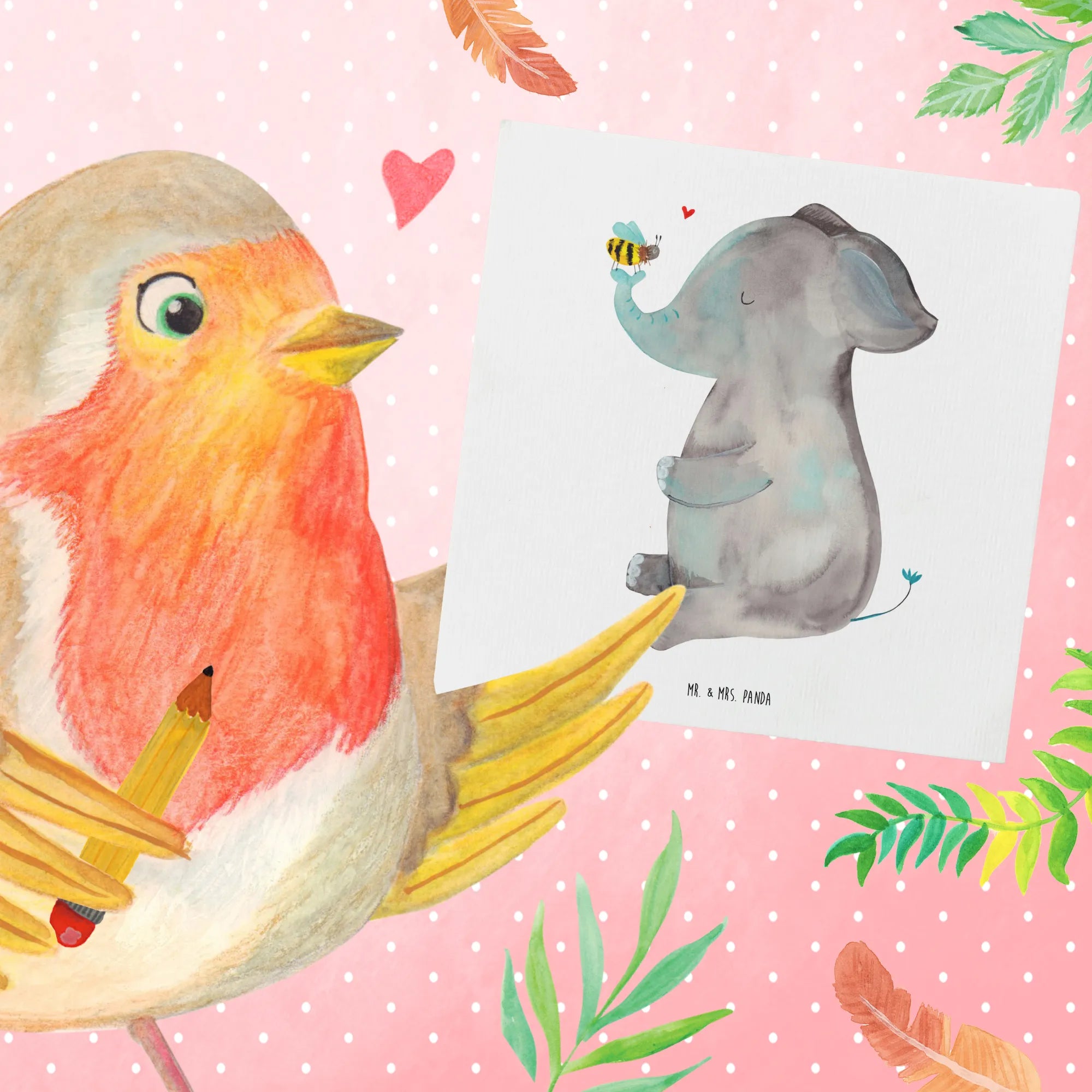 Diese spezielle Karte kommt aus der Small World Kollektion von Mr. & Mrs. Panda und besticht durch ihr schlichtes, aber ausdrucksstarkes Design. Der Elefant, der sanft eine Biene auf seinem Rüssel hält, symbolisiert die Schönheit von Freundschaft und Verbundenheit. Während der Elefant für Stärke und Schutz steht, verkörpert die kleine Biene Fleiß und Zusammenarbeit. Ein perfektes Zusammenspiel, das dich daran erinnert, dass auch die kleinsten Dinge eine große Rolle spielen können.