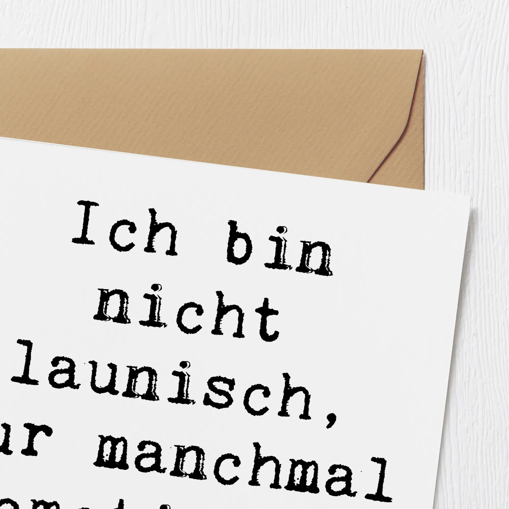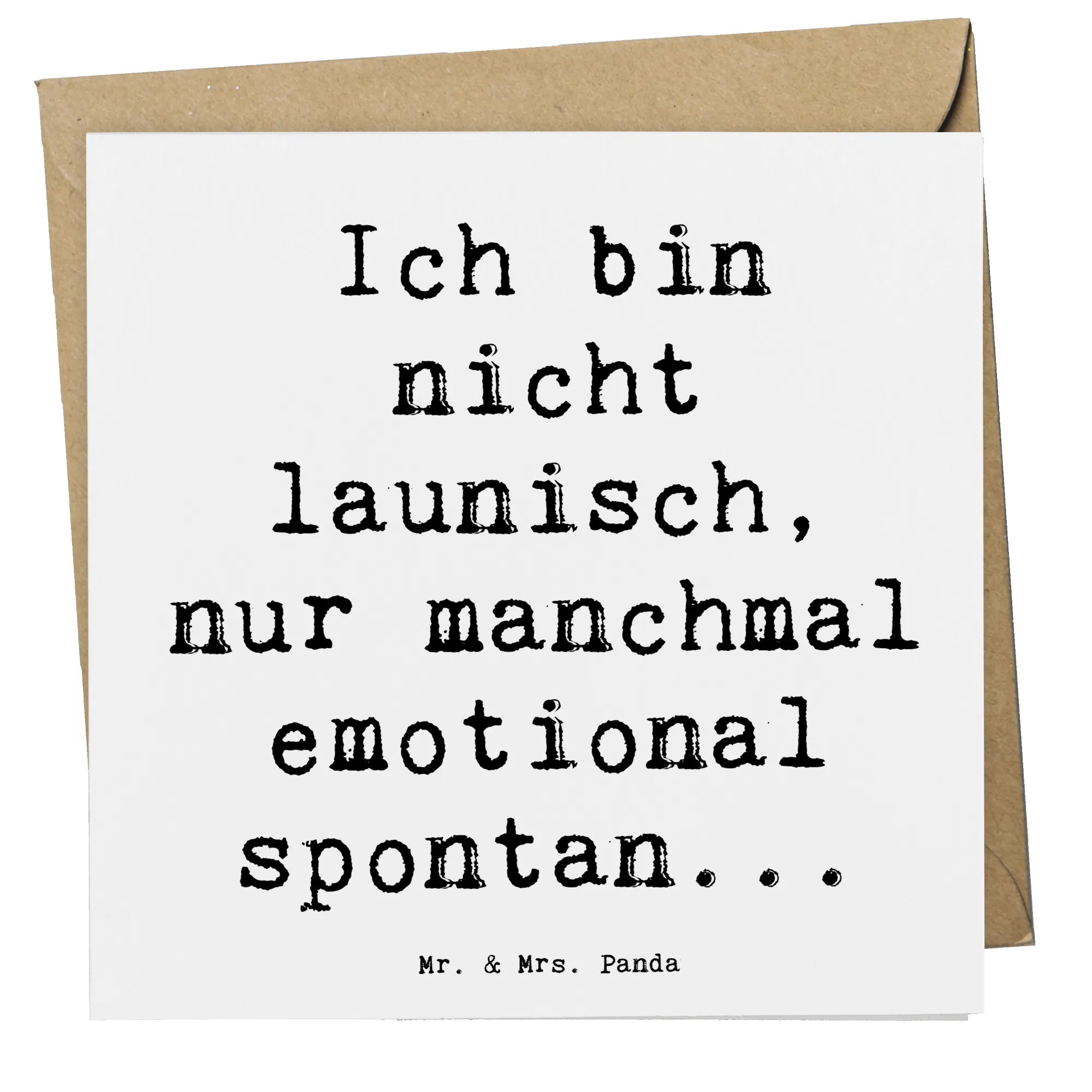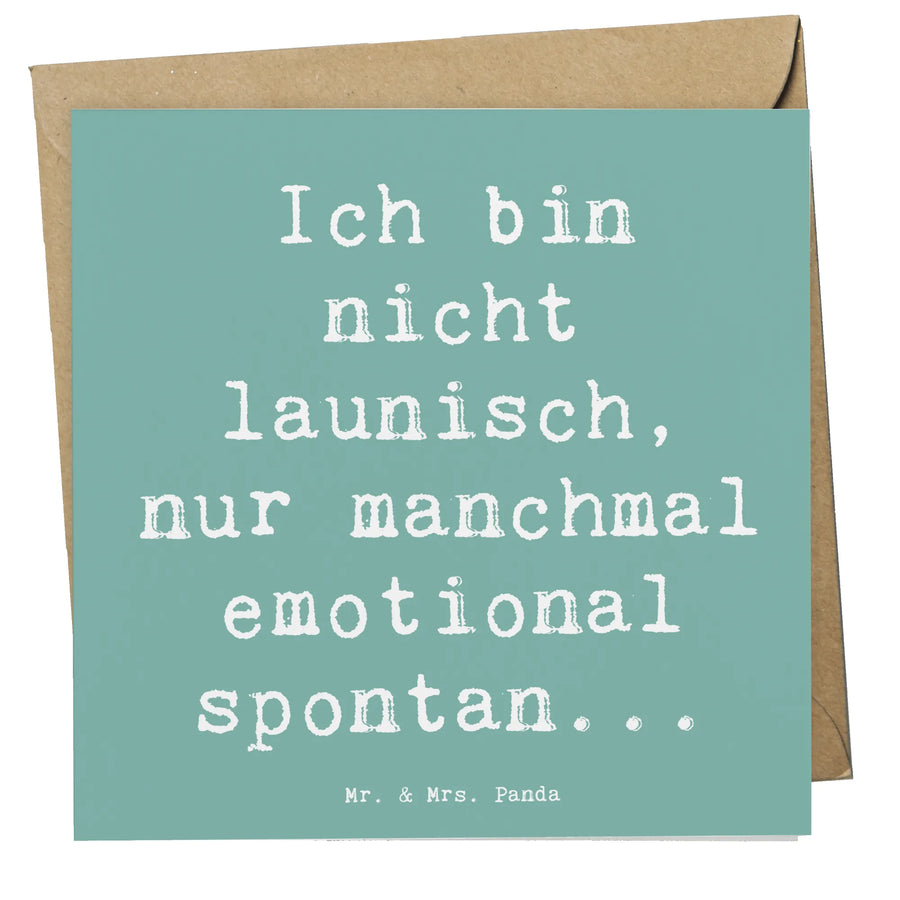 Auf der Vorderseite findest Du den inspirierenden Spruch: "Ich bin nicht launisch, nur manchmal emotional spontan...". Dieser liebevolle Satz vermittelt Zuversicht und Trost und genau das, was man seinen Liebsten in solchen Momenten mit auf den Weg geben möchte.