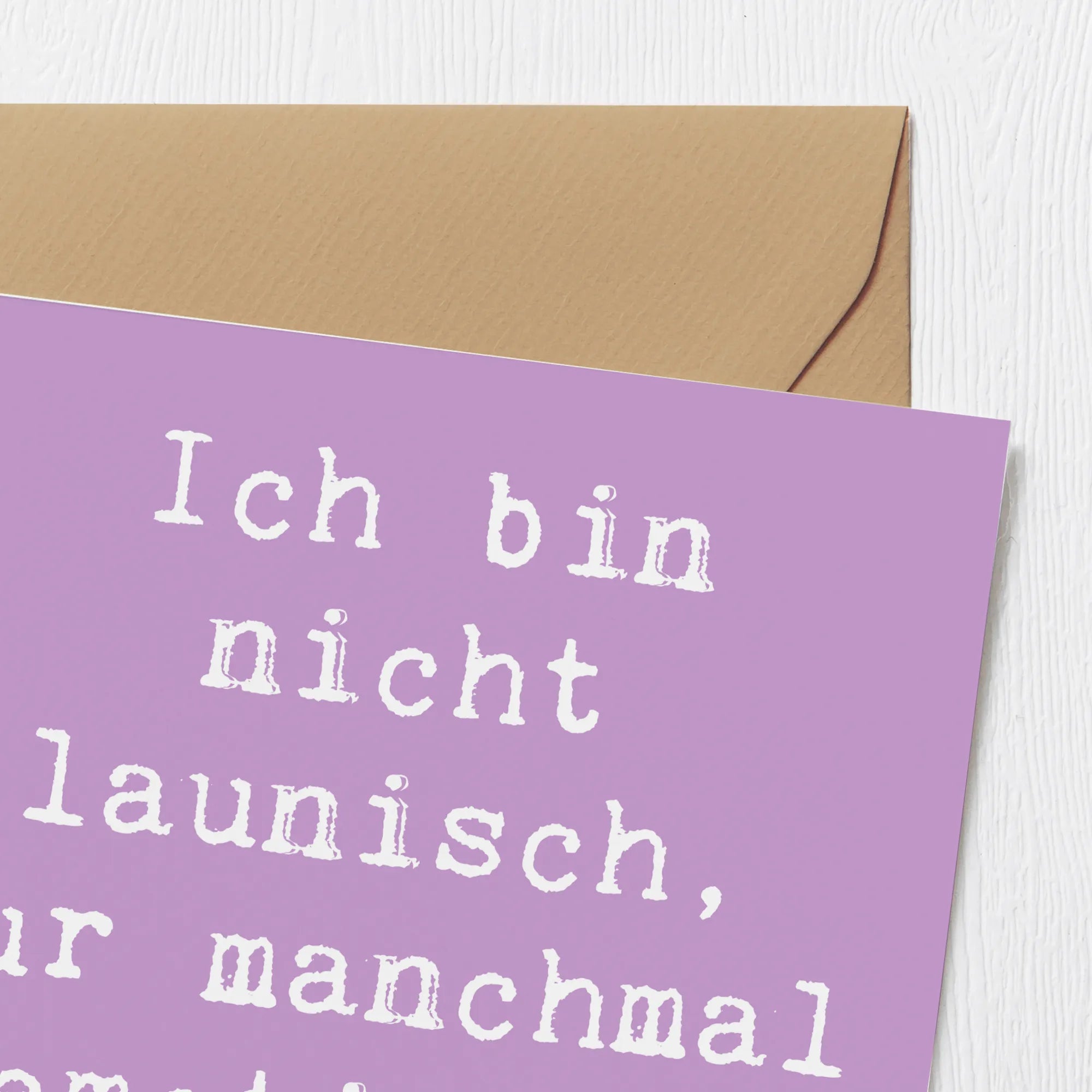 Sie ist aus edlem, hochglänzend veredeltem 300 Gramm Karton gefertigt, der nicht nur gut aussieht, sondern sich auch wunderbar anfühlt. Auf der Vorderseite erwartet dich ein süßes Motiv mit dem Spruch "Ich bin nicht launisch, nur manchmal emotional spontan...", während die Innenseite schlicht und matt gehalten ist, sodass du genug Platz für deine persönlichen Zeilen und Glückwünsche hast.