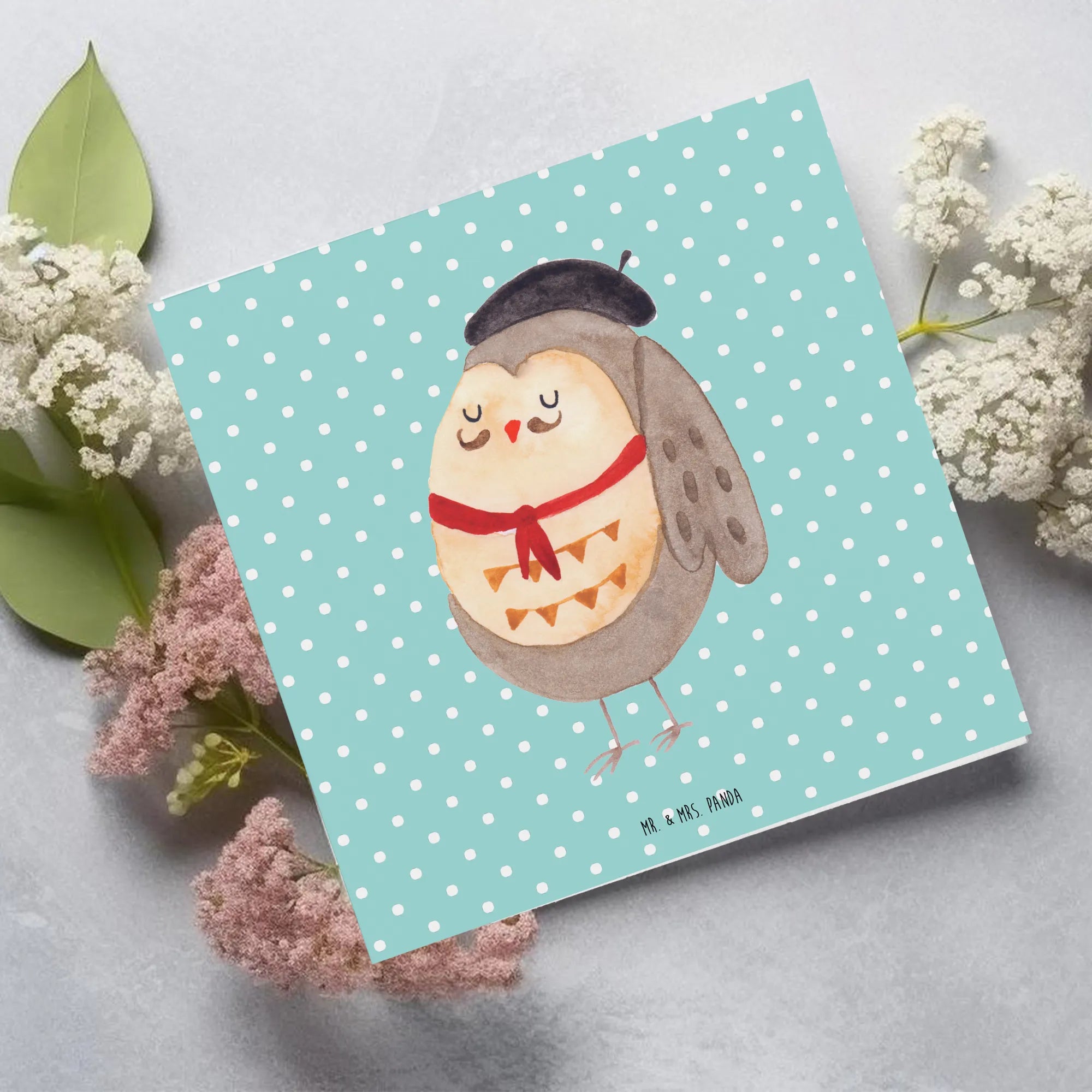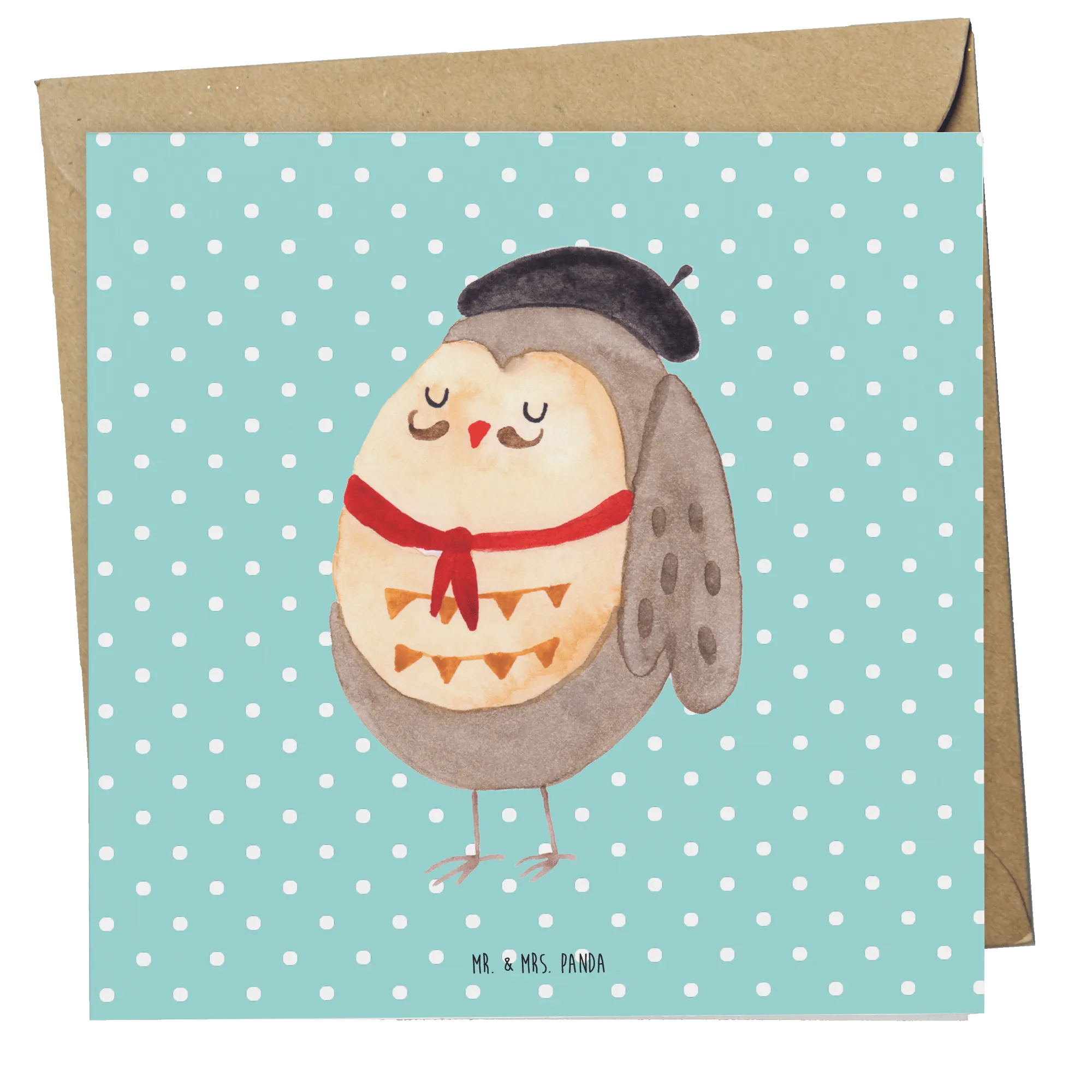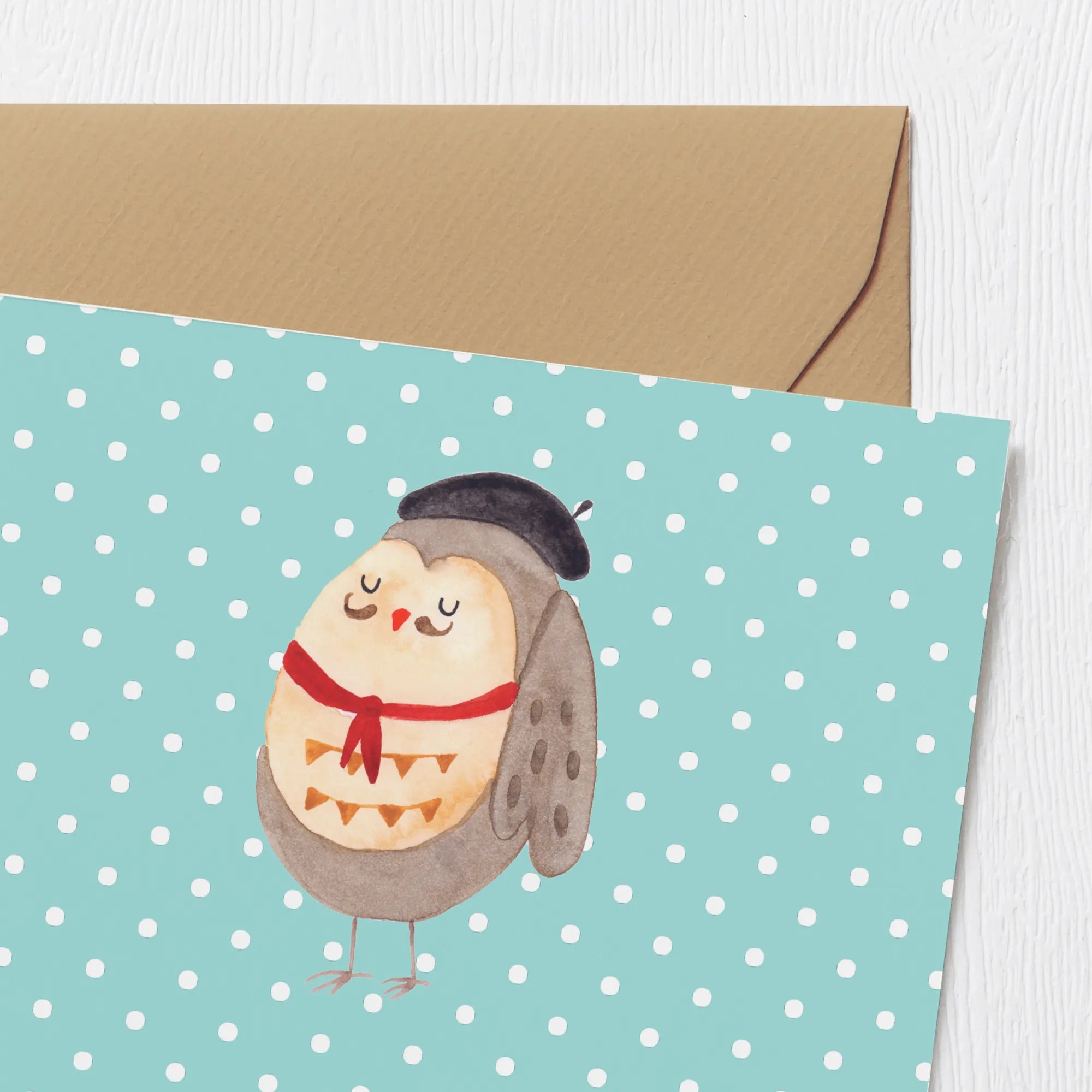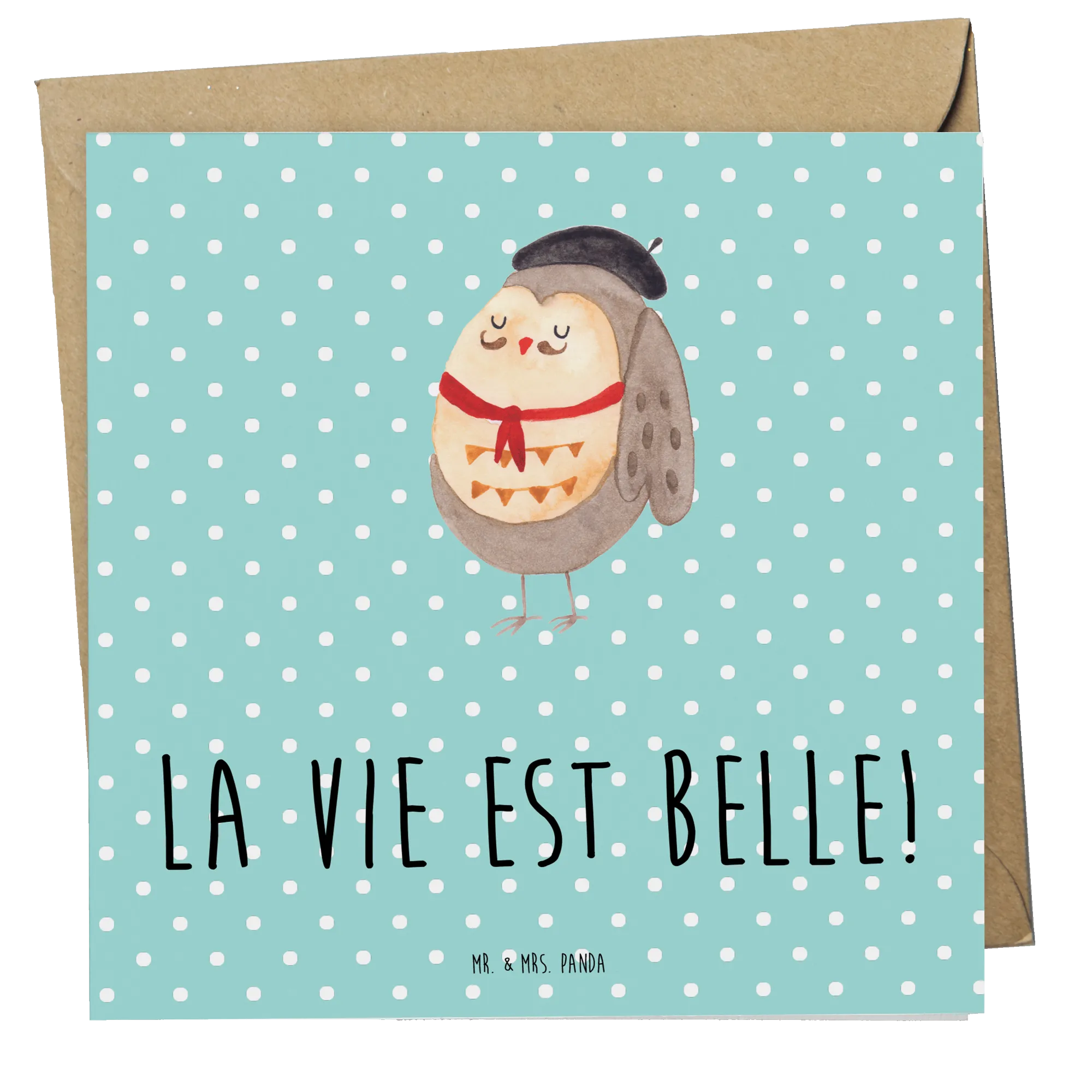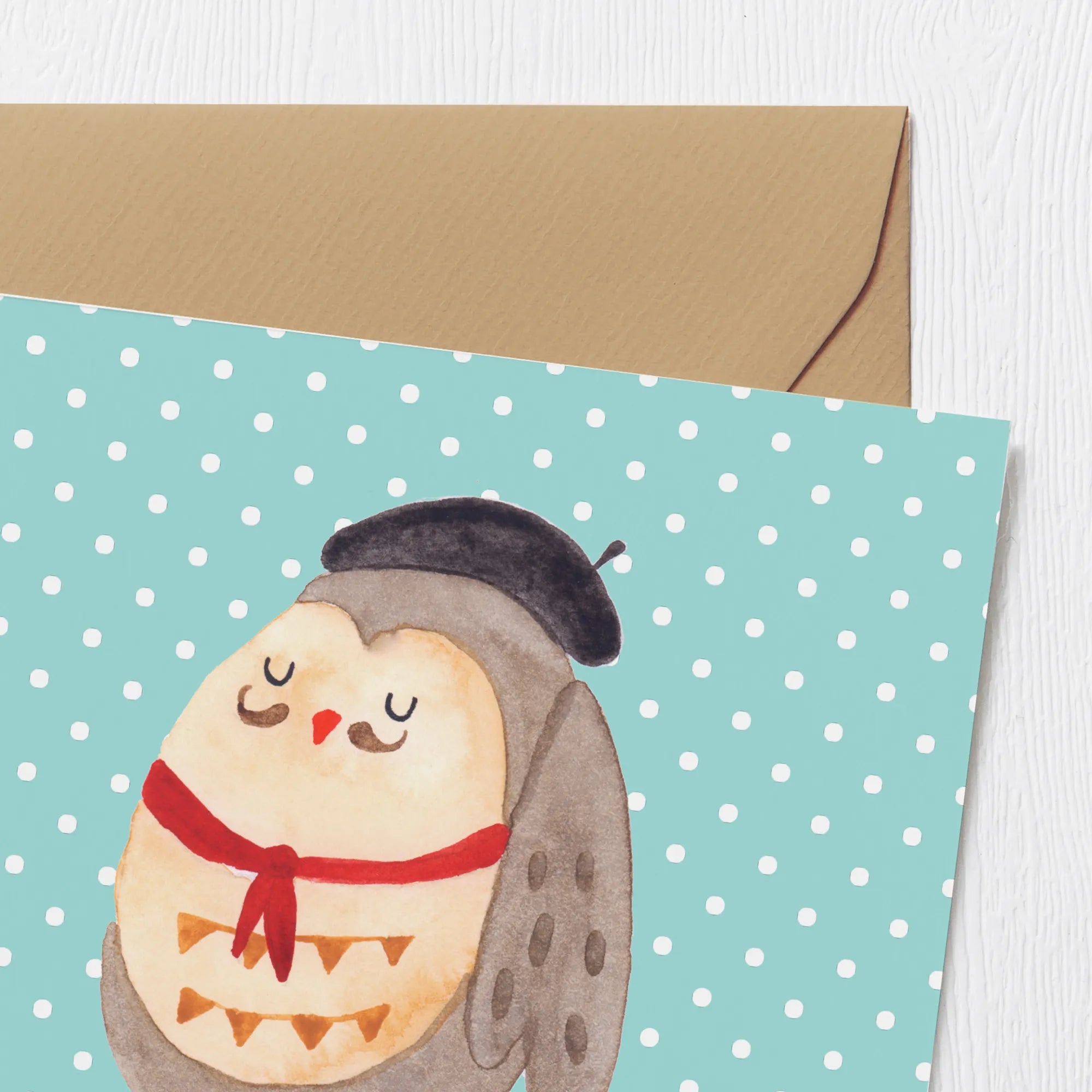 Deluxe Karte Eule Frankreich - mit Spruch - Türkis Pastell