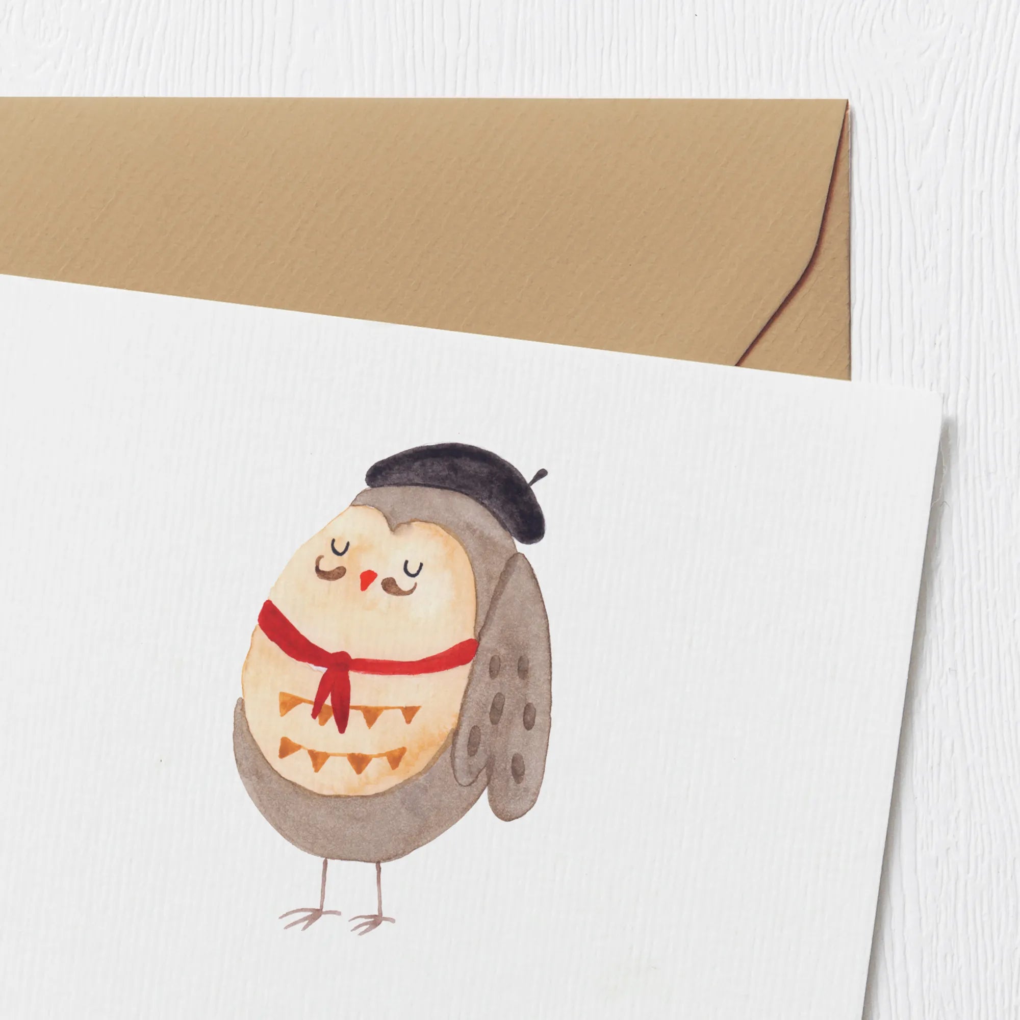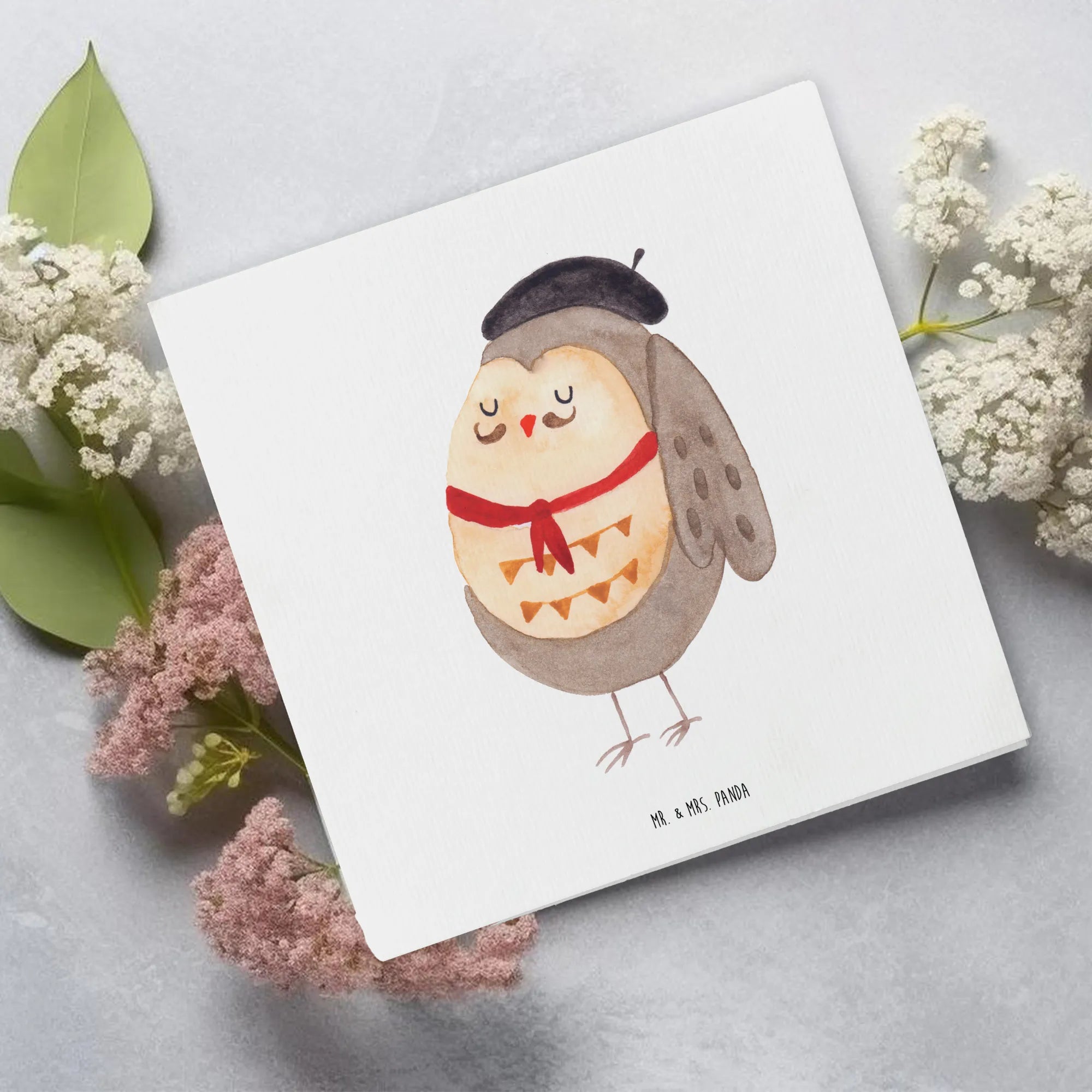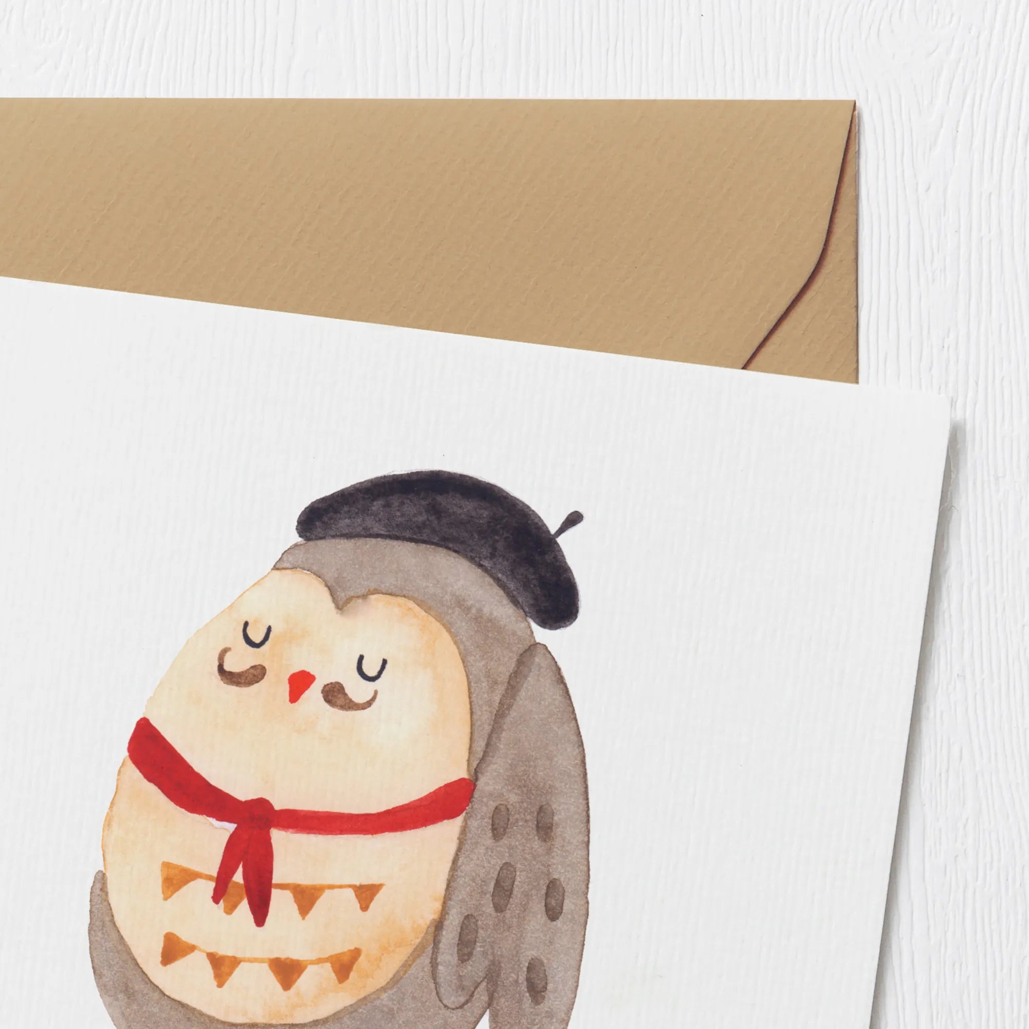 Die Deluxe Karte "Eule Französisch" von Mr. & Mrs. Panda ist der perfekte Gruß für jeden Anlass. Ob zur Hochzeit, zum Geburtstag oder einfach nur um jemandem eine Freude zu machen, diese exquisite und hochwertige quadratische Karte wird sicher ein Lächeln auf die Gesichter Deiner Liebsten zaubern.