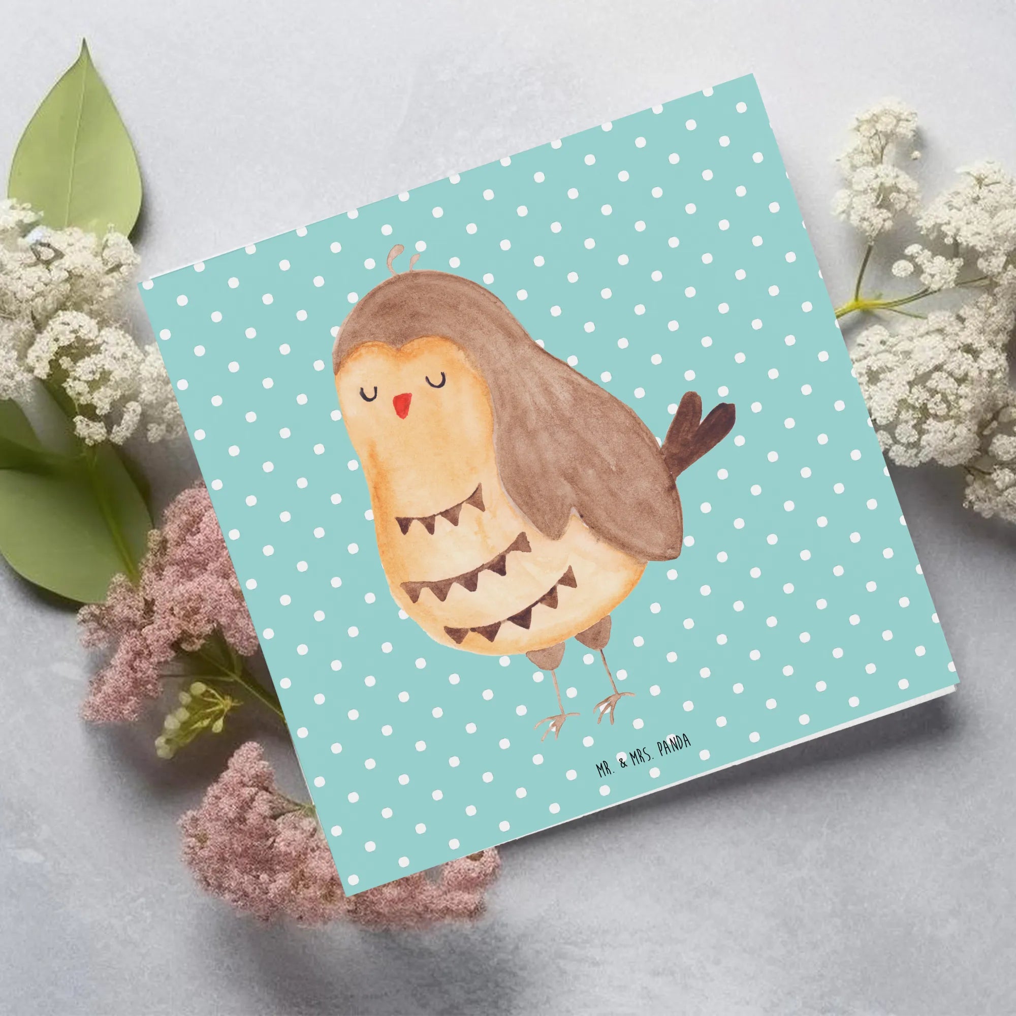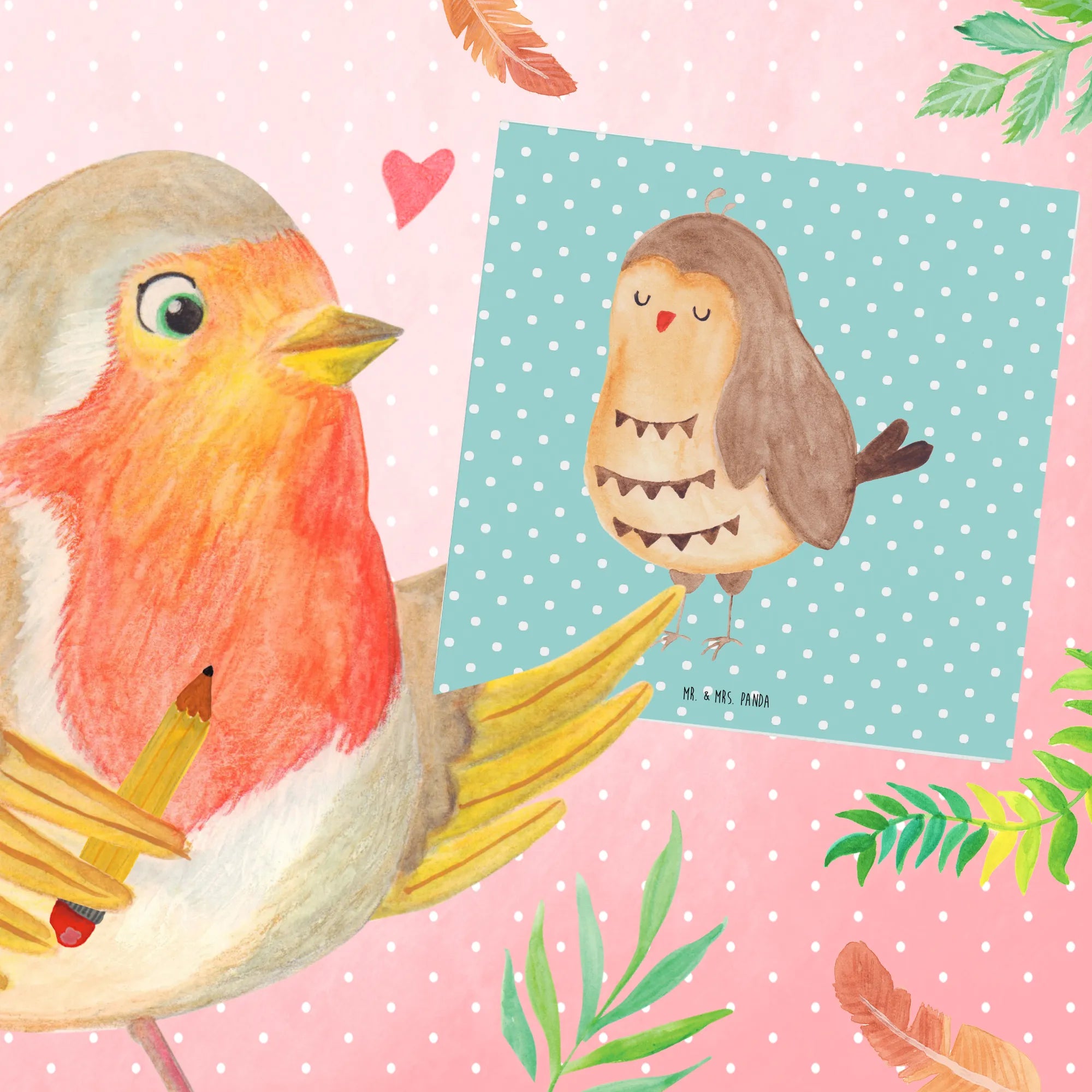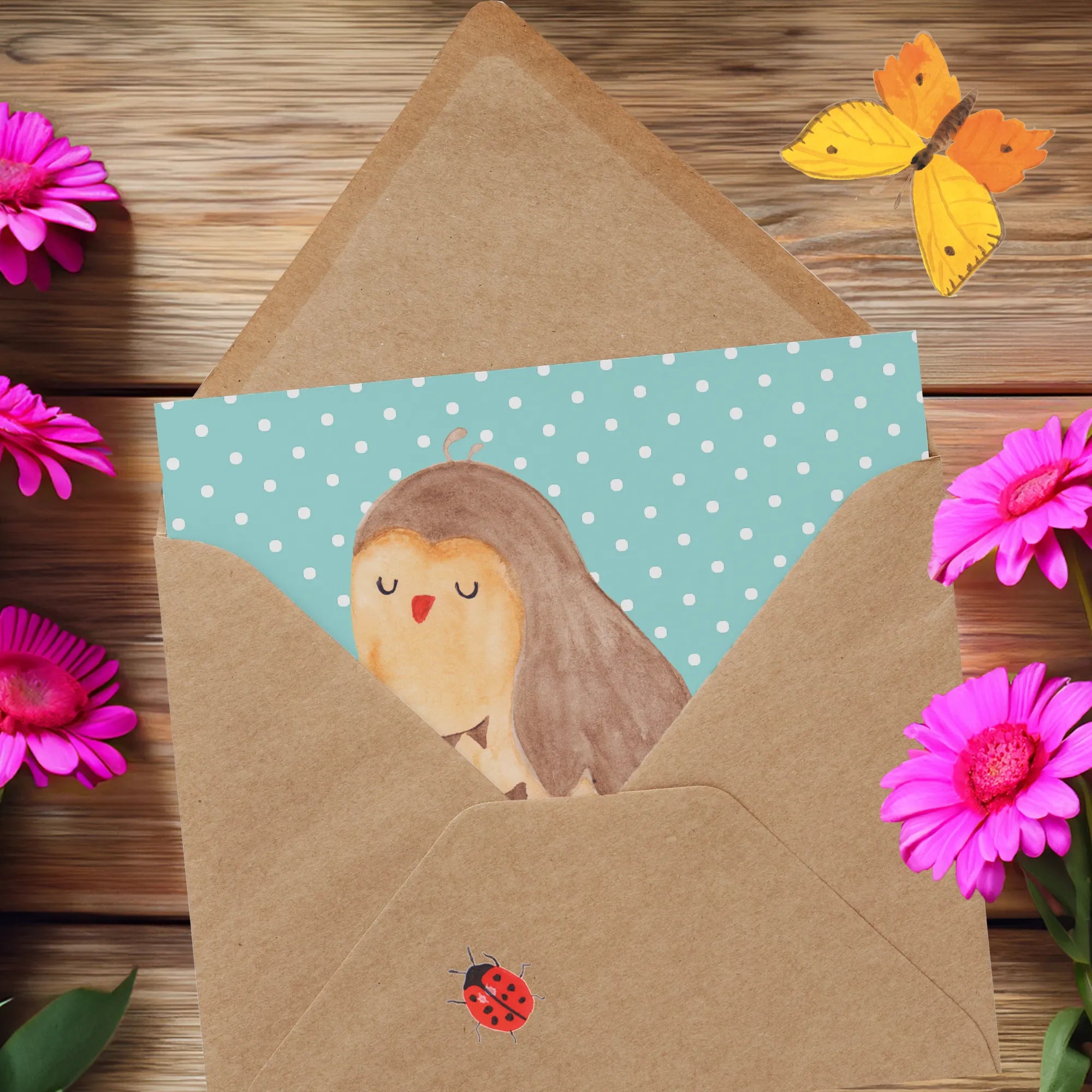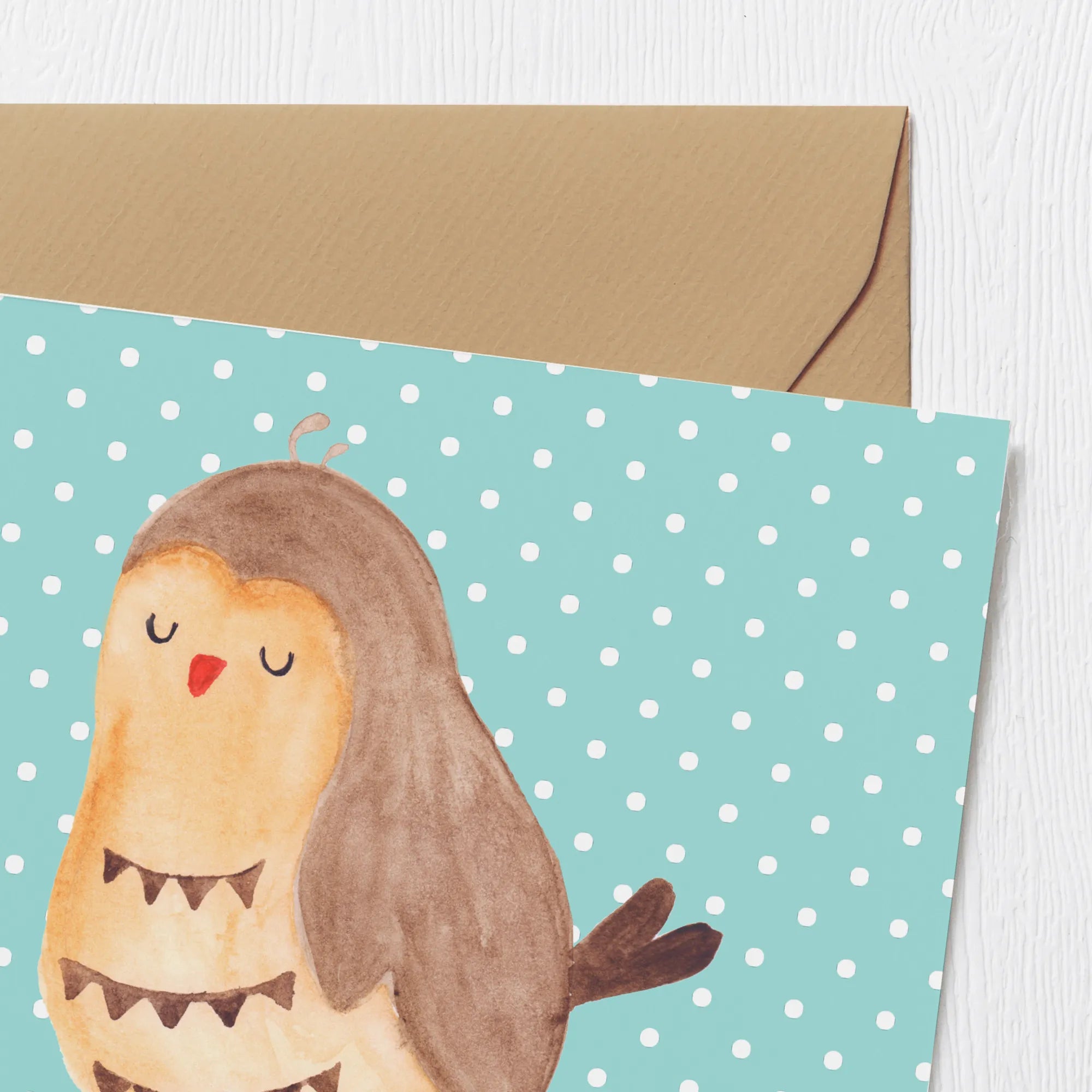 Deluxe Karte Eule Zufrieden - mit Spruch - Türkis Pastell