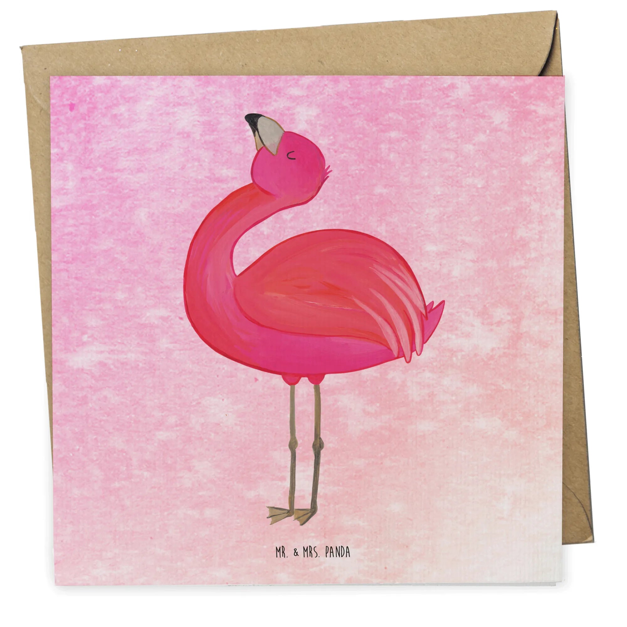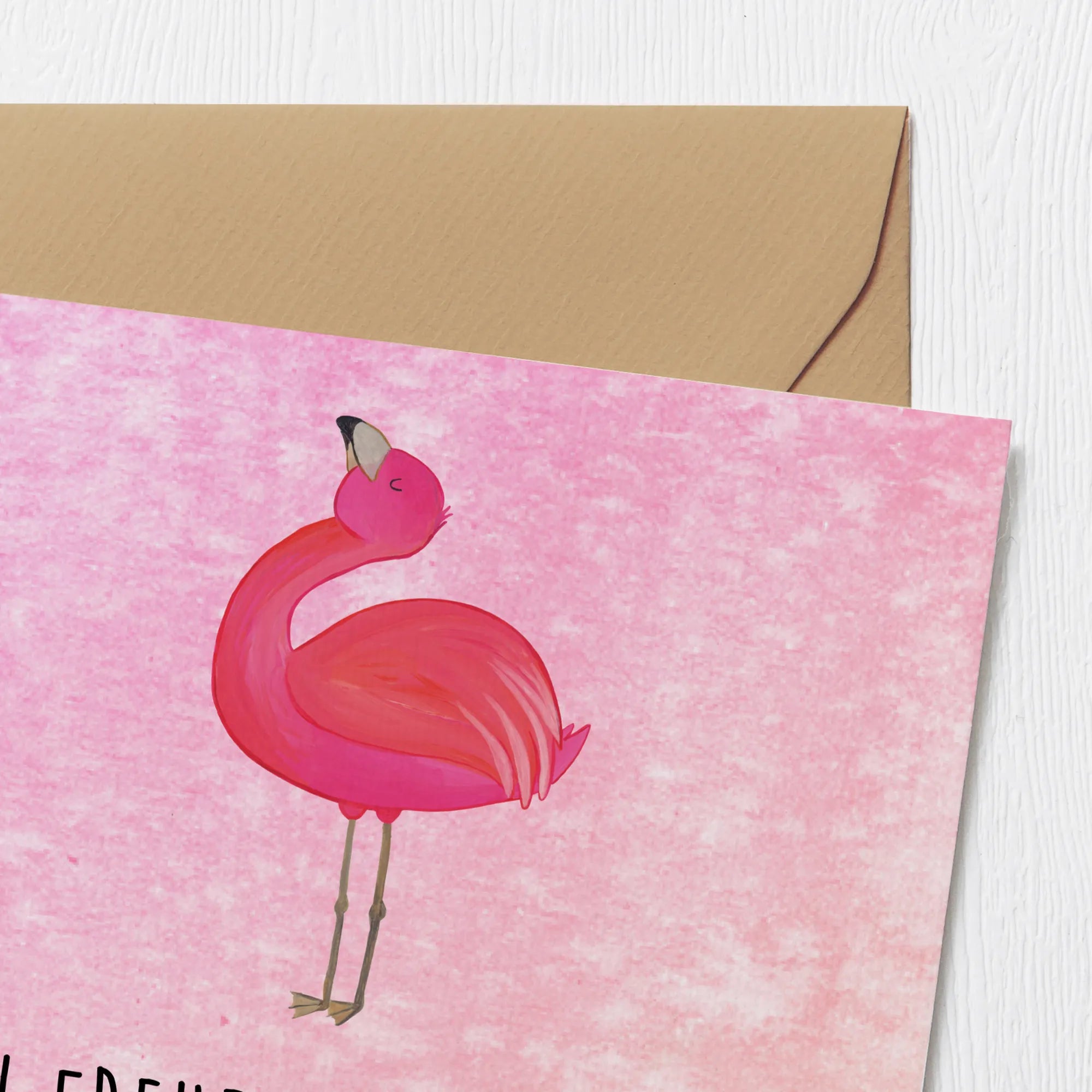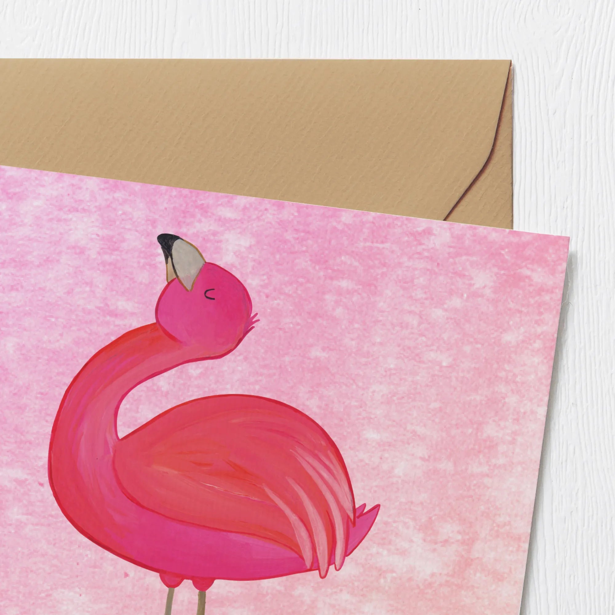 Die Deluxe Karte mit dem stolzen Flamingo aus der Flamingo-Kollektion von Mr. & Mrs. Panda ist das perfekte Geschenk, um Freude und Selbstliebe zu teilen. Ob für deine beste Freundin, Tochter, Mama oder Schwester, diese hochwertige Klappkarte wird sicherlich Herzen höher schlagen lassen!