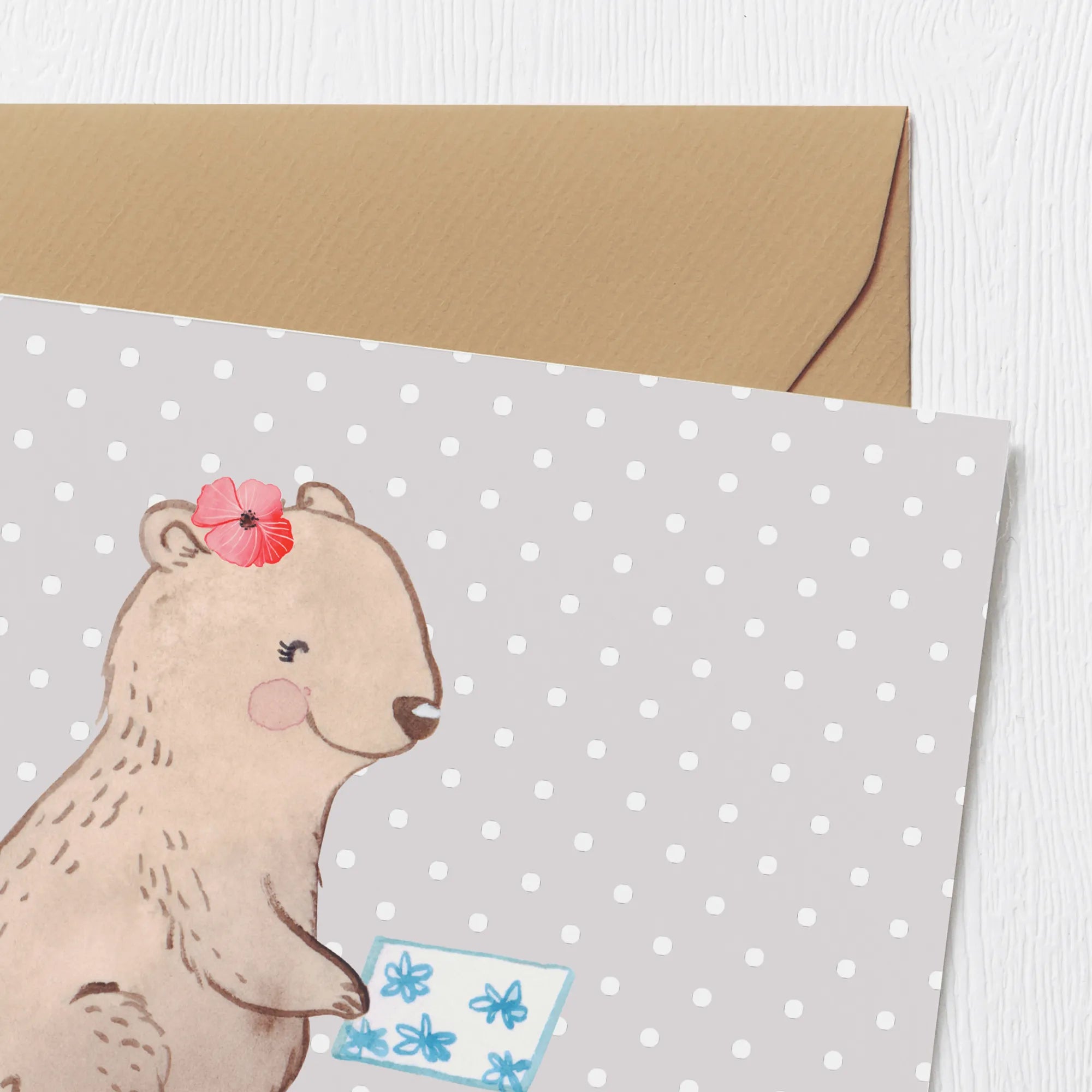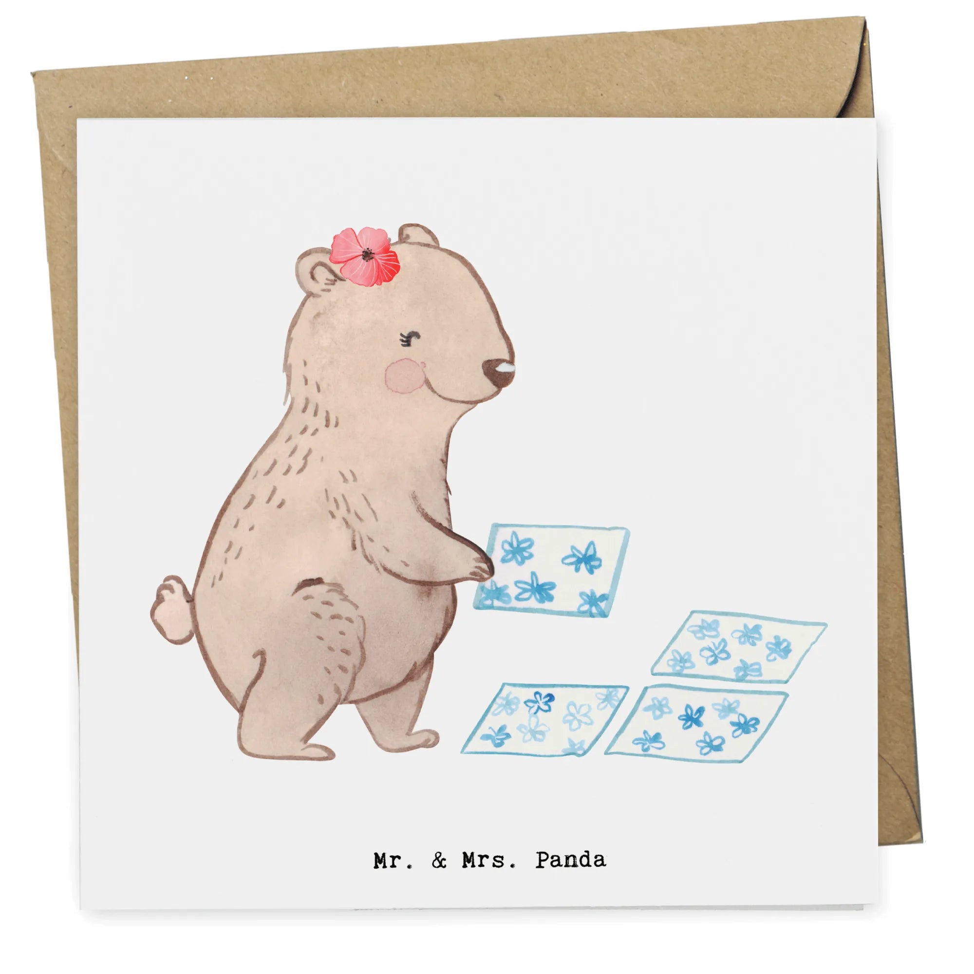 Die hochwertige Klappkarte im quadratischen Format von 140 mm x 140 mm wird aus 300 Gramm Karton gefertigt und fühlt sich besonders wertig an. Die Vorderseite ziert eine niedliche Handzeichnung von Mrs. Panda – eine Fliesenlegerin mit Herz, die das Handwerk repräsentiert. Auf der Innenseite findest du genügend Platz, um deine persönlichen Glückwünsche oder Erinnerungen niederzuschreiben. Der edle Umschlag, der im Lieferumfang enthalten ist, rundet das Geschenk perfekt ab.