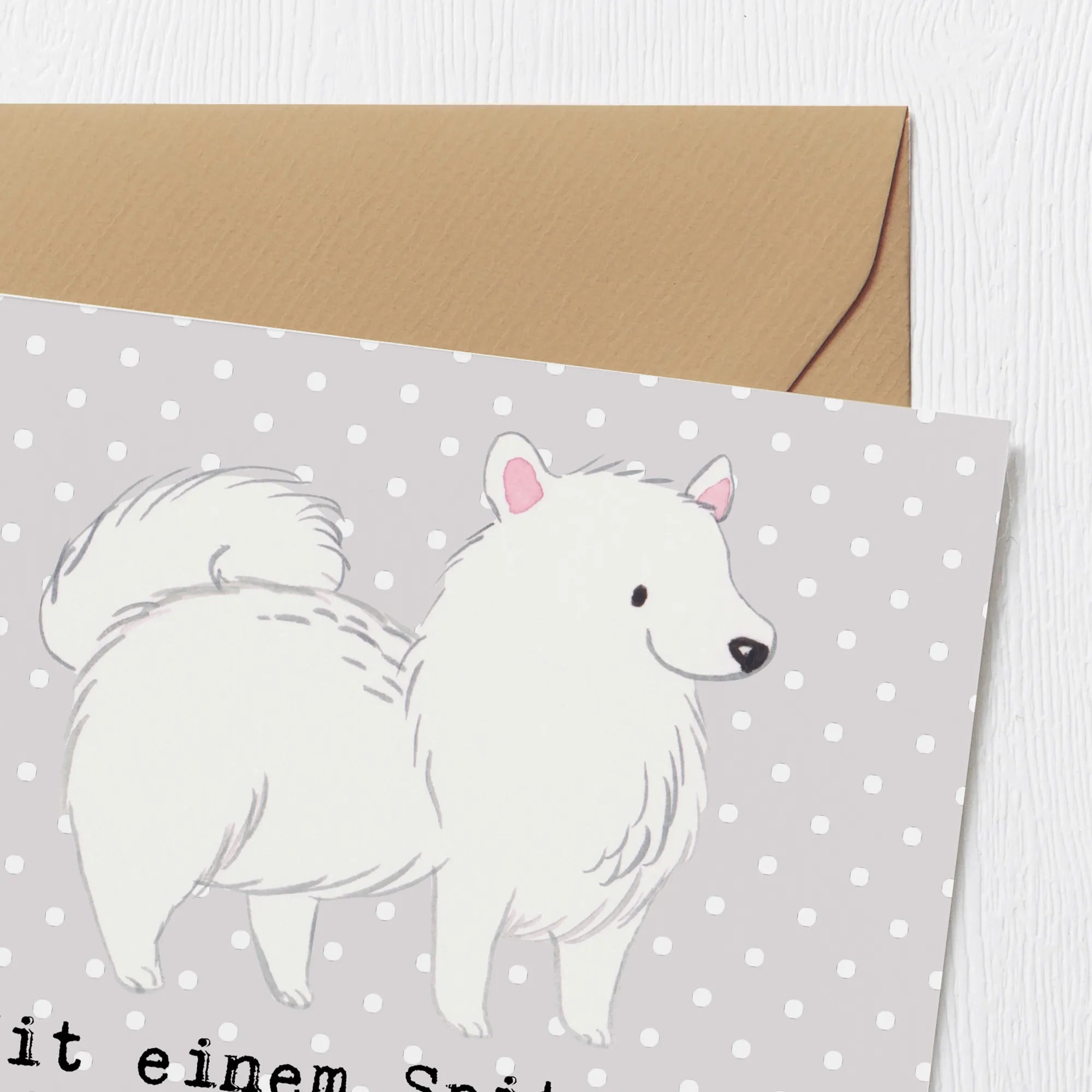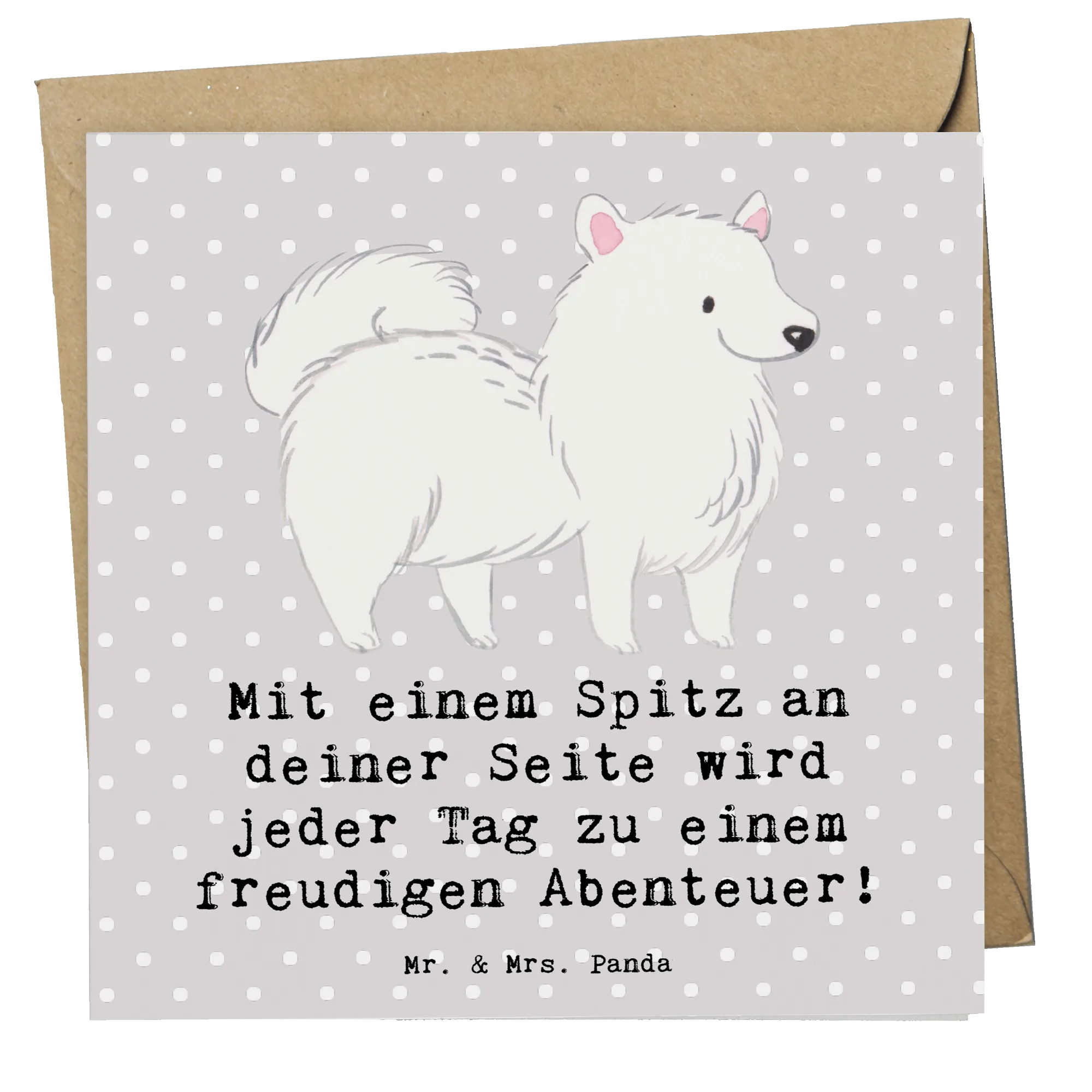 Mit dem Spruch "Mit einem Spitz an deiner Seite wird jeder Tag zu einem freudigen Abenteuer!" verbreitet die Karte nicht nur Freude, sondern auch die Liebe zu diesem wunderbaren Hund.
