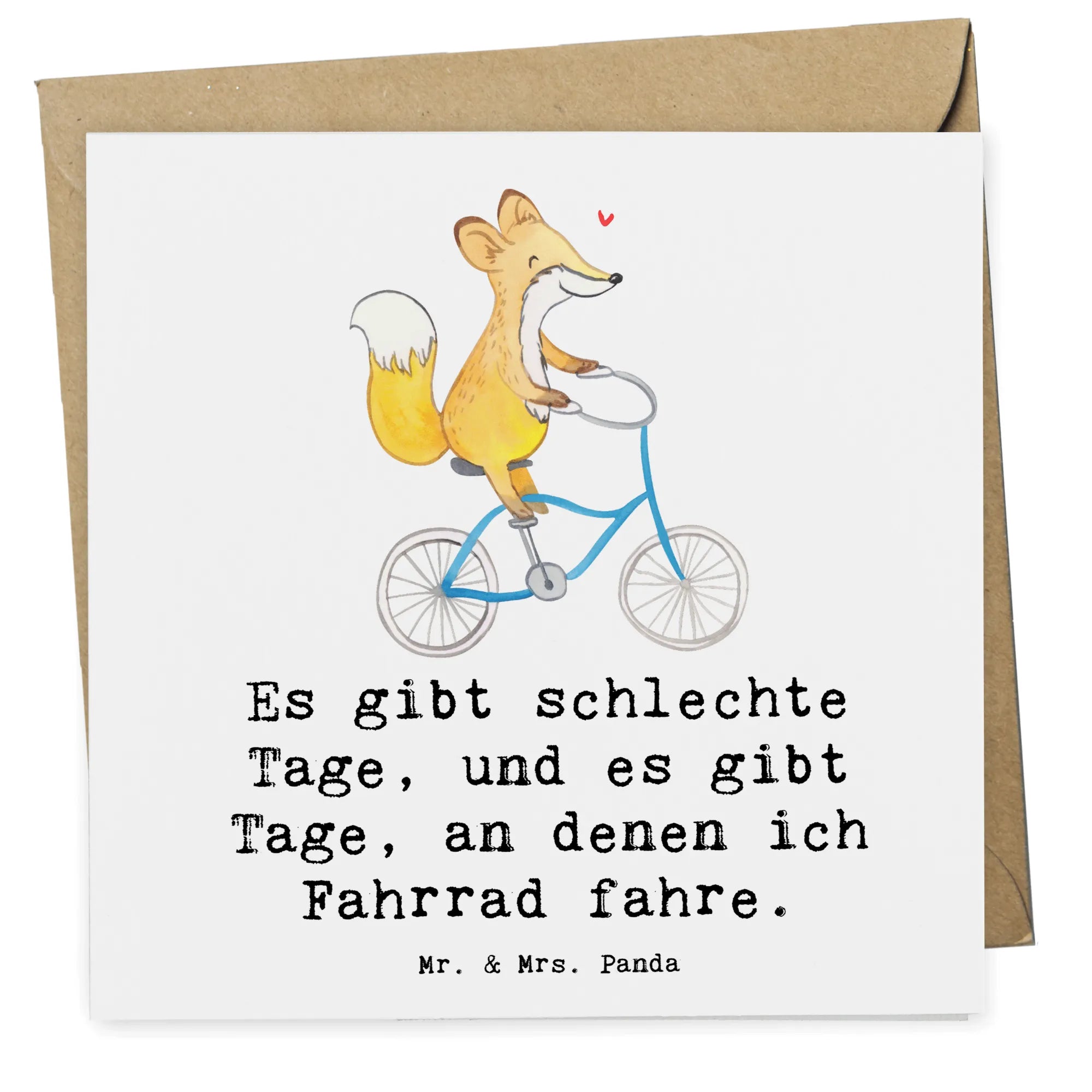 Deluxe Karte „Fuchs Fahrrad fahren Tage“ – die perfekte Grußkarte für alle Fahrradfans! 🚴♂️🐾 Dieses liebevoll illustrierte Motiv aus der Hobby & Sport Kollektion von Mr. & Mrs. Panda zeigt einen fröhlichen Fuchs, der begeistert Fahrrad fährt. Der passende Spruch „Es gibt schlechte Tage, und es gibt Tage, an denen ich Fahrrad fahre.“ bringt das Gefühl von Freiheit und Glück auf den Punkt.