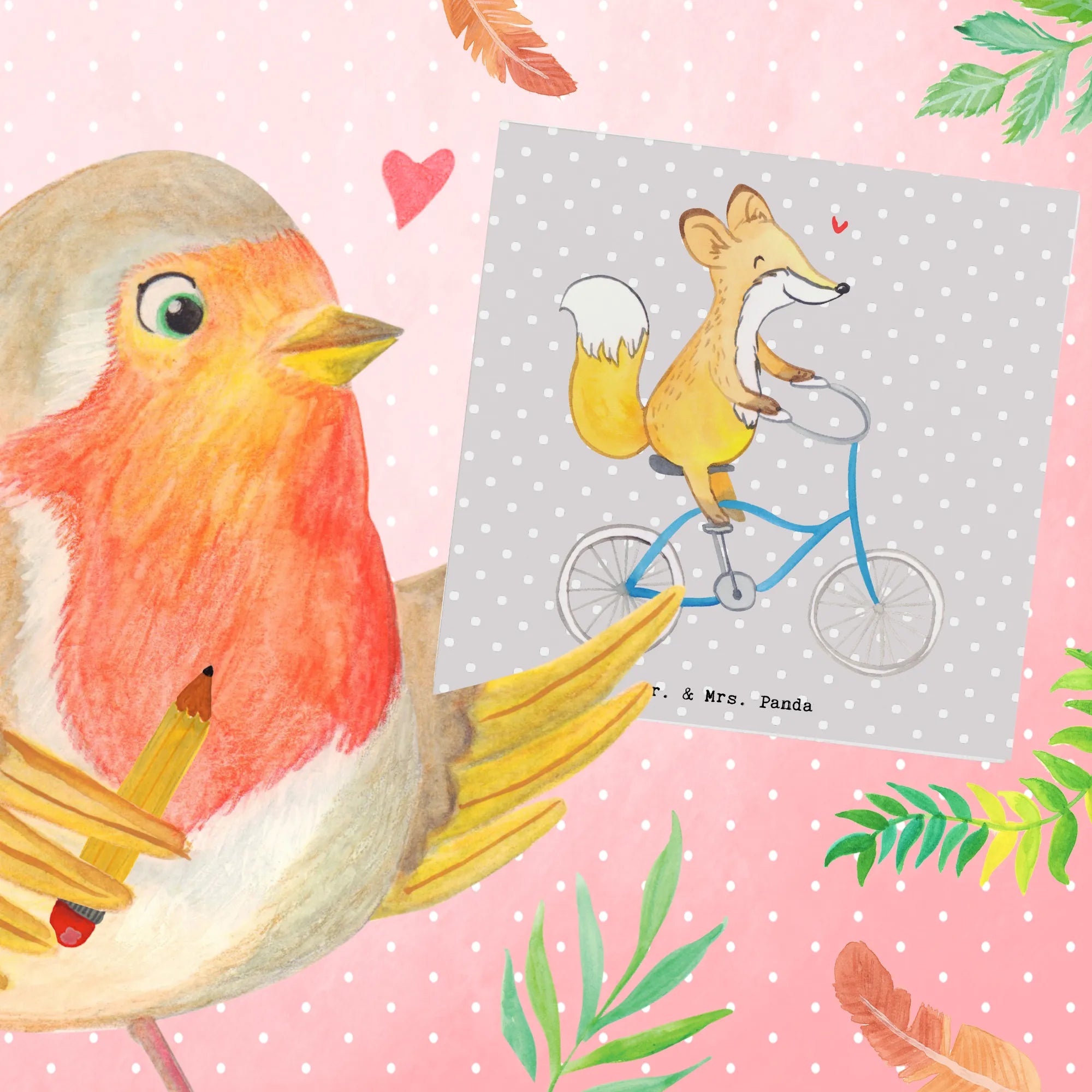 Deluxe Karte Fuchs Fahrrad fahren - mit Spruch - Grau Pastell