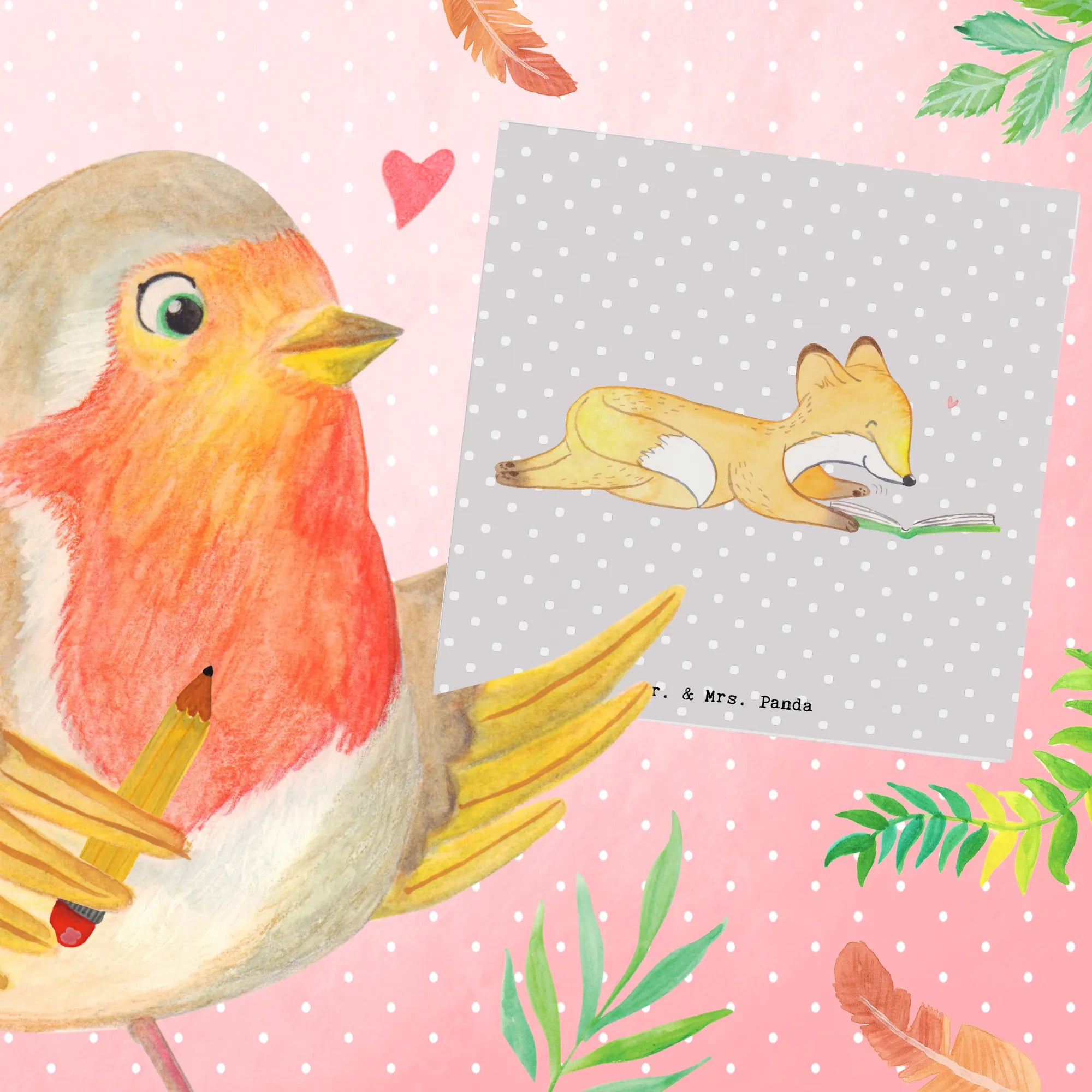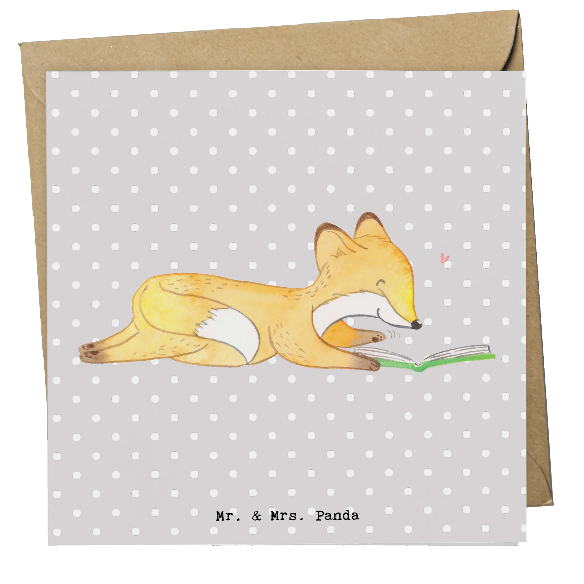 Deluxe Karte Fuchs Lesen - mit Spruch - Grau Pastell