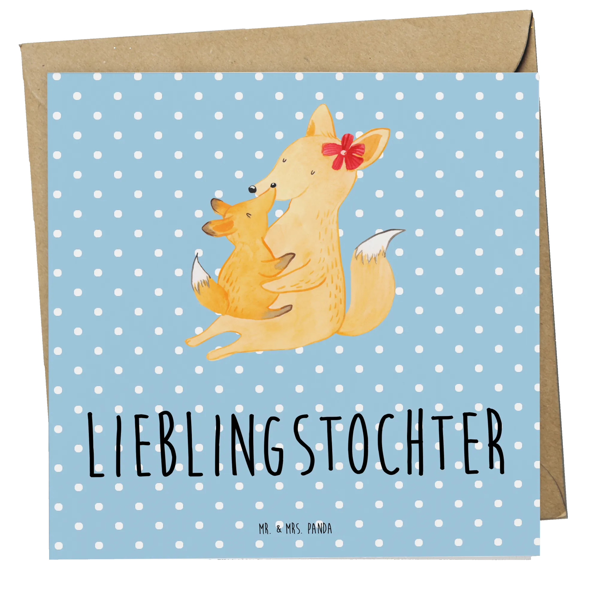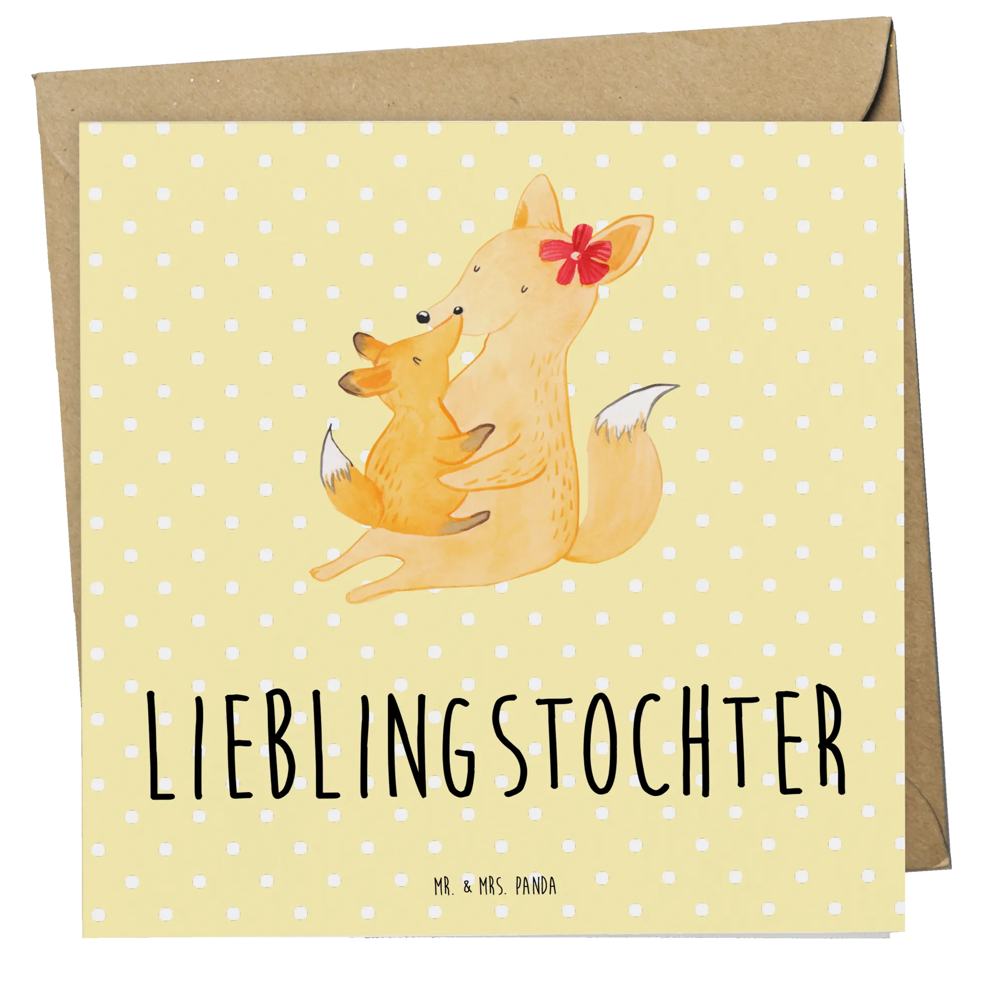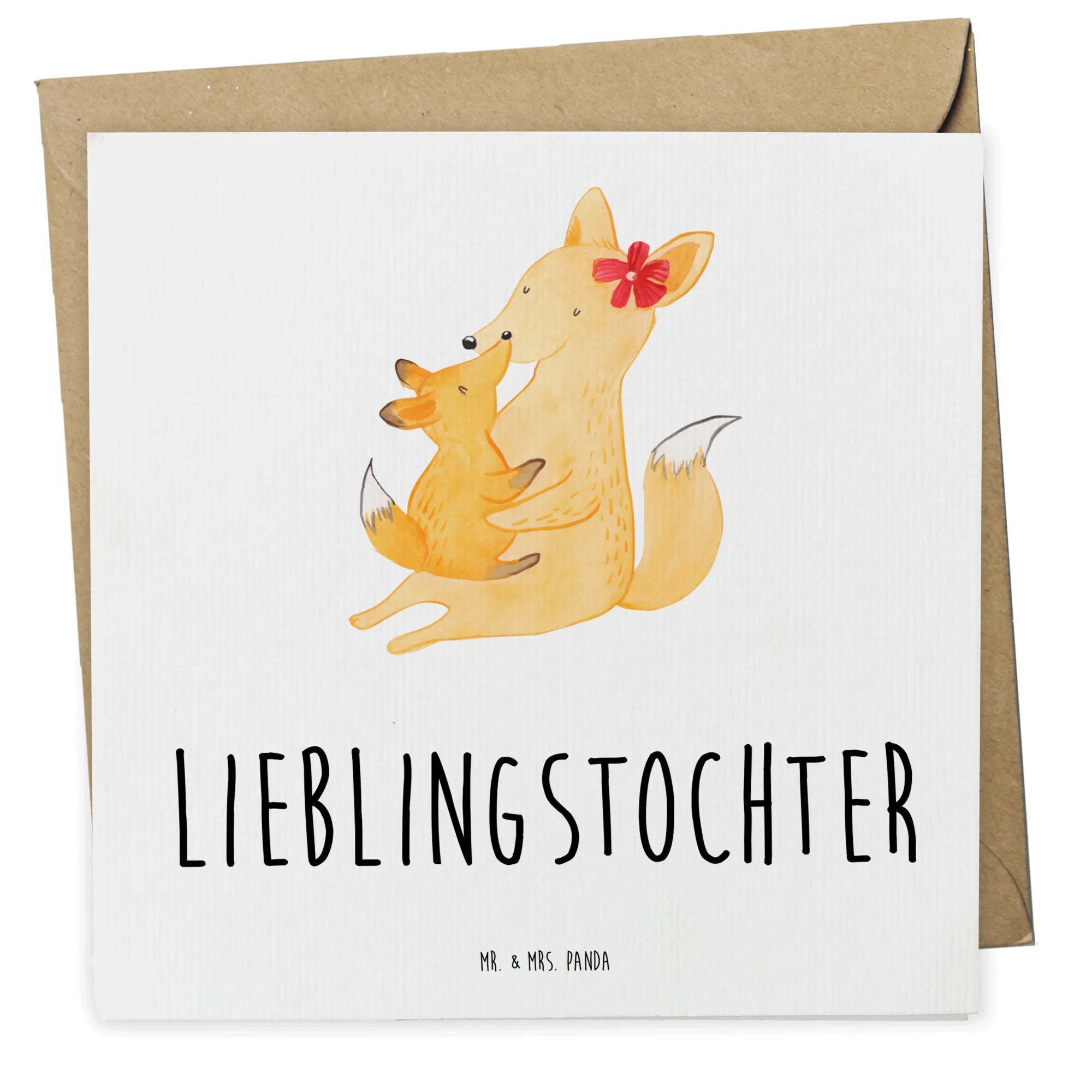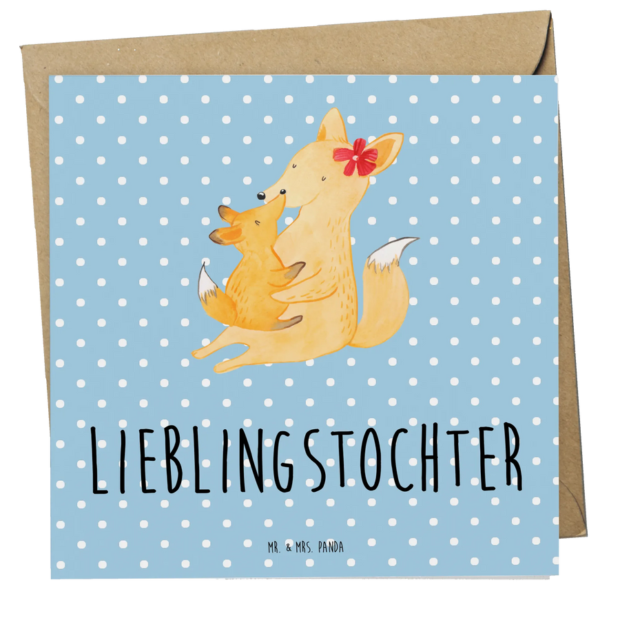 Der Fuchs mit ihrem kleinen Würmchen umarmt sich zärtlich – eine Darstellung voller Liebe und Geborgenheit. Die hohe Qualität der Karte aus 300g Karton und die glänzende Vorderseite unterstreichen den besonderen Anlass, für den du die Karte verschenkst. Tolle Geschenke sind oft personalisierte Karten, aber das Besondere an dieser Karte ist, dass sie mit ihrem herzlichen Motiv und dem liebevollen Spruch 'Lieblingstochter' einfach begeistert.