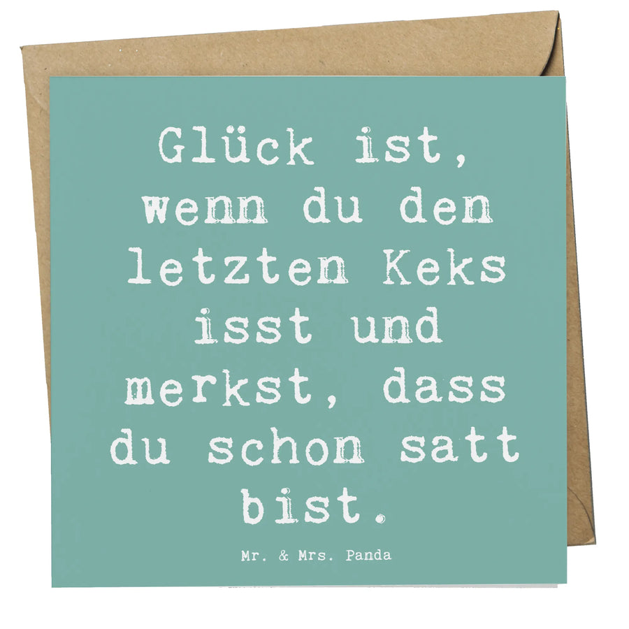 Mit ihrem liebevollen Design und dem inspirierenden Spruch "Glück ist, wenn du den letzten Keks isst und merkst, dass du schon satt bist", ist sie eine wunderbare Art, um deine herzlichsten Glückwünsche auszudrücken.