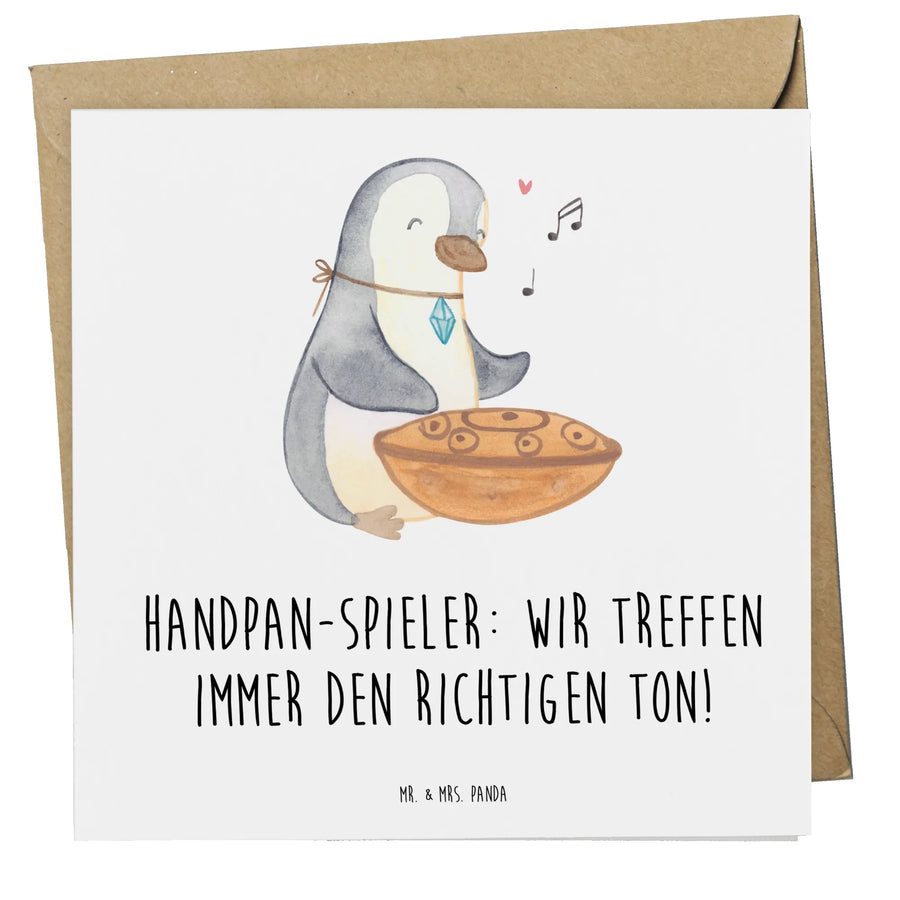 Auf der Vorderseite ziert die Karte der Slogan "Handpan-Spieler: Wir treffen immer den richtigen Ton!" und auf der matte Innenseite hast du ausreichend Platz für persönliche Nachrichten. Ein passender Umschlag ist natürlich inklusive, so dass du gleich loslegen kannst.