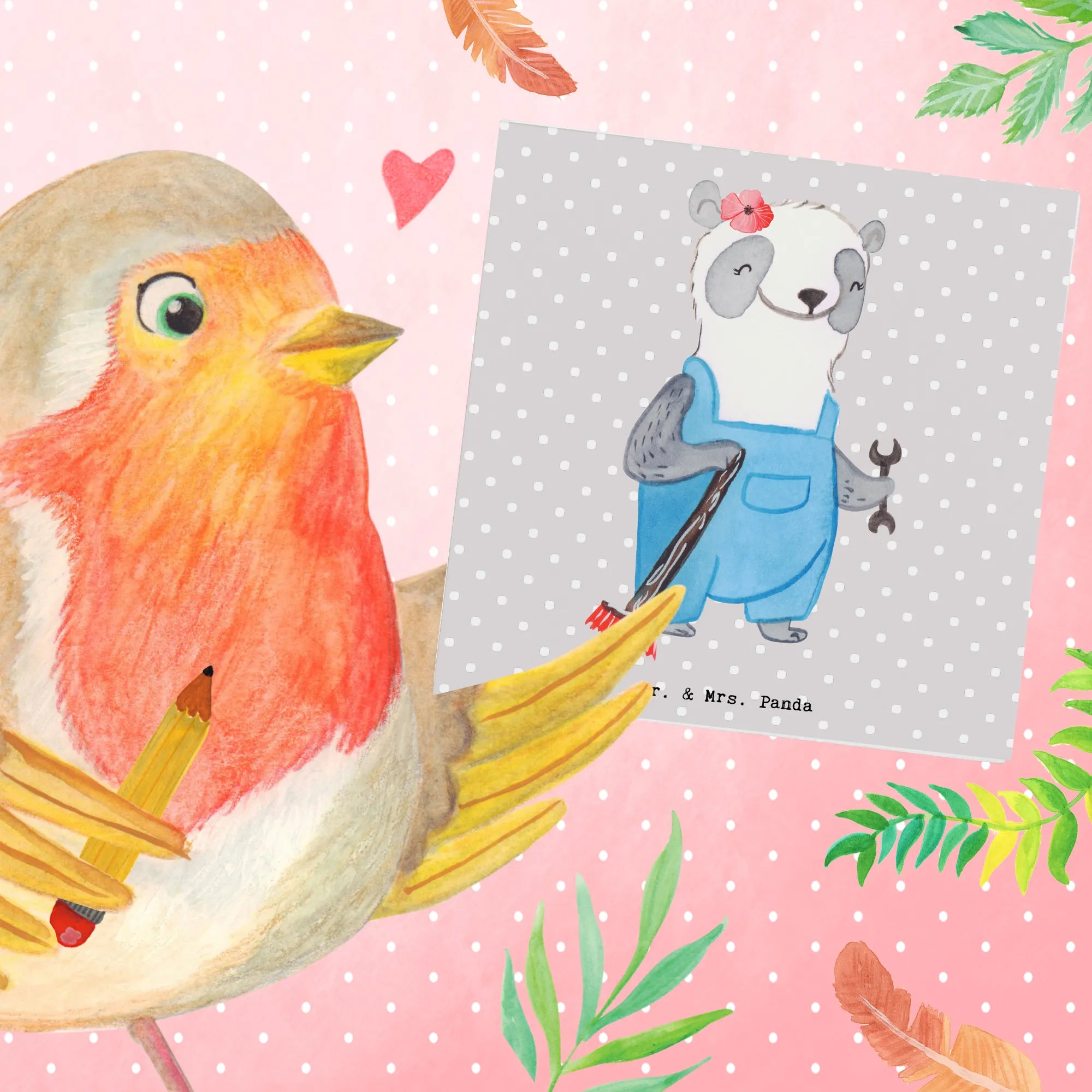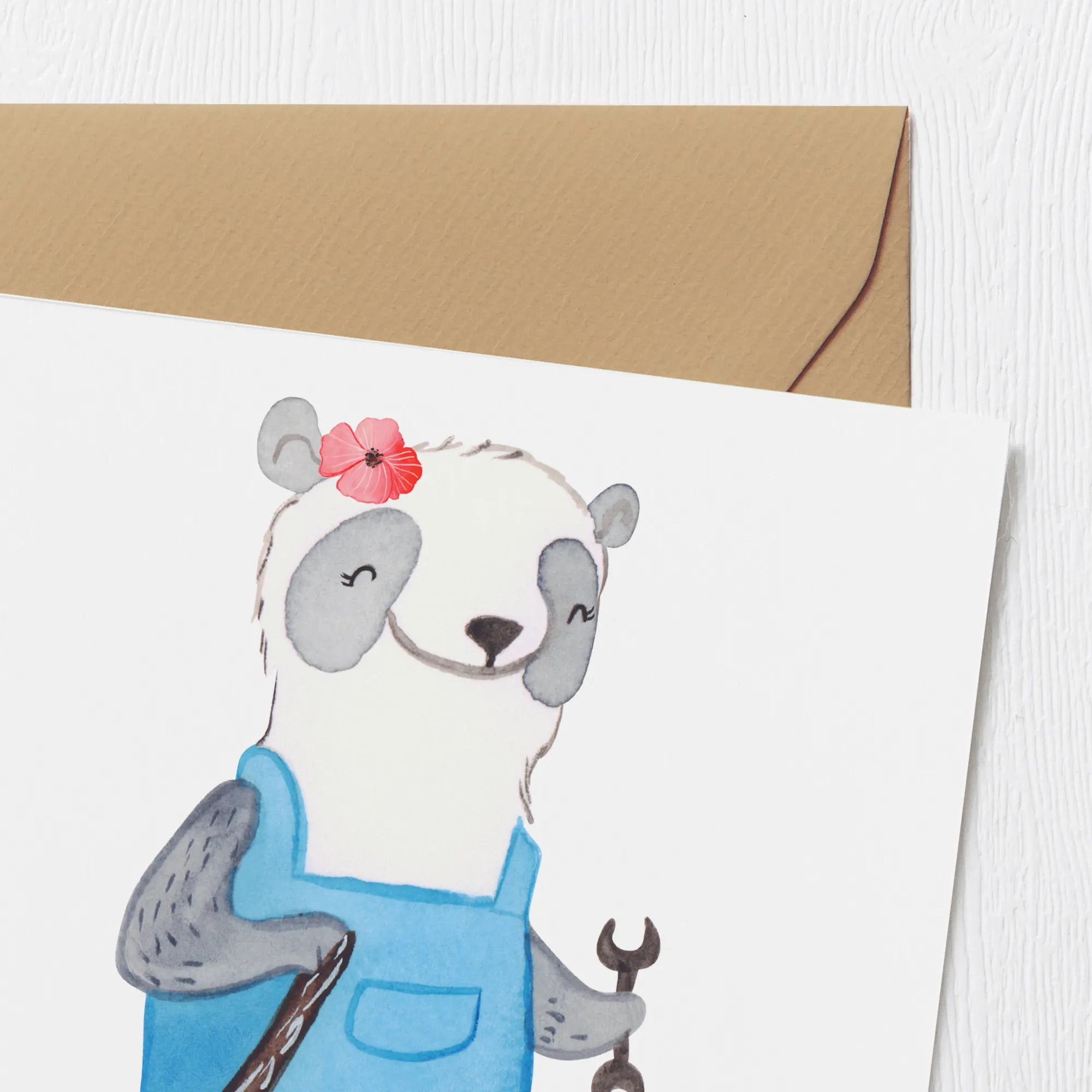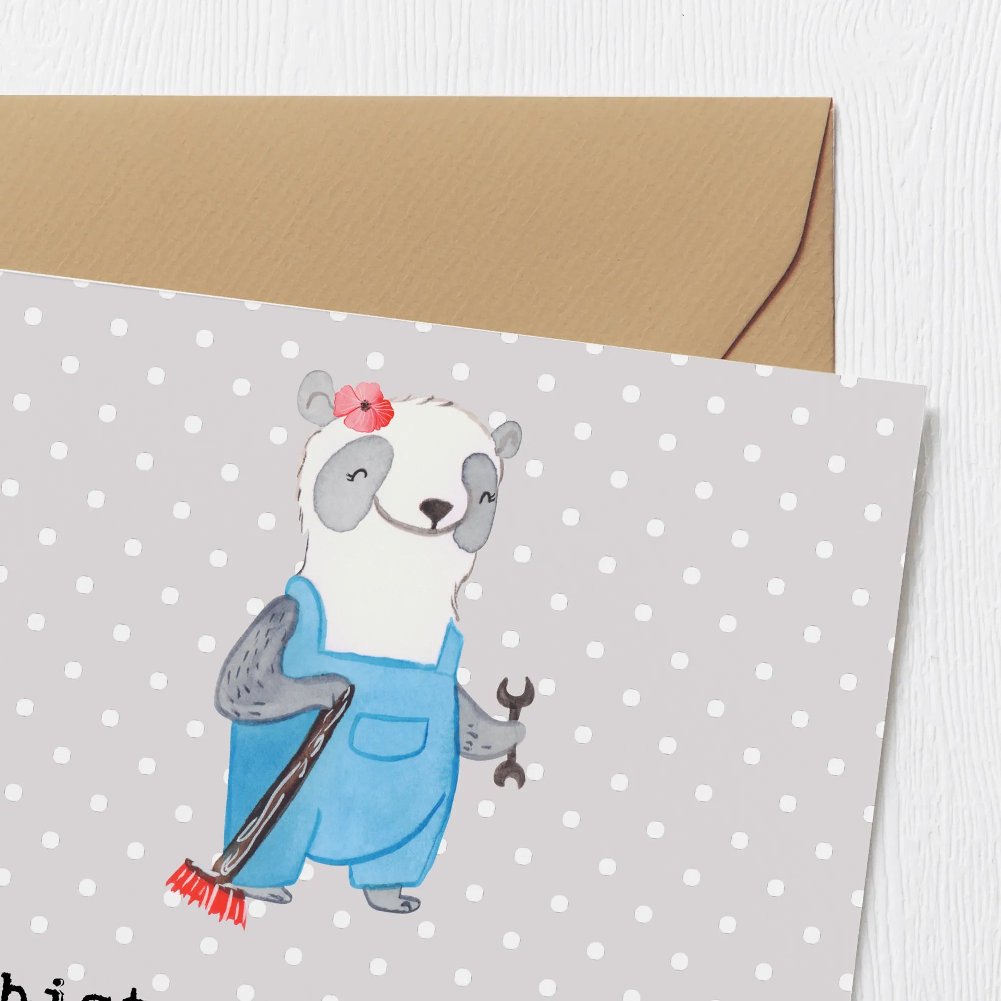 Verwöhne deine Hausmeisterin oder Facility Managerin mit dieser einzigartigen, charmanten Grußkarte, die garantiert ein Lächeln auf die Lippen zaubert. Mache jeden Anlass besonders, denn jeder engagierte Mitarbeiter hat eine besondere Würdigung verdient! Lege mit der Vielfalt an Grüßen und Glückwünschen der Mr. & Mrs. Panda Kollektion eine ganz persönliche Note in dein Geschenk.