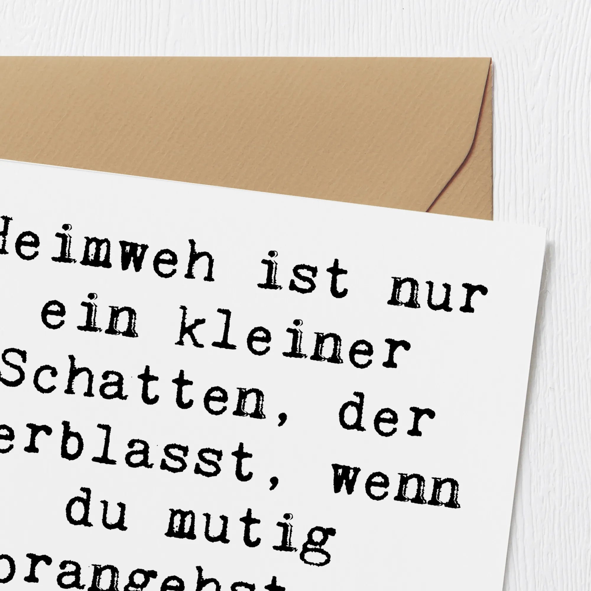 Die Deluxe Karte "Heimweh überwinden" aus der Mutmacher-Kollektion von Mr. & Mrs. Panda ist das perfekte Geschenk für all jene liebenswerten Menschen in deinem Leben, die sich nach neuen Abenteuern sehnen, aber manchmal den Mut verlieren. Mit einem wunderschön gestalteten Motiv und dem inspirierenden Spruch: "Heimweh ist nur ein kleiner Schatten, der verblasst, wenn du mutig vorangehst und neue Abenteuer erlebst!", ist diese Karte eine tolle Möglichkeit, jemandem zu zeigen, dass du an ihn glaubst.