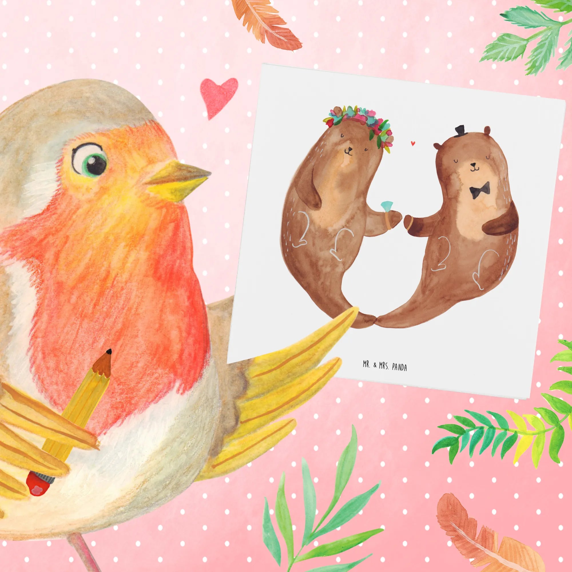 Verliebte Otter von Mr. & Mrs. Panda - Symbolische Hochzeitsgeschenkidee, Händchenhaltendes Paar