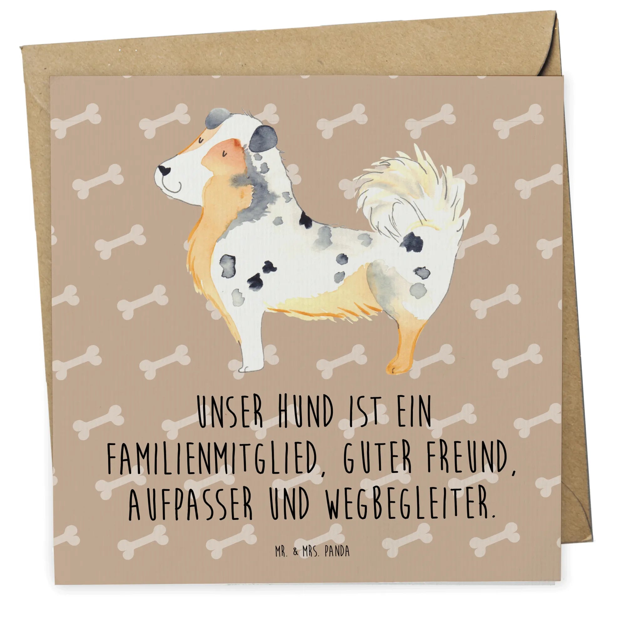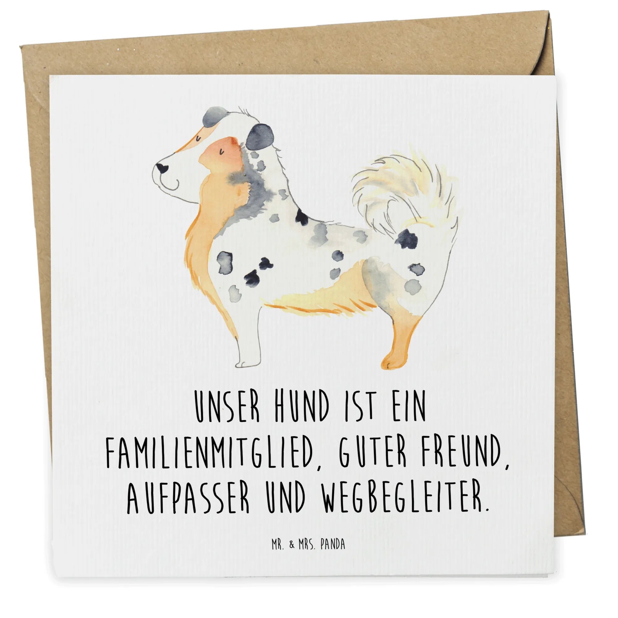 Die Deluxe Karte mit dem wunderschönen Motiv eines Australian Shepherds aus der Hunde Kollektion von Mr. & Mrs. Panda ist das perfekte Geschenk für Tierliebhaber und Hundebesitzer. Egal ob zum Geburtstag, zur Hochzeit oder einfach so als liebevolle Überraschung, diese Grußkarte wird Herzen höher schlagen lassen!