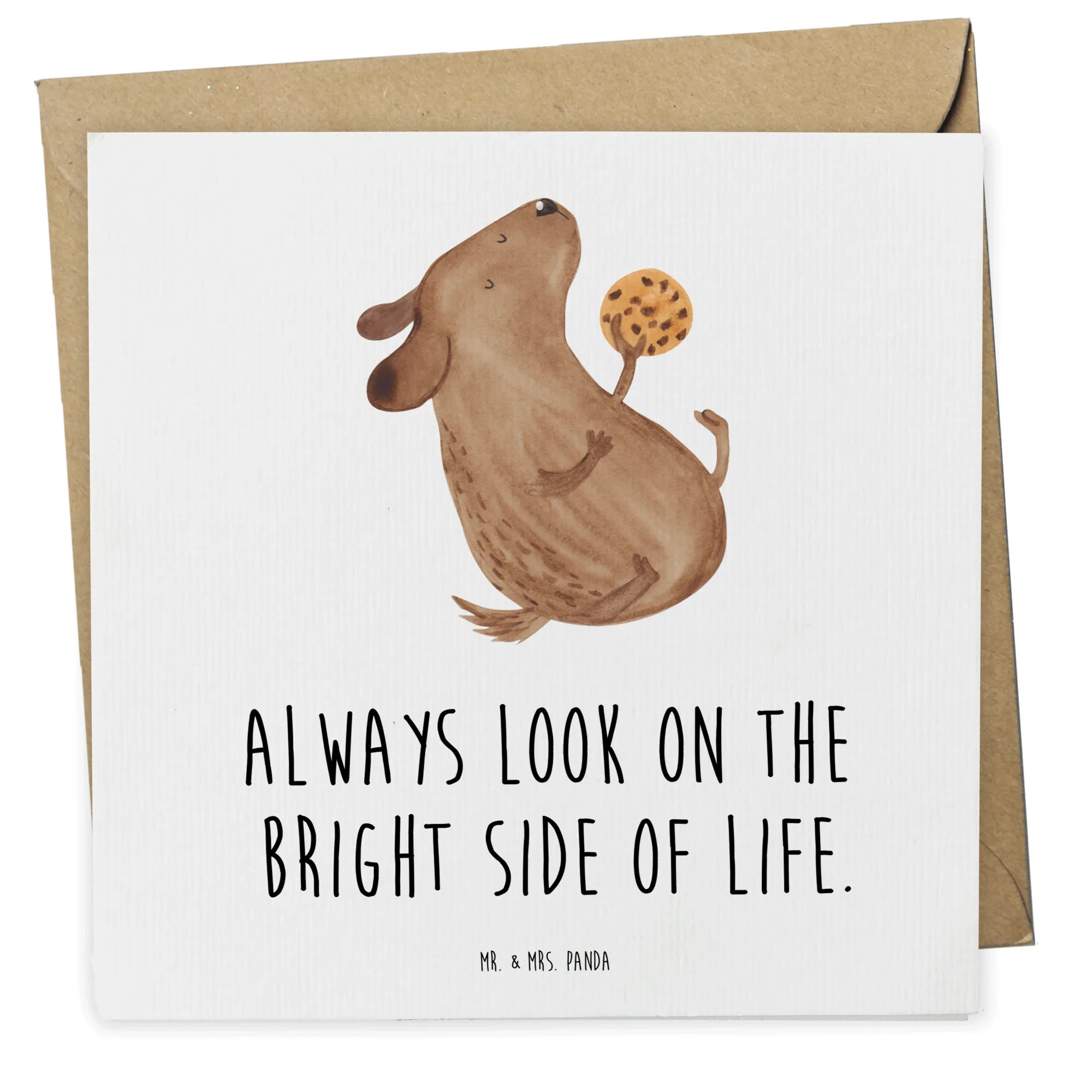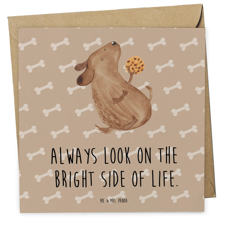 Die Deluxe Karte mit dem süßen Hund Keks Motiv aus der Hunde Kollektion von Mr. & Mrs. Panda ist das perfekte Geschenk für alle Hundeliebhaber. Ob zu Geburtstagen, Hochzeiten oder einfach, um jemandem eine Freude zu machen – mit dieser Karte liegst du immer richtig! Auf der Vorderseite prangt ein niedlicher Hund, der begeistert einen Keks isst, begleitet von dem inspirierenden Spruch "Always look on the bright side of life."