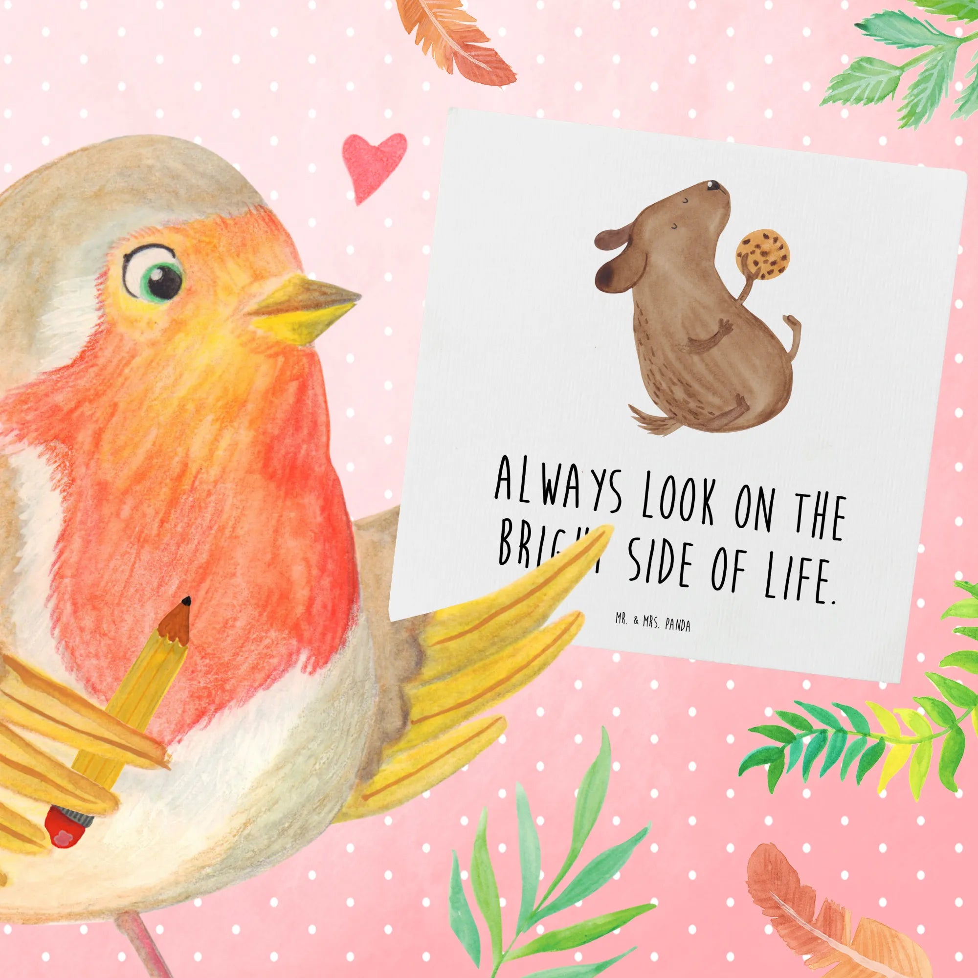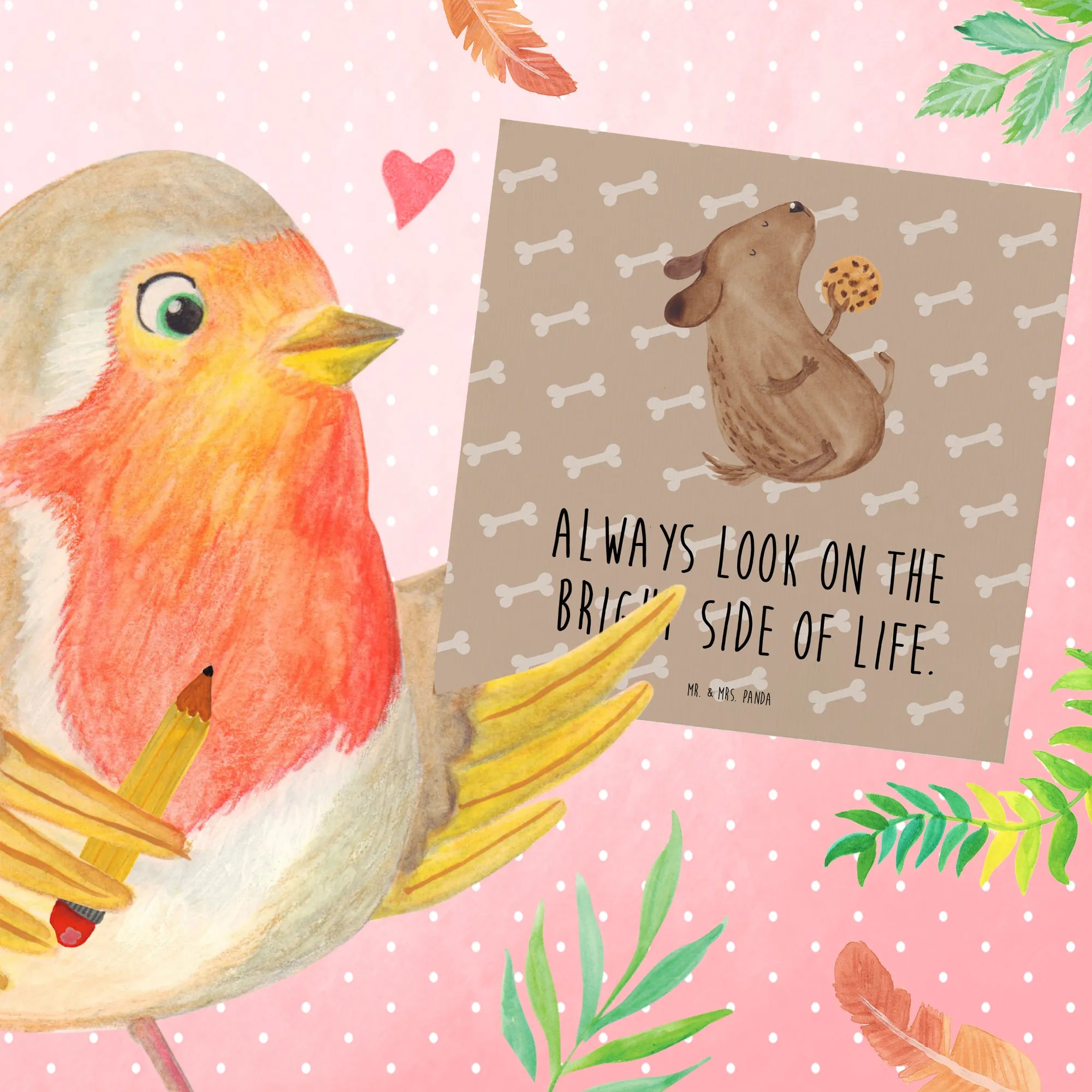 Unsere quadratische Deluxe Karte aus der Hunde Kollektion von Mr. & Mrs. Panda zeigt ein zuckersüßes Motiv: Ein fröhlicher Hund, der begeistert einen Keks isst. Dazu trägt die Karte den lebensfrohen Spruch „Always look on the bright side of life.“ – perfekt, um Freude zu verschenken und Mut zu machen. 🐶🍪