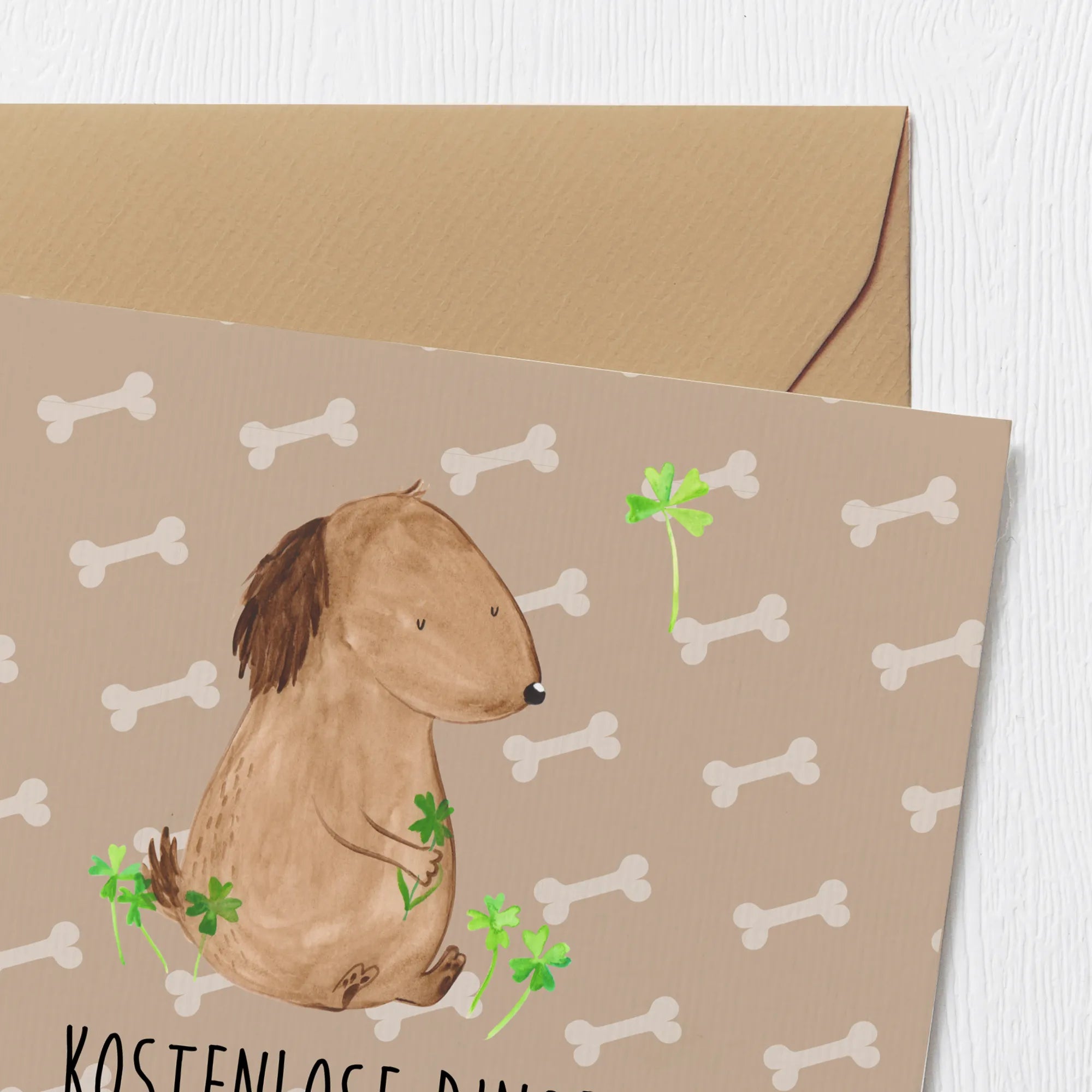 Diese Karte nimmt die Botschaft: "Es gibt Dinge, die man für Geld nicht kaufen kann. Und machen diese Dinge das Leben nicht erst richtig lebenswert?!" mit Leichtigkeit auf und sorgt damit für ein Lächeln auf den Gesichtern der Beschenkten. Egal, ob Du sie für einen Hundebesitzer brauchst oder einfach nur ein kleines Geschenk für einen lieben Menschen suchst, diese Karte ist ein wahrer Glücksbringer.