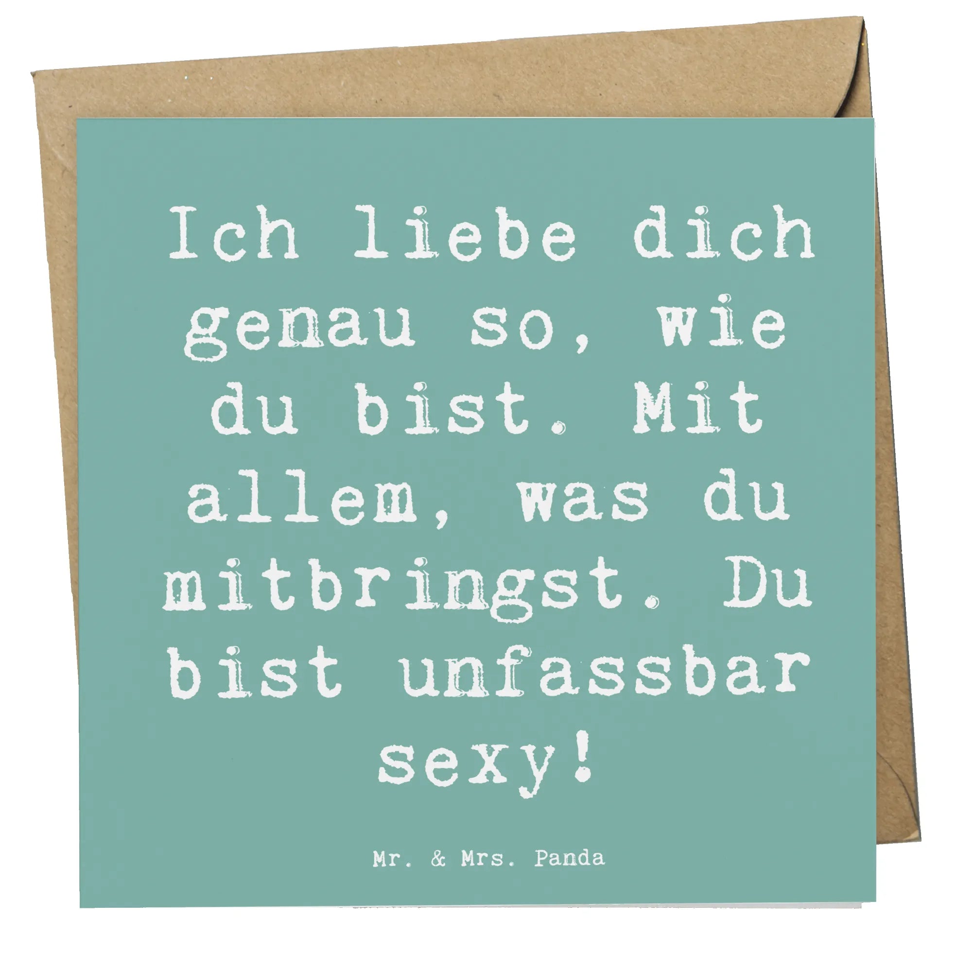 Der Spruch "Ich liebe dich genau so, wie du bist. Mit allem, was du mitbringst. Du bist unfassbar sexy!" spricht das Herz an und lässt die beschenkte Person spüren, wie einzigartig sie ist. Hergestellt aus hochwertigem 300 Gramm Karton, fühlt sich die Karte nicht nur hervorragend an, sie sieht auch in Kombination mit dem edlen Umschlag einfach klasse aus.