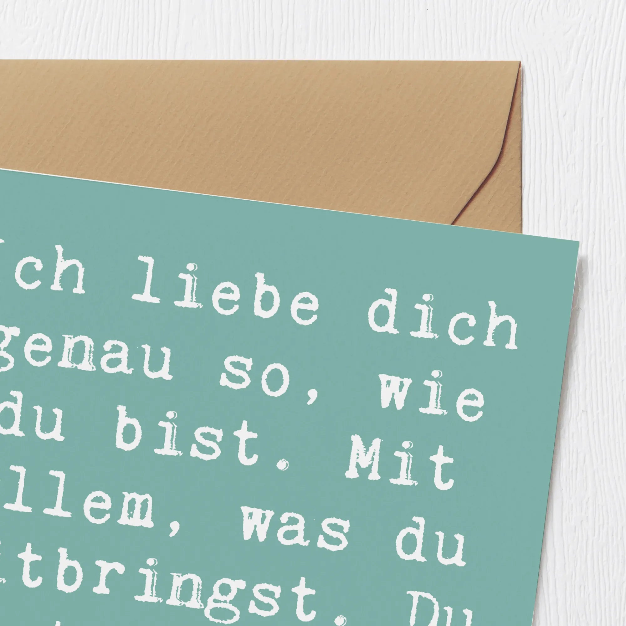 Mit diesem tollen Produkt von Mr. & Mrs. Panda bringst du Freude und liebevolle Stimmung in das Leben eines ganz besonderen Menschen. Um die Karte noch schöner zu präsentieren, ist sie in einem stilvollen und eleganten Umschlag verpackt. So wird das Verschenken zu einem ganz besonderen Erlebnis. Überrasche Deinen Partner, eine liebe Freundin oder vielleicht sogar Deine Eltern mit dieser perfekten Grußkarte! Die Kombination aus einem tiefgründigen Spruch und dem ansprechenden Design ist einfach unwiderstehlich und wird sowohl die Augen als auch das Herz erfreuen.