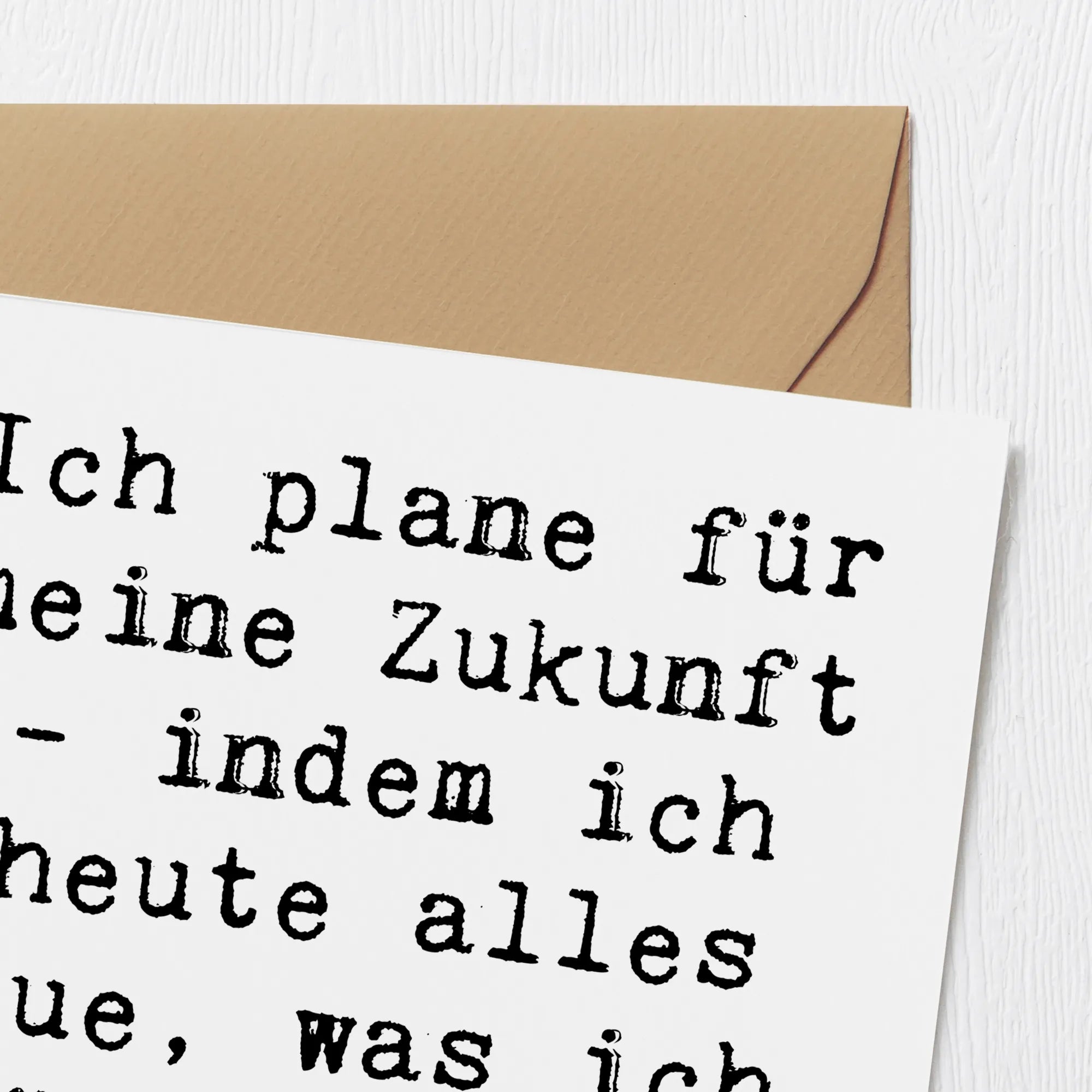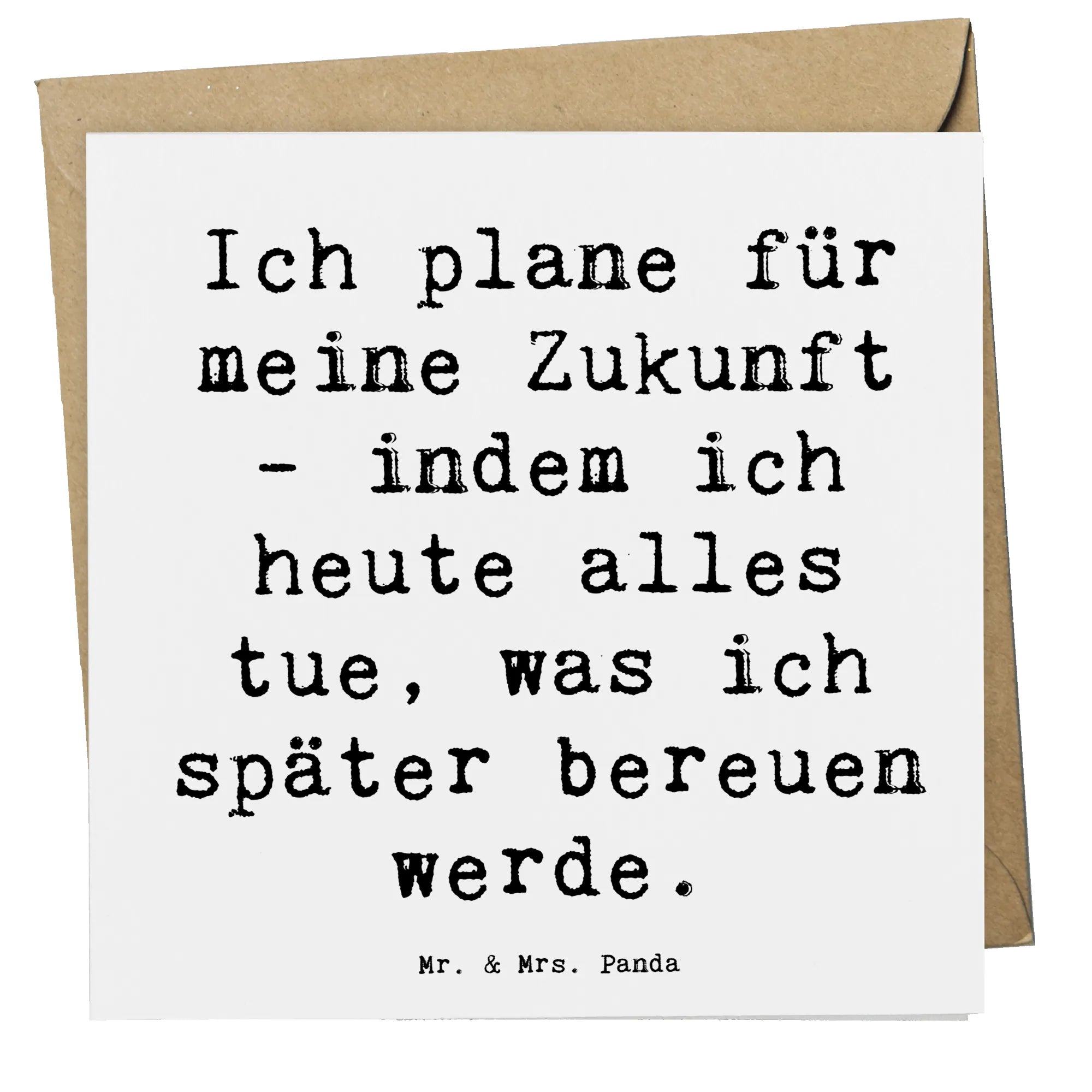 Der herzliche Spruch "Ich plane für meine Zukunft - indem ich heute alles tue, was ich später bereuen werde" wird sicher inspirieren und motivieren. Sie ist perfekt, um individuelle Grüße oder Glückwünsche zu überbringen.